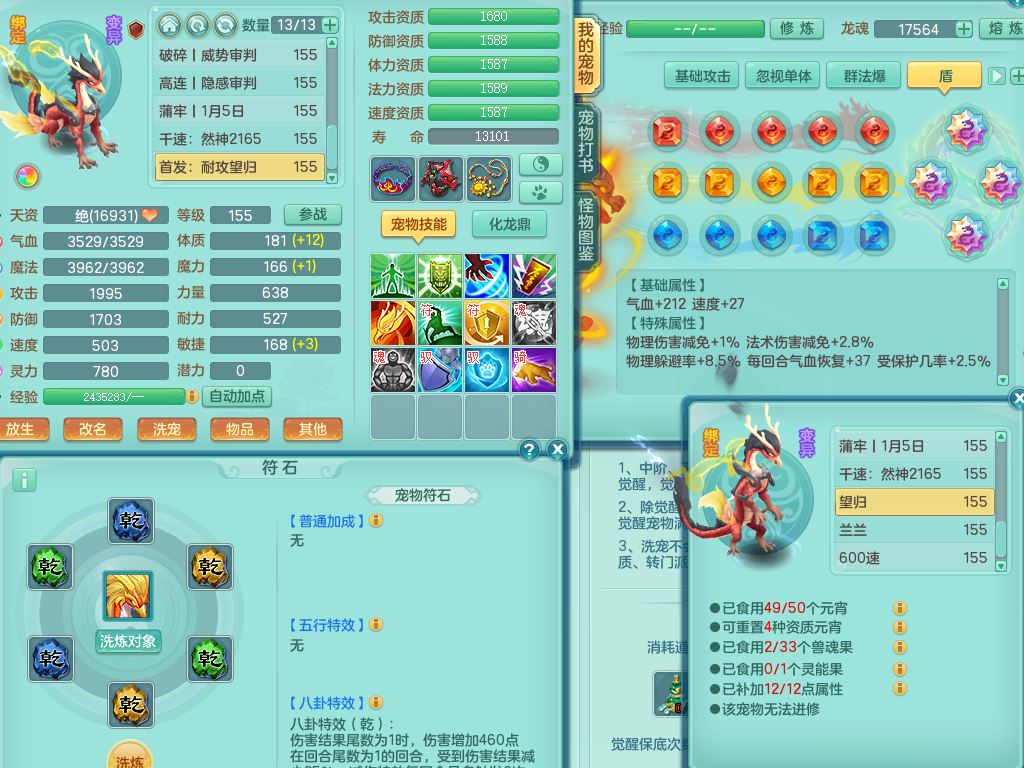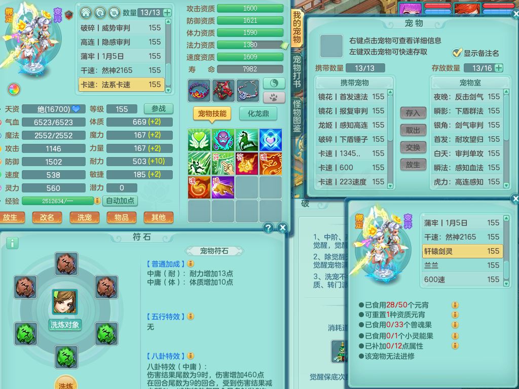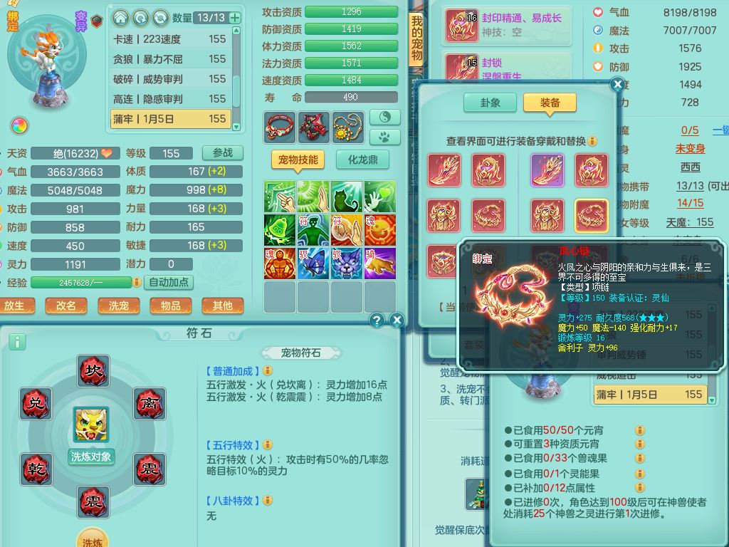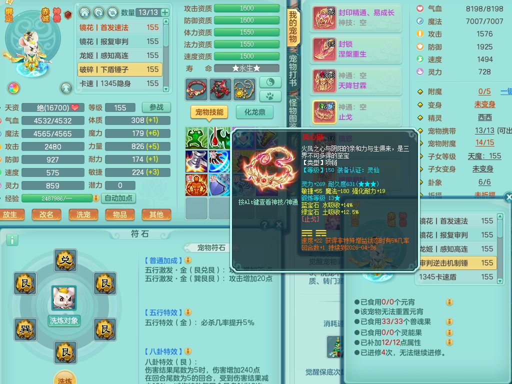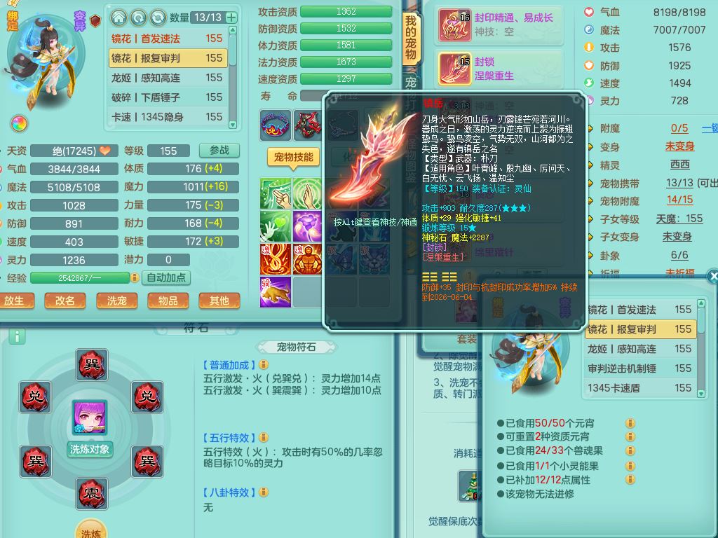 tx9814天下无双159男方寸精灵舞,满级共鸣,1内丹神,3镜花灵(1胚子),综合8只满果子1觉醒5个4字,10红星辰之拥,单加Y封印头,封锁慈航武器,单加愤怒心神腰带,仓库破甲守备头,鼎5.5+70,永久头饰精灵皮肤,36内丹碎片,飞行烛龙坐骑