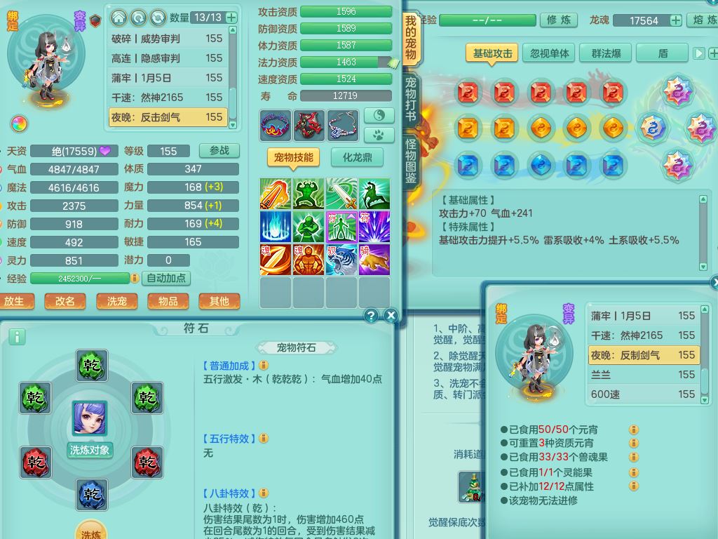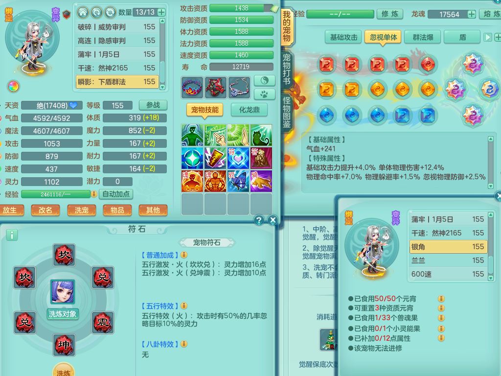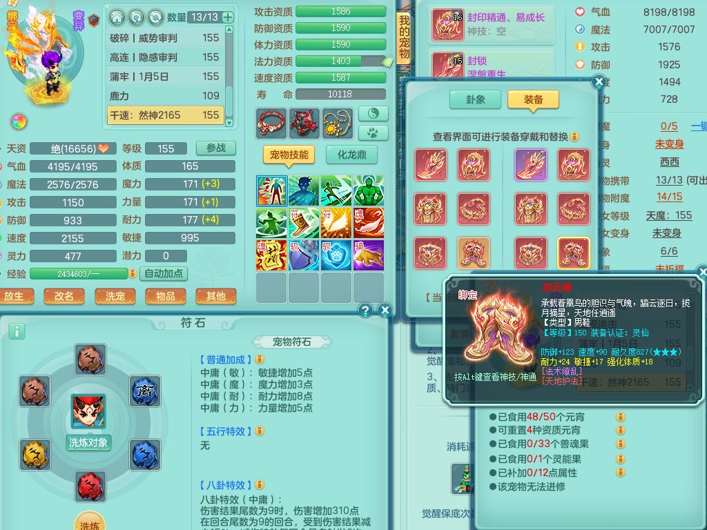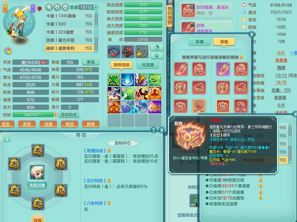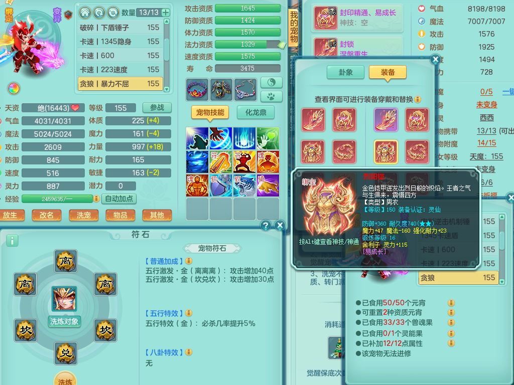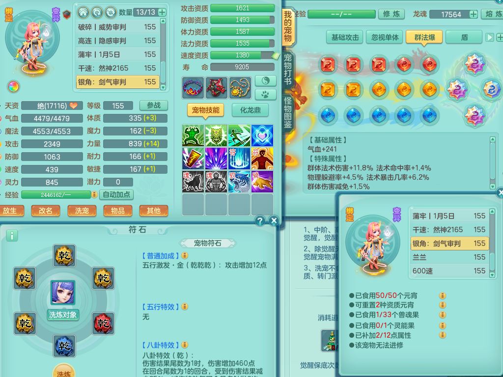 tx9814天下无双159男方寸精灵舞,满级共鸣,1内丹神,3镜花灵(1胚子),综合8只满果子1觉醒5个4字,10红星辰之拥,单加Y封印头,封锁慈航武器,单加愤怒心神腰带,仓库破甲守备头,鼎5.5+70,永久头饰精灵皮肤,36内丹碎片,飞行烛龙坐骑