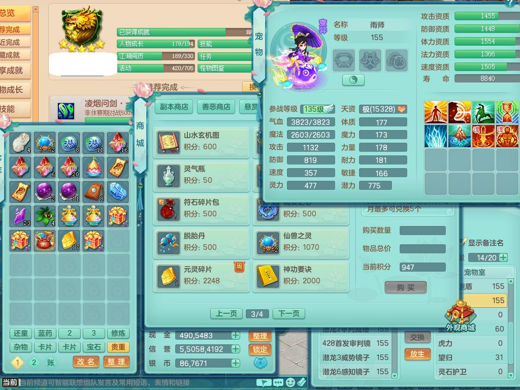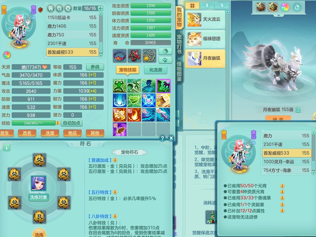 xa9827笑傲江湖159男天策精灵舞,2龙(换,无内)2内(1龙马)3特殊(风卷/逆龙/夺命/兽决流星/双星)4镜花灵,20只满果子9觉醒7个纯6字,全身单加,904击退四海武器,崩山衣服,法系单加Y双红衣服,五雷腰带,法缭鞋,鼎5.0+70+280,2套符石,22天月卡,房屋160,永久头饰精灵皮肤,23内丹碎片,宠排在榜,3坐骑(1只双人)