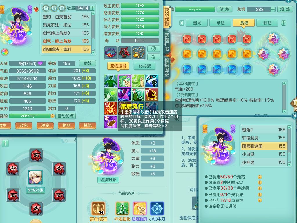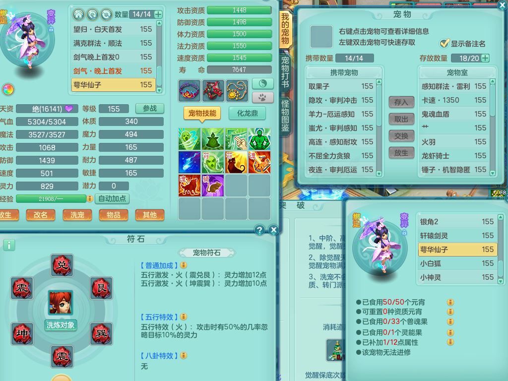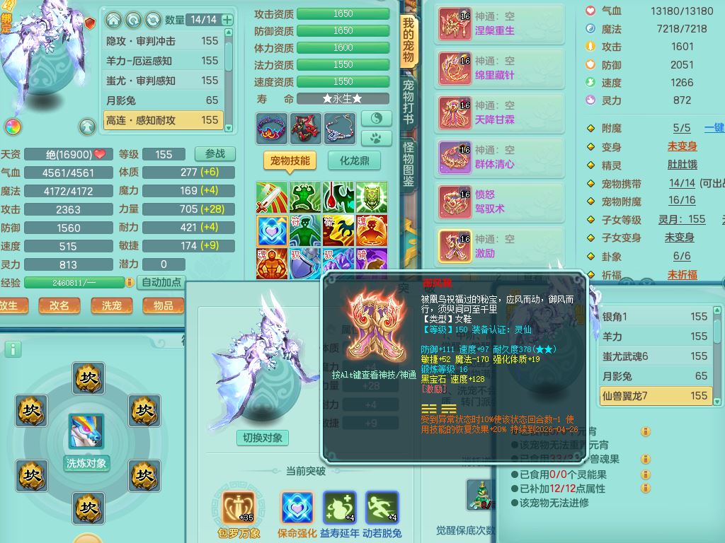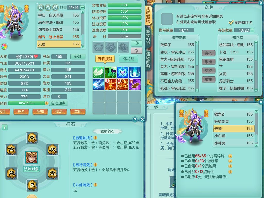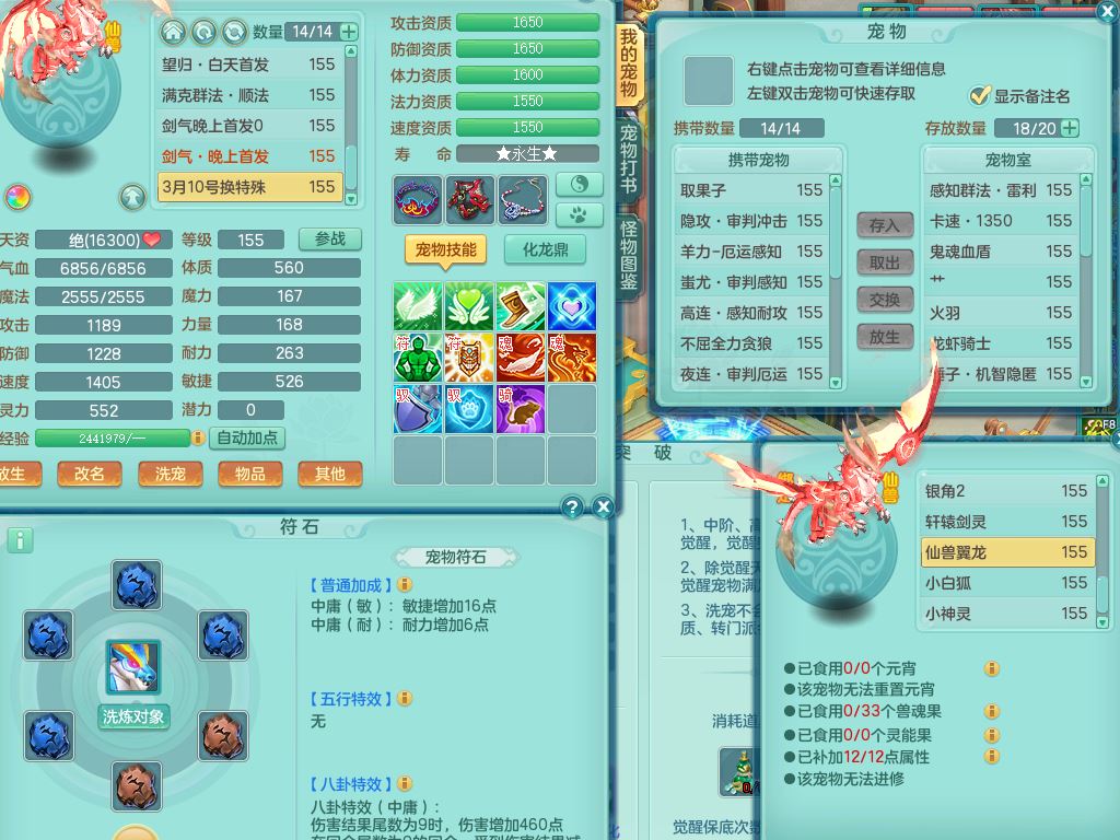 jt9820九天揽月159女佛门【潜龙号】精灵悟,2龙(换,无内)1内4特殊(雷厉/兽决青霜/飞花/上善)14只满果子12觉醒12个纯6字,愤怒6特,鼎5.5+70+280,永久外观,宠排在榜,飞行双人坐骑,带150奶粉盘丝1觉醒