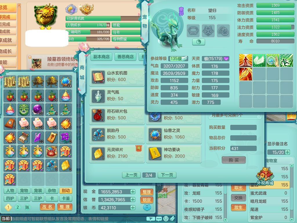 tx9825天下无双159女佛门【潜龙号】精灵舞,1内丹神4特殊(青霜/上善/兽决怒破/藕断)4镜花灵1龙姬,11只满果子7觉醒7个纯6字,8红愤怒5特,Y慈航项链,幸运绝幻鞋,鼎5.5+70+280,永久外观精灵皮肤,14仙兽灵,22内丹碎片,飞行双人坐骑