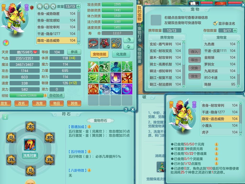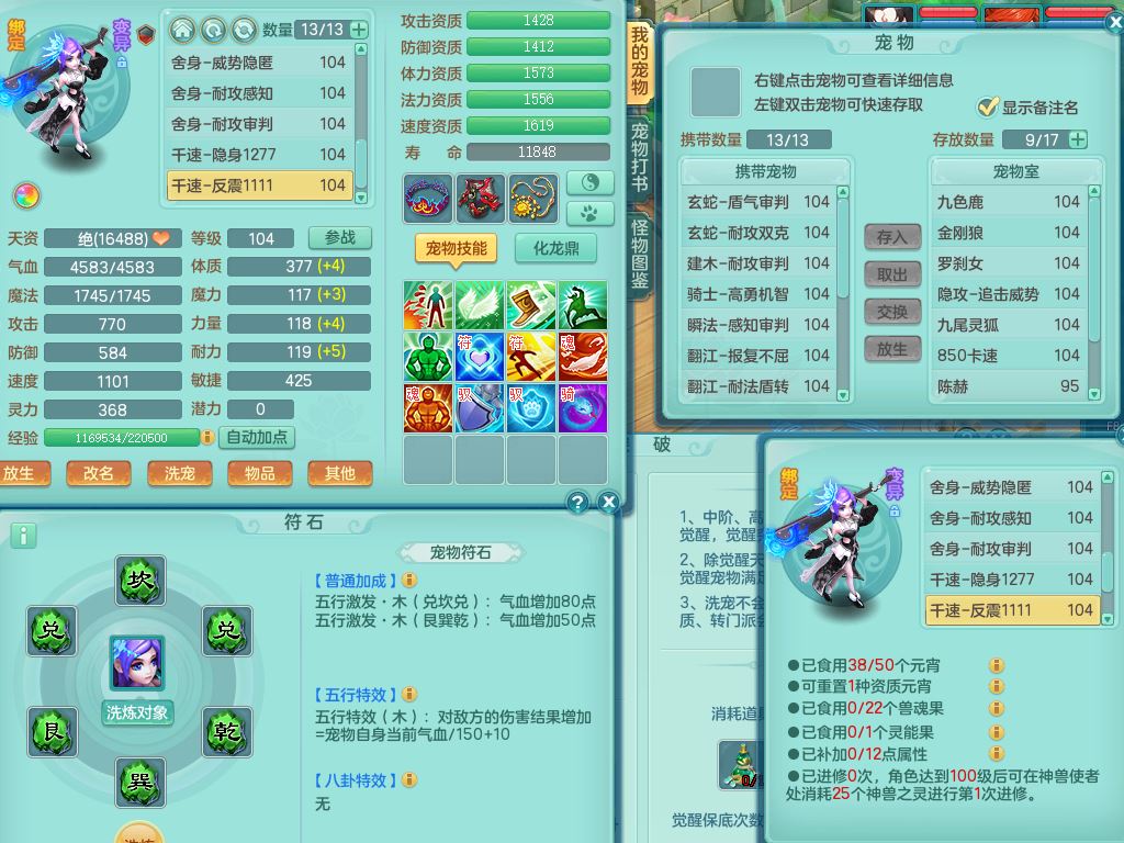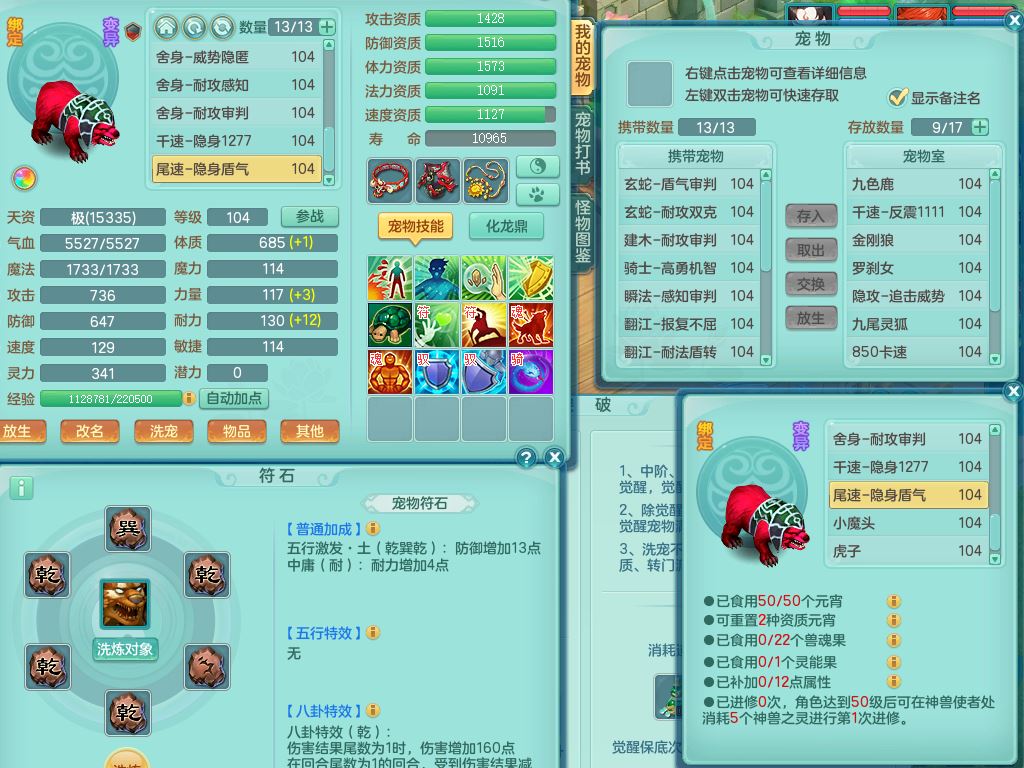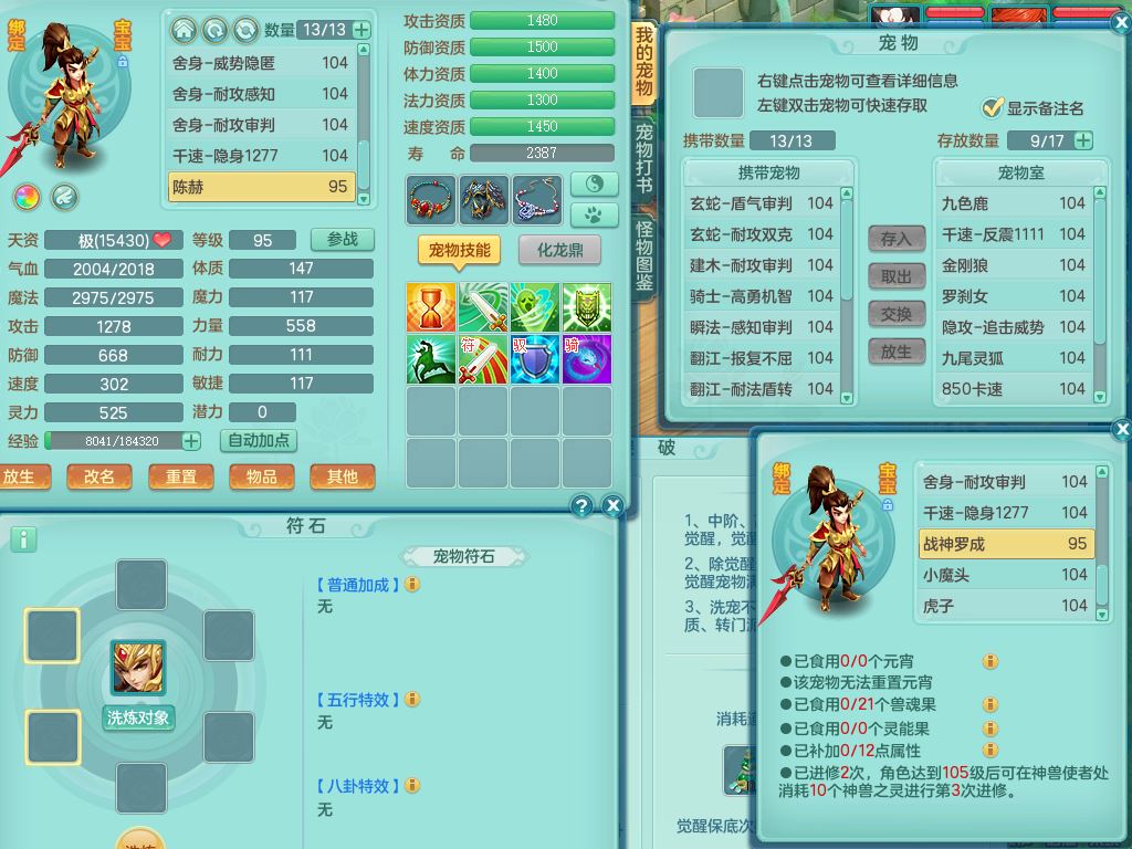 tx9839天下无双99男方寸双系精灵,2神兽青蛇(1只无内)4只满果子2觉醒,6个4字3个5字2个6字,11红愤怒6特,封印明镜头,Y止戈衣服,神佑笑里项链,愤怒双红腰带,Y四海鞋,187天月卡,11仙兽灵,10内丹碎片