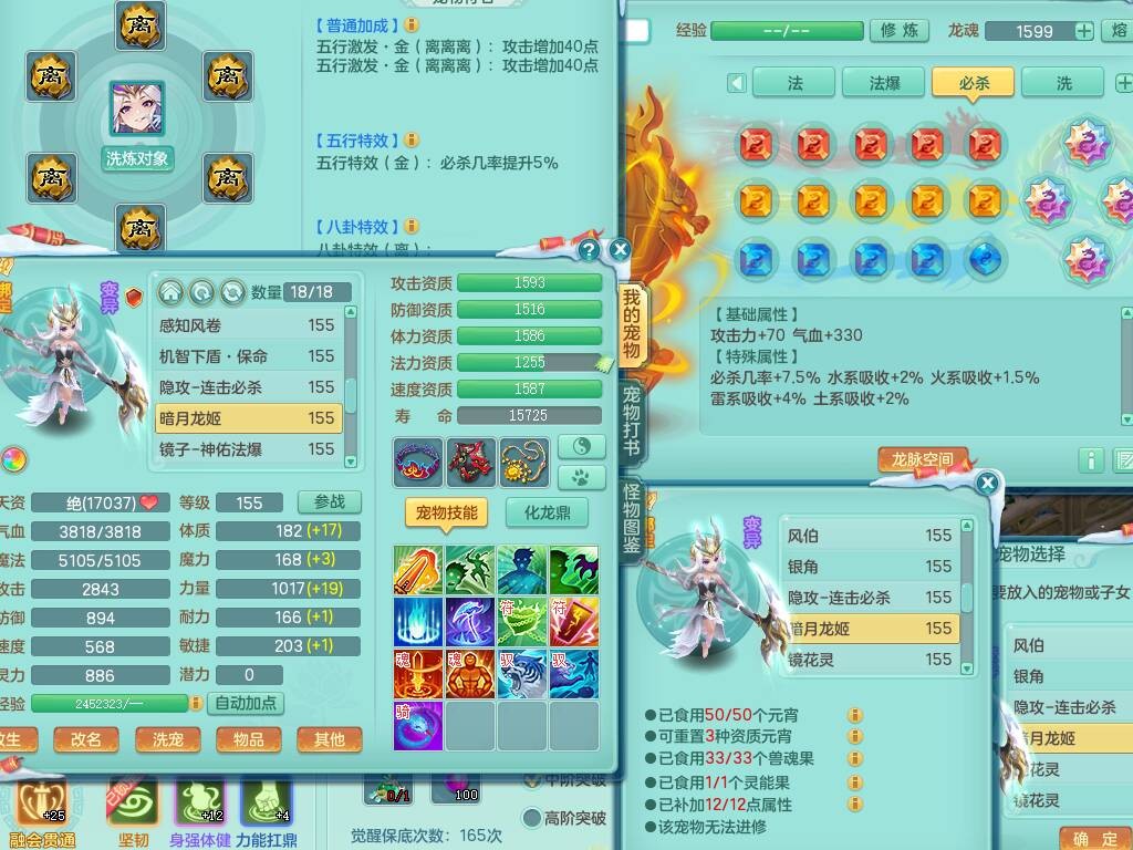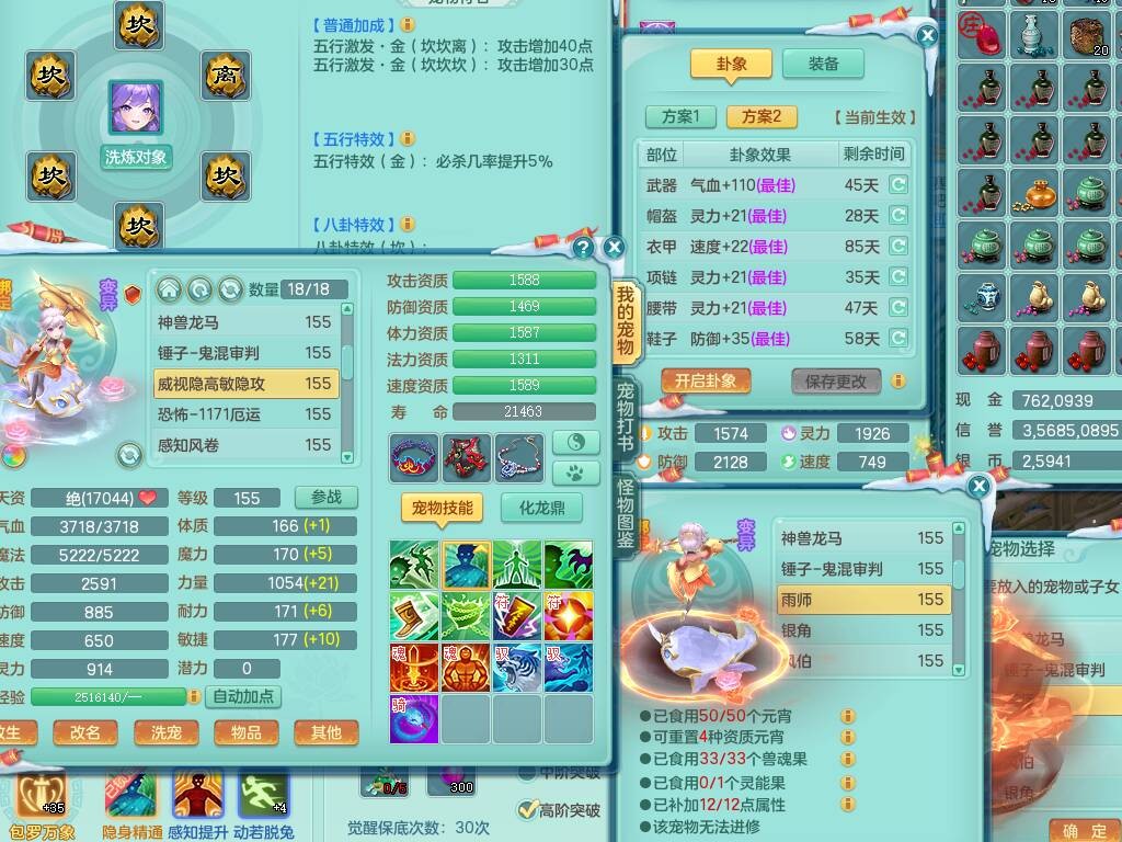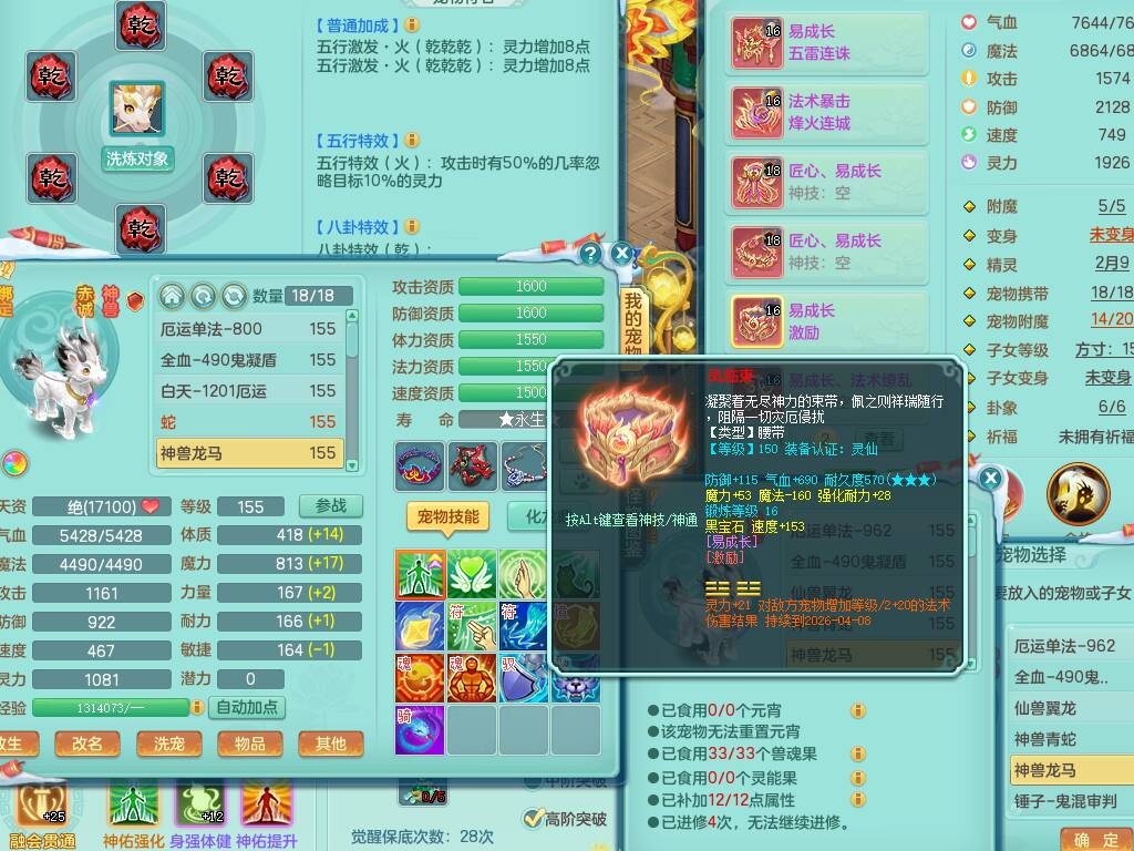 lt9856浪淘沙159女法方寸精灵舞,3龙3内胆神,3破镜,【22只觉醒,已潜龙】,8位靓号,10宠皮+1幻灵果,4只六技能龙姬,7只六技能镜花灵,法爆烽火单加51武器,18段匠心易成长单加54衣服,18段263匠心易成长单加项链,法缭五雷鞋子,法系星辰之拥,有破甲慈航单加56鞋子,迅捷疾速单加53鞋子,法缭单加53鞋子,三红愤怒易成长群体守备腰带,迅捷易成长鞋子,回春、封锁武器都有,5.5基础鼎+70攻+280血,15个格子,22个纯六字,1个五字,26只满果子,宠排在榜,永久称谓,7个坐骑,暴龙泰坦+西瓜冰武器皮肤+神驹心想事成+火焰之力武器皮肤