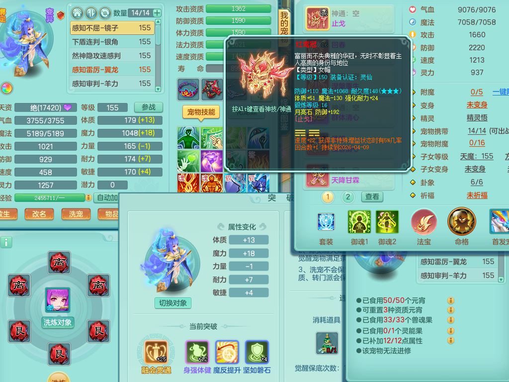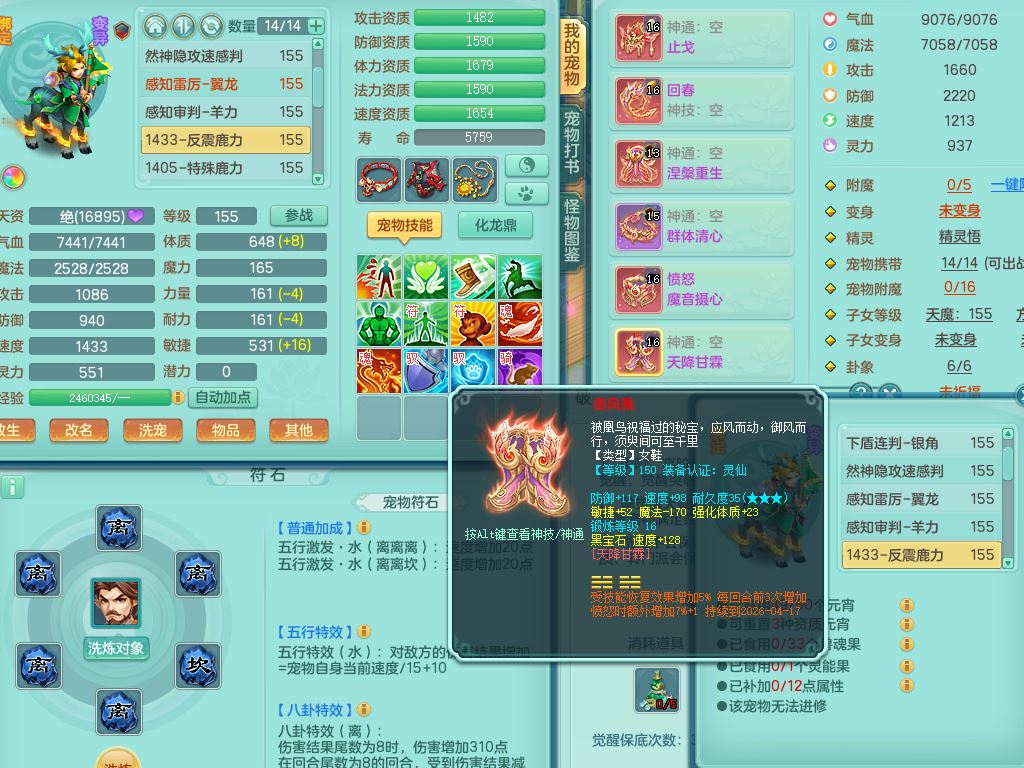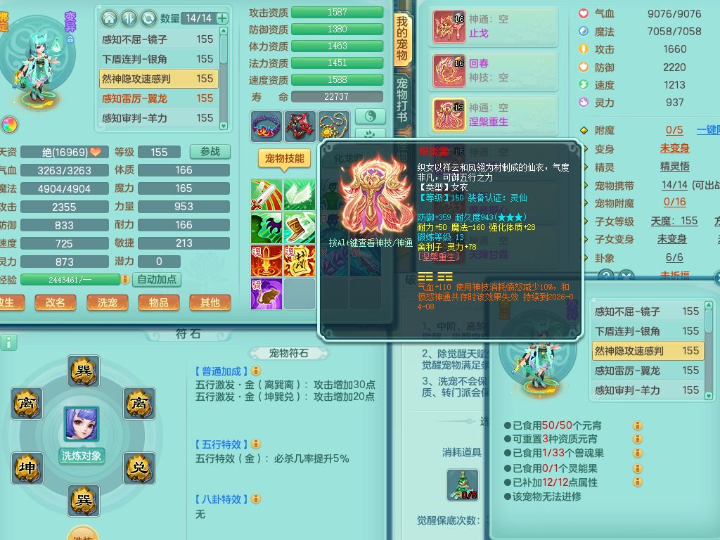 jt9853九天揽月159女佛门精灵悟,满级共鸣,1龙(换)2神兽青蛇(1只无内)2特殊(兽决影袭/守护)综合10只满果子9觉醒3个纯6字,回春武器,愤怒绝幻腰带,鼎5.0,永久头饰精灵皮肤,521W神武币,宠排在榜,飞行双人坐骑
