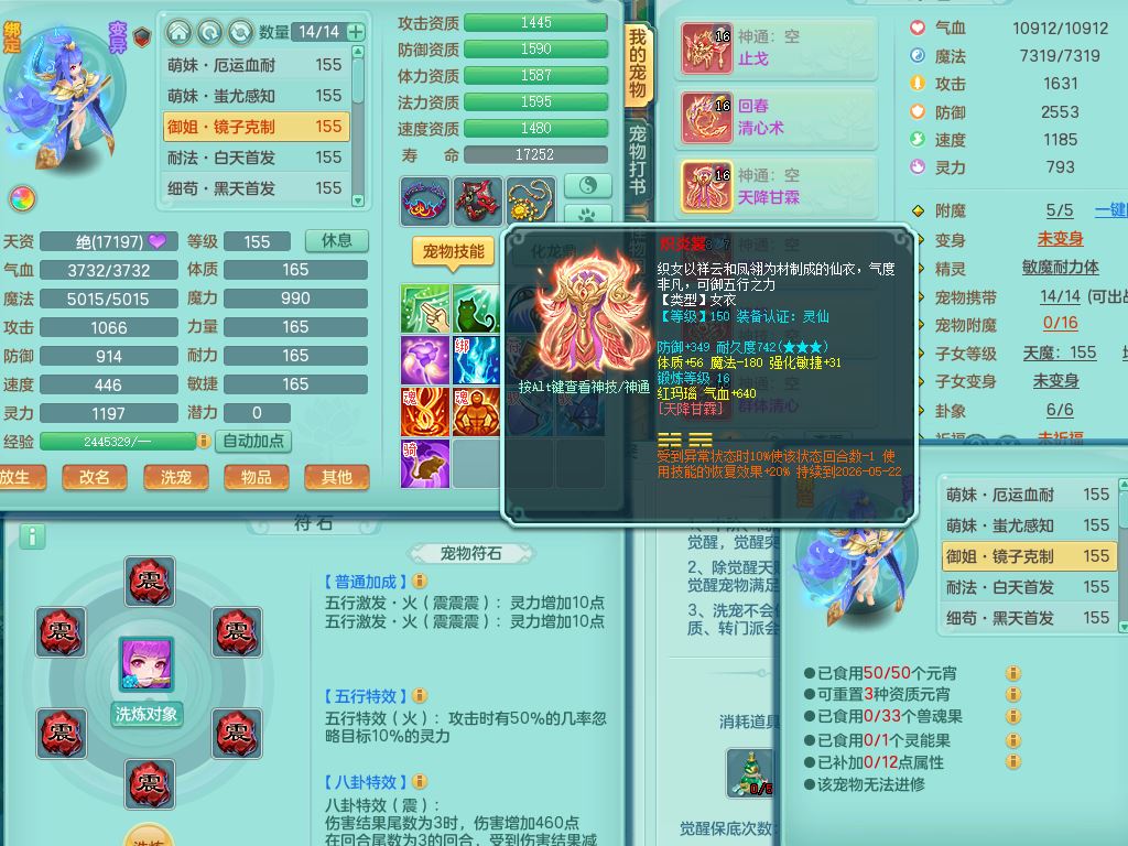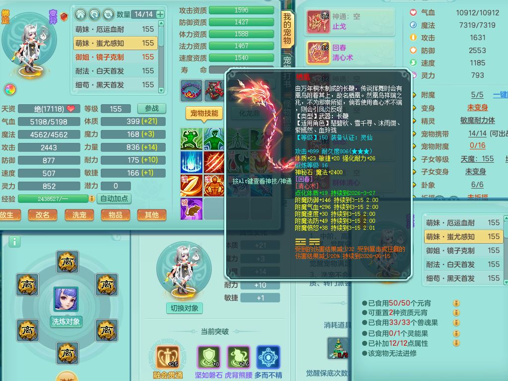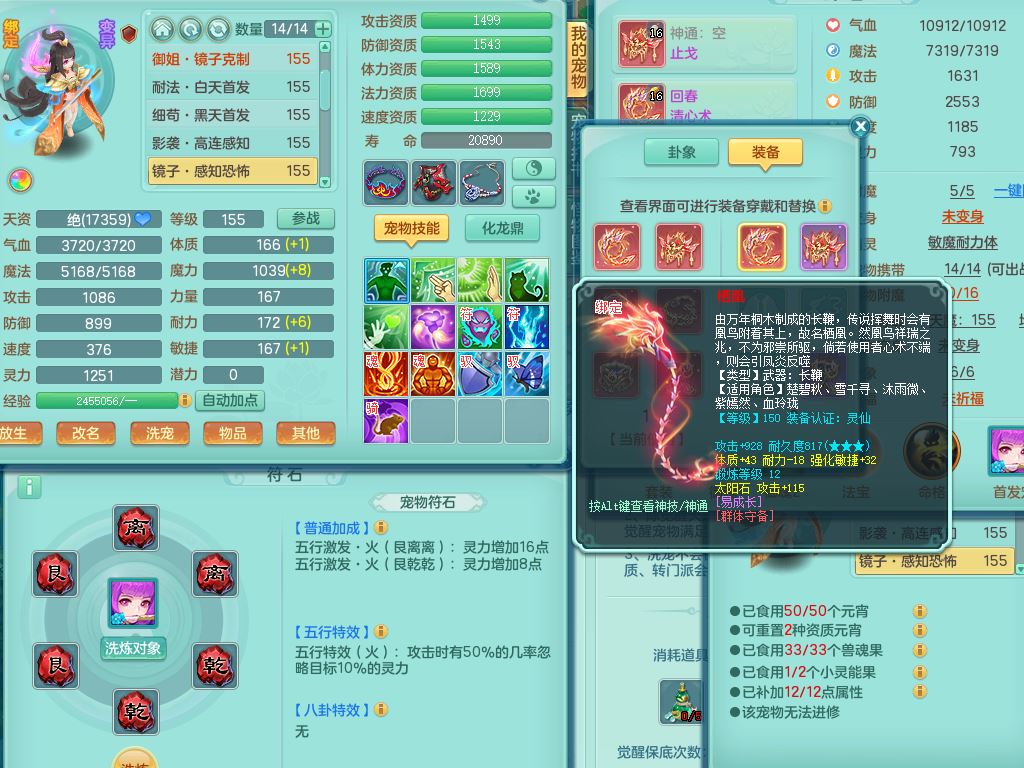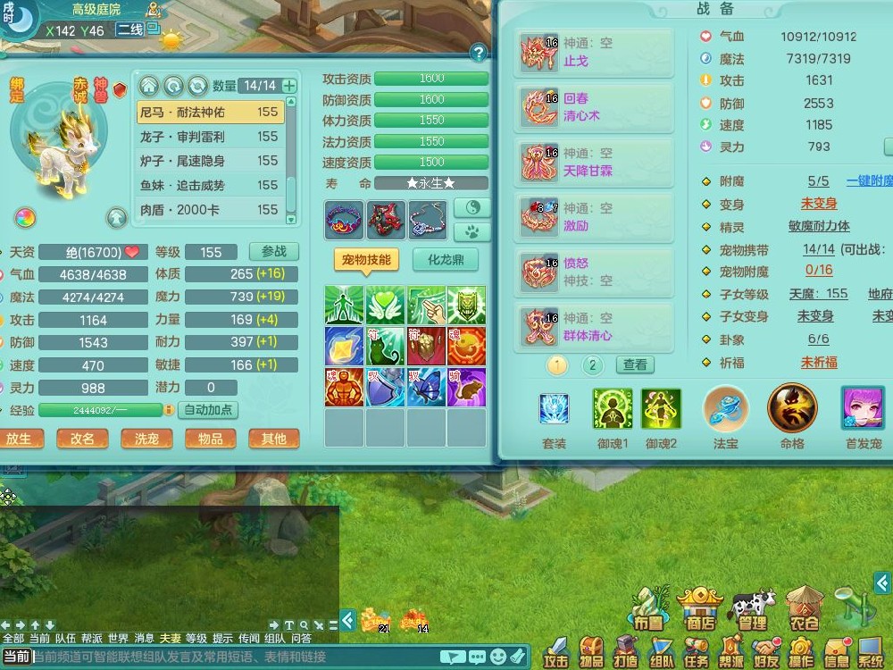 tx9858天下无双159女佛门【潜龙号】精灵舞,1龙(换,无内)1内丹龙马,5特殊(荒古/影袭/破碎/兽决枪出/上善)3镜花灵,15只满果子12觉醒12个纯6字,回春愤怒5特,回春水清武器,鼎5.5+70+280,46天月卡,永久头饰精灵皮肤,宠排在榜