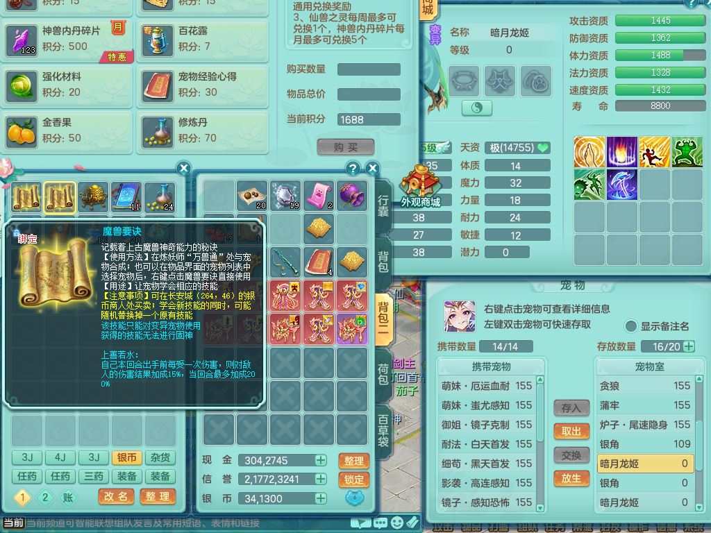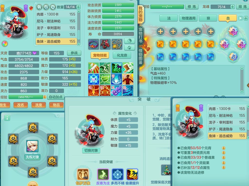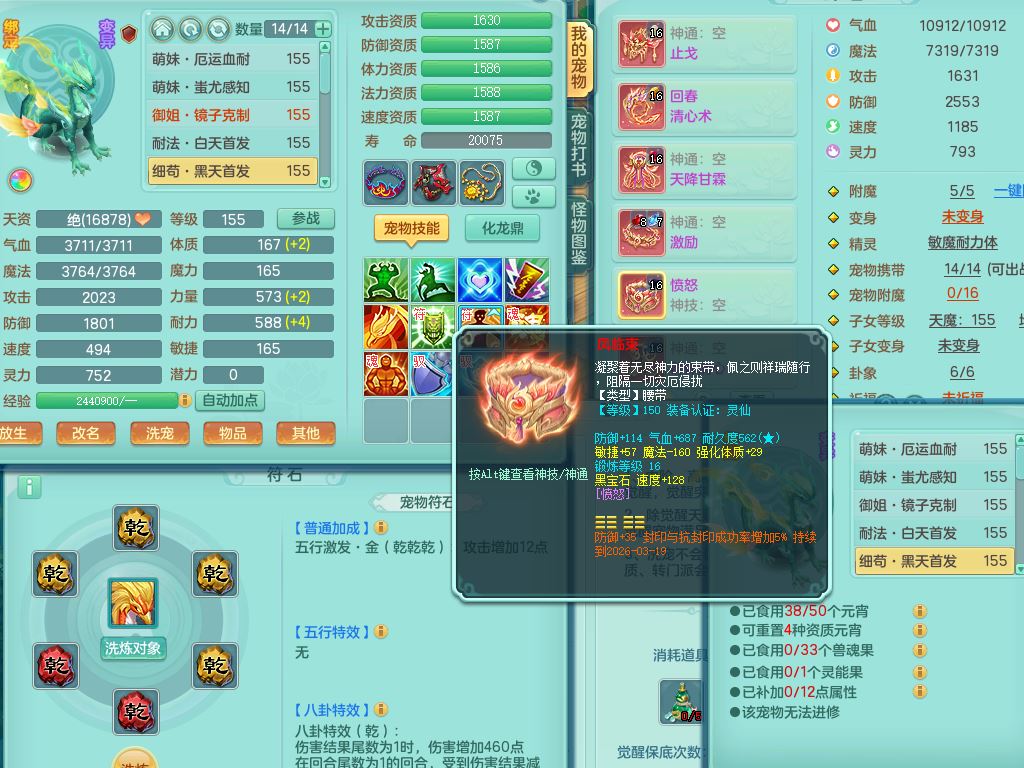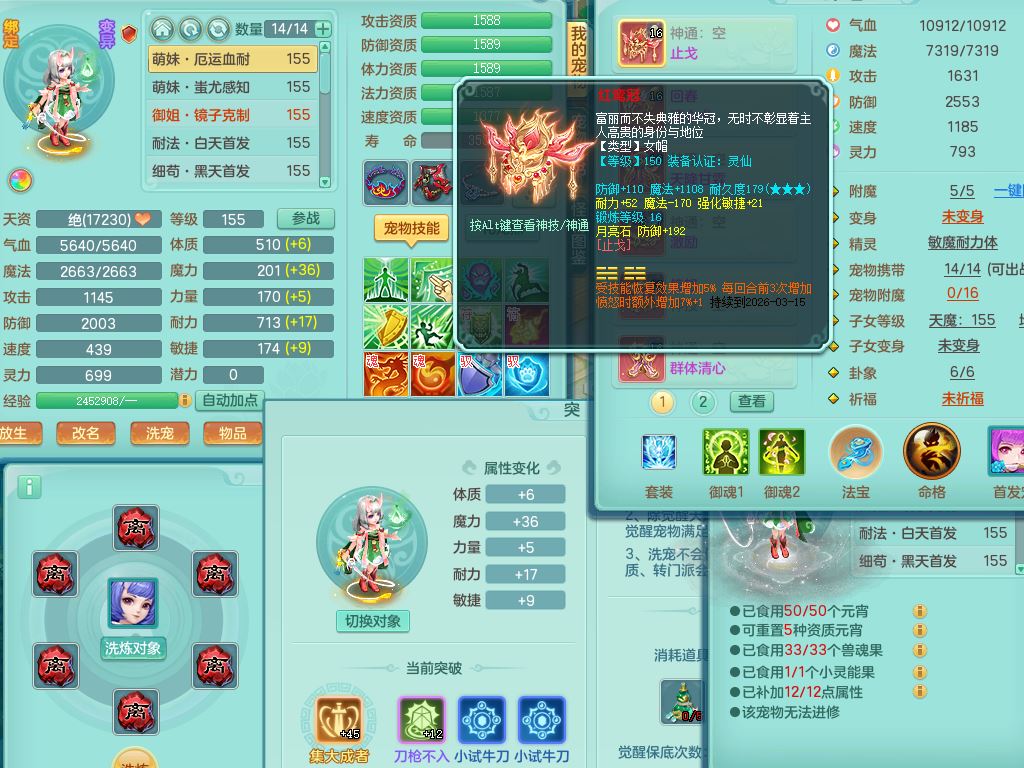 tx9858天下无双159女佛门【潜龙号】精灵舞,1龙(换,无内)1内丹龙马,5特殊(荒古/影袭/破碎/兽决枪出/上善)3镜花灵,15只满果子12觉醒12个纯6字,回春愤怒5特,回春水清武器,鼎5.5+70+280,46天月卡,永久头饰精灵皮肤,宠排在榜