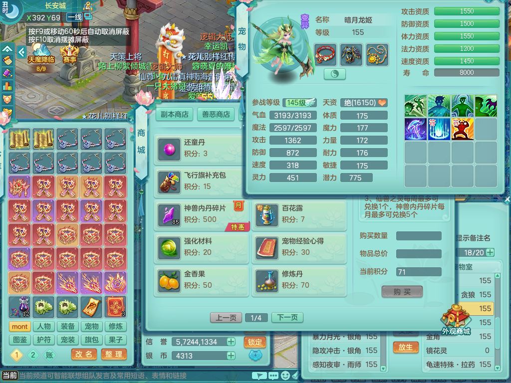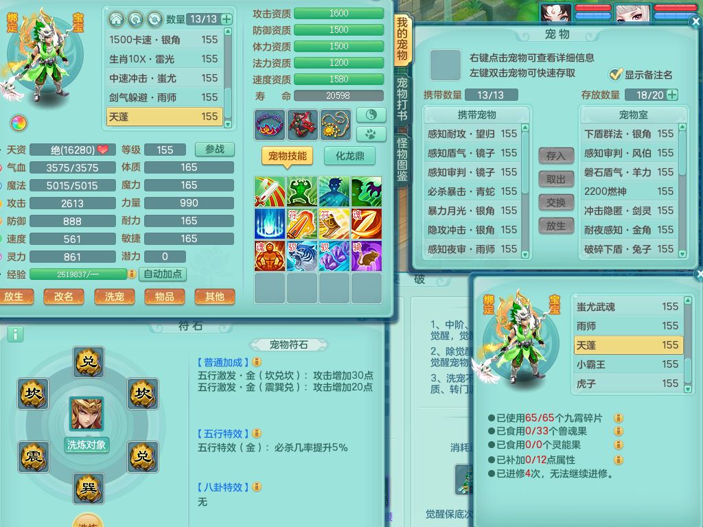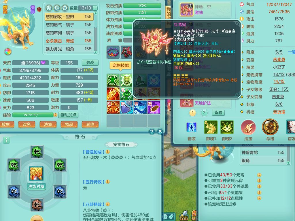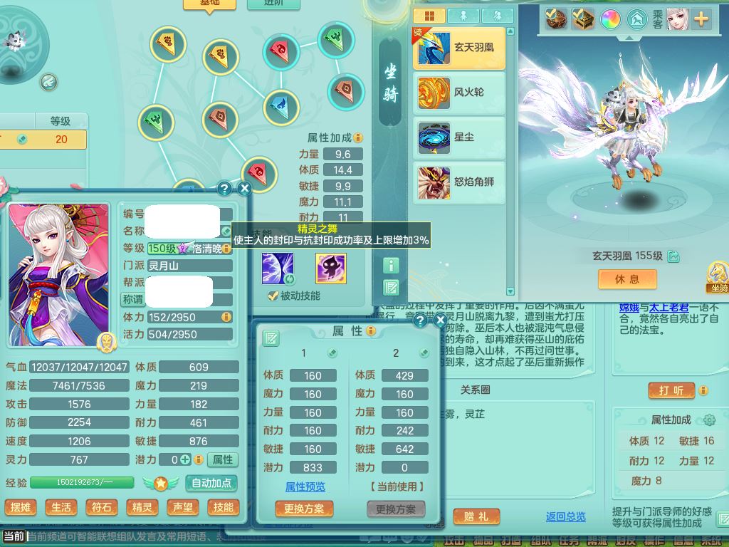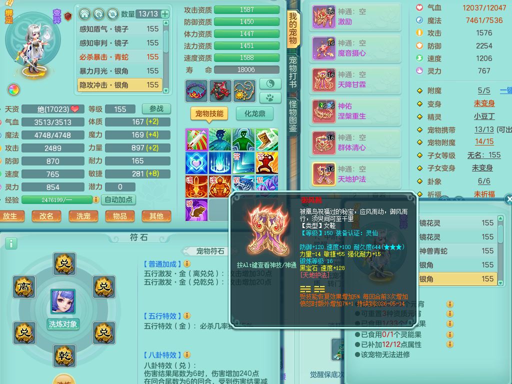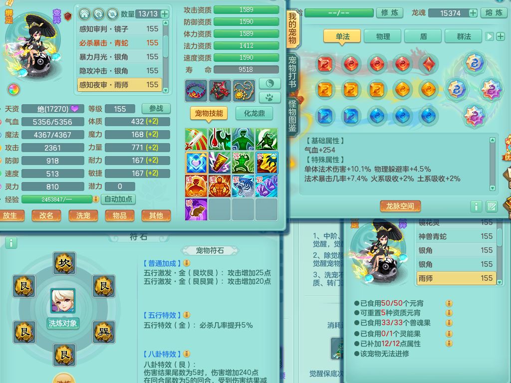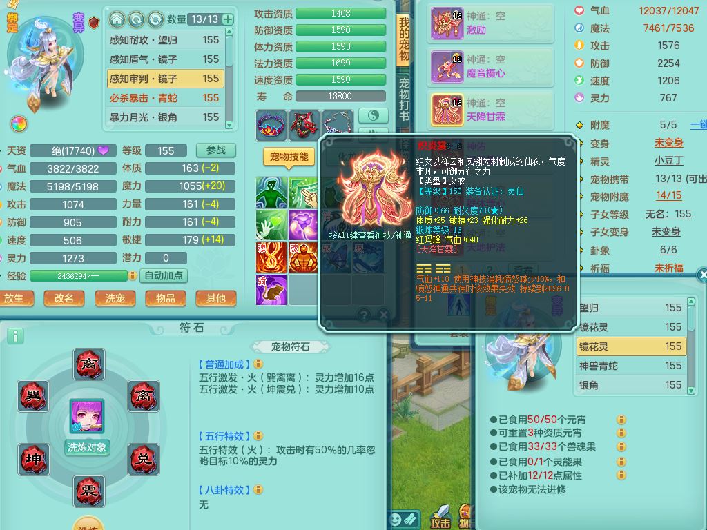 tx9863天下无双159女灵月精灵舞,满级共鸣,1内丹青蛇1特殊(藕断兽决),9只满果子1觉醒9个4字2个5字,7红6特,神佑慈航项链,鼎5.0,永久外观精灵皮肤,39仙兽灵,飞行双人坐骑