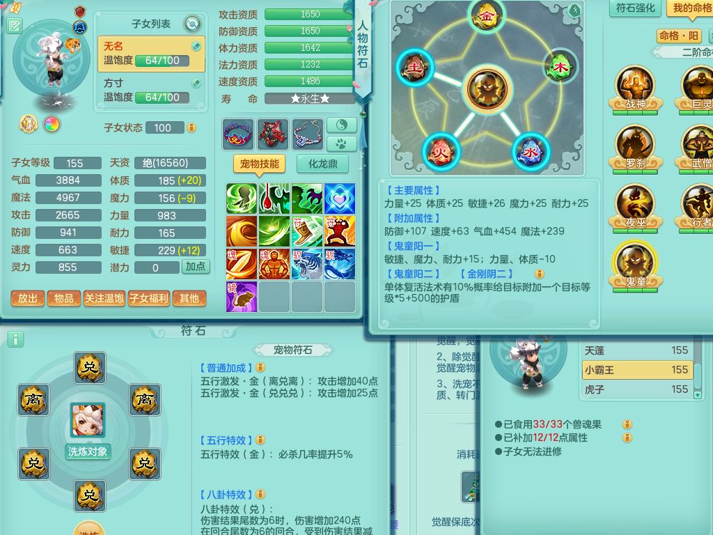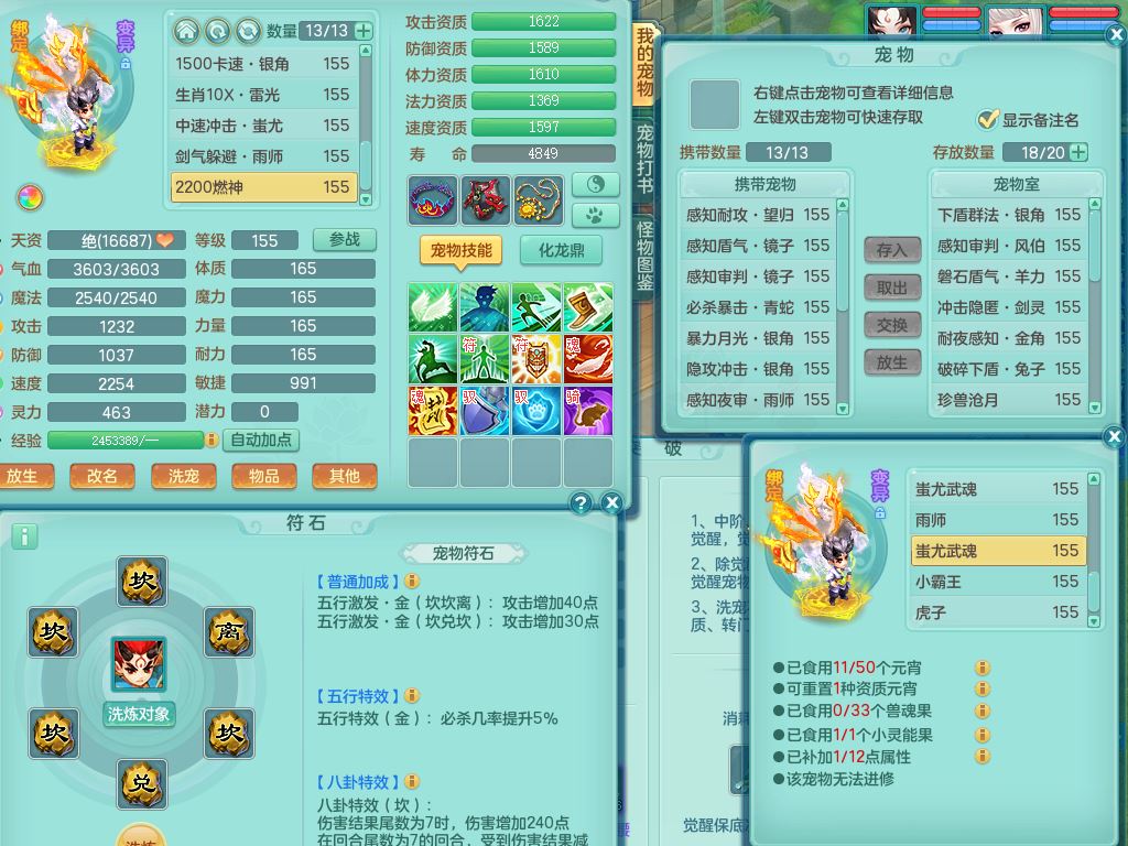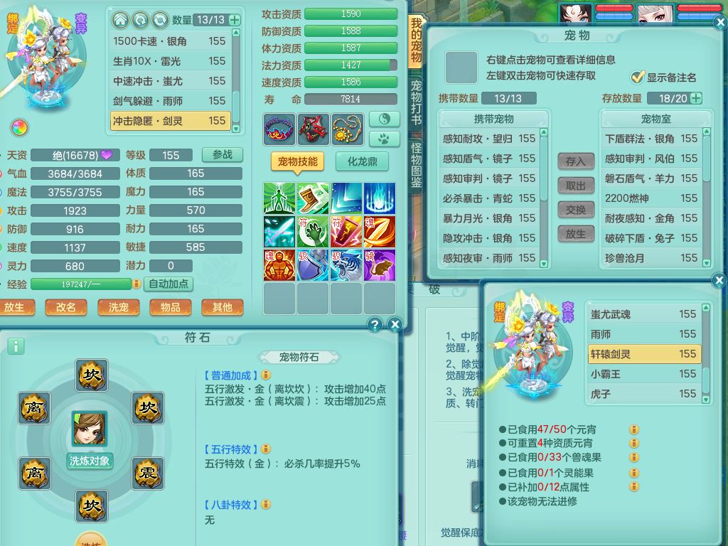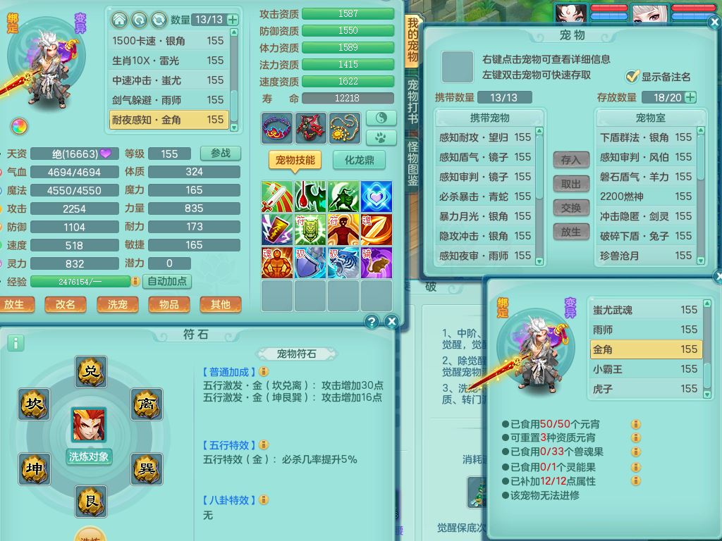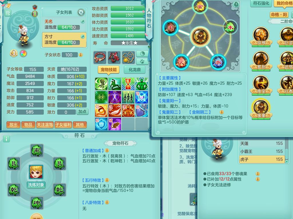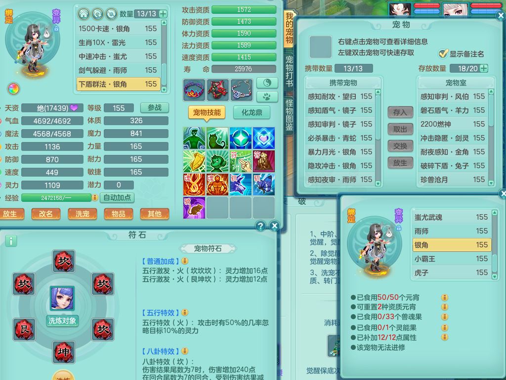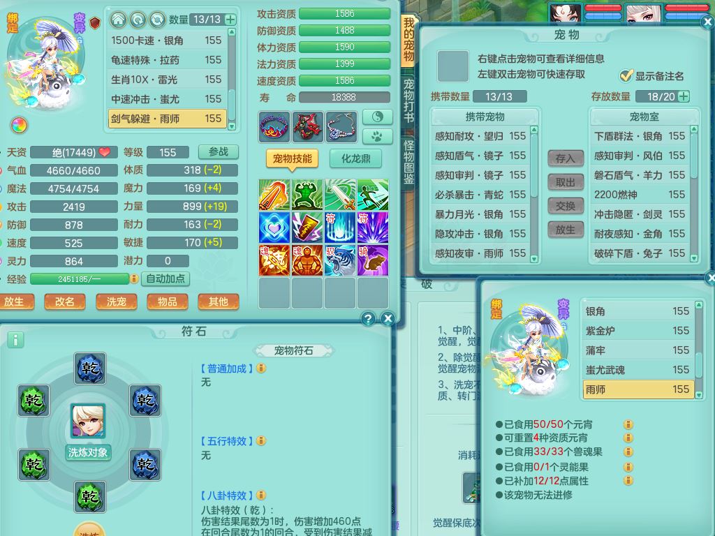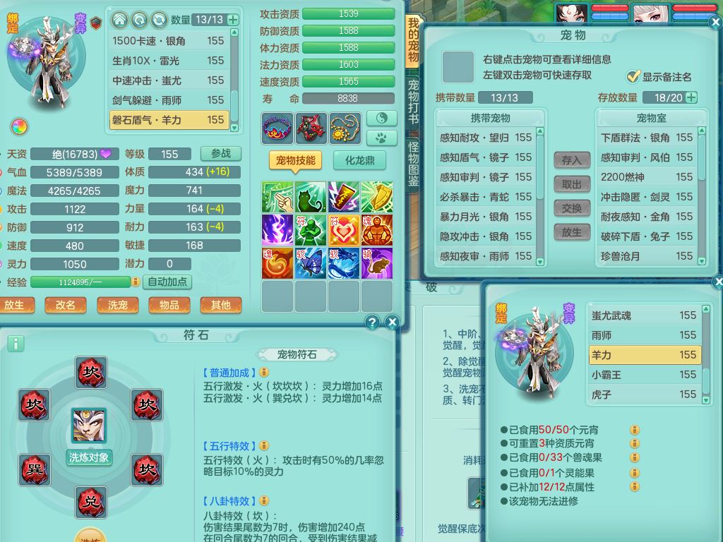 tx9863天下无双159女灵月精灵舞,满级共鸣,1内丹青蛇1特殊(藕断兽决),9只满果子1觉醒9个4字2个5字,7红6特,神佑慈航项链,鼎5.0,永久外观精灵皮肤,39仙兽灵,飞行双人坐骑