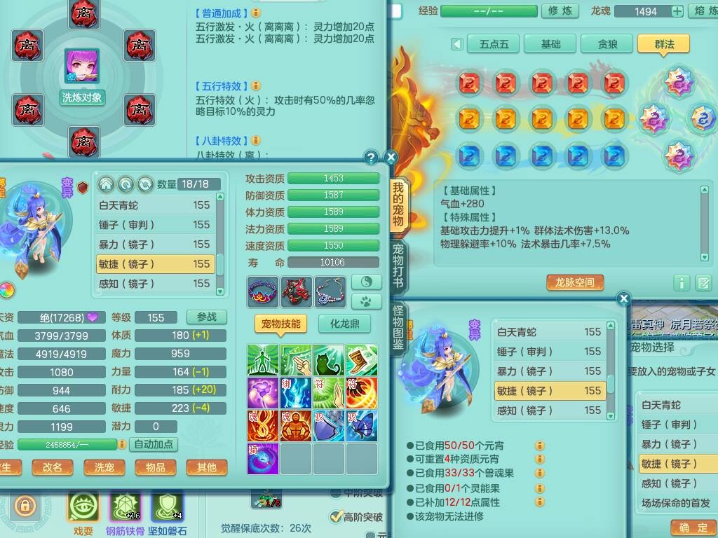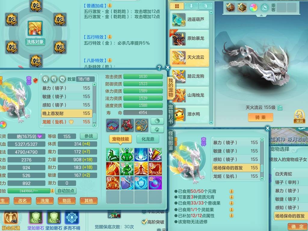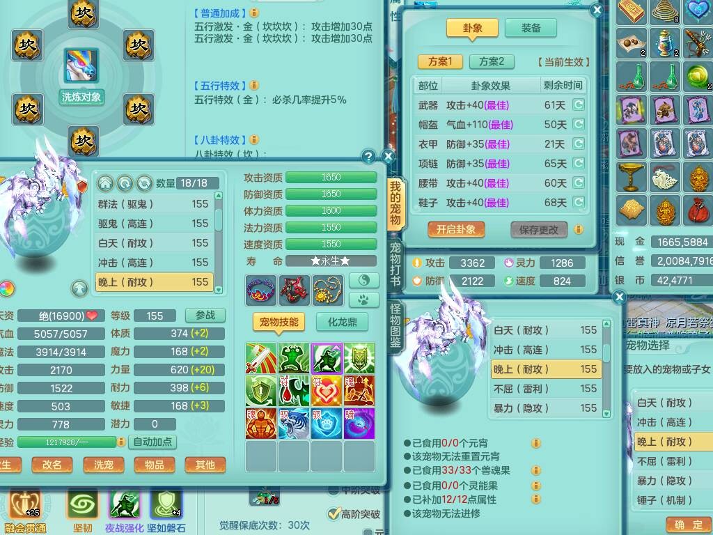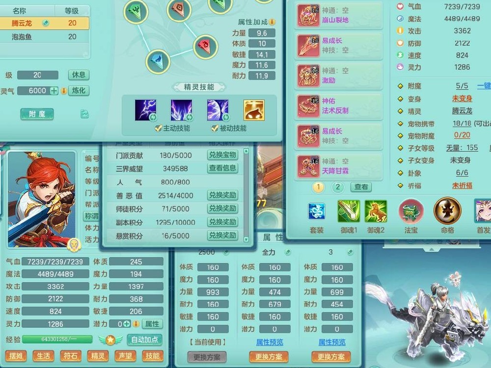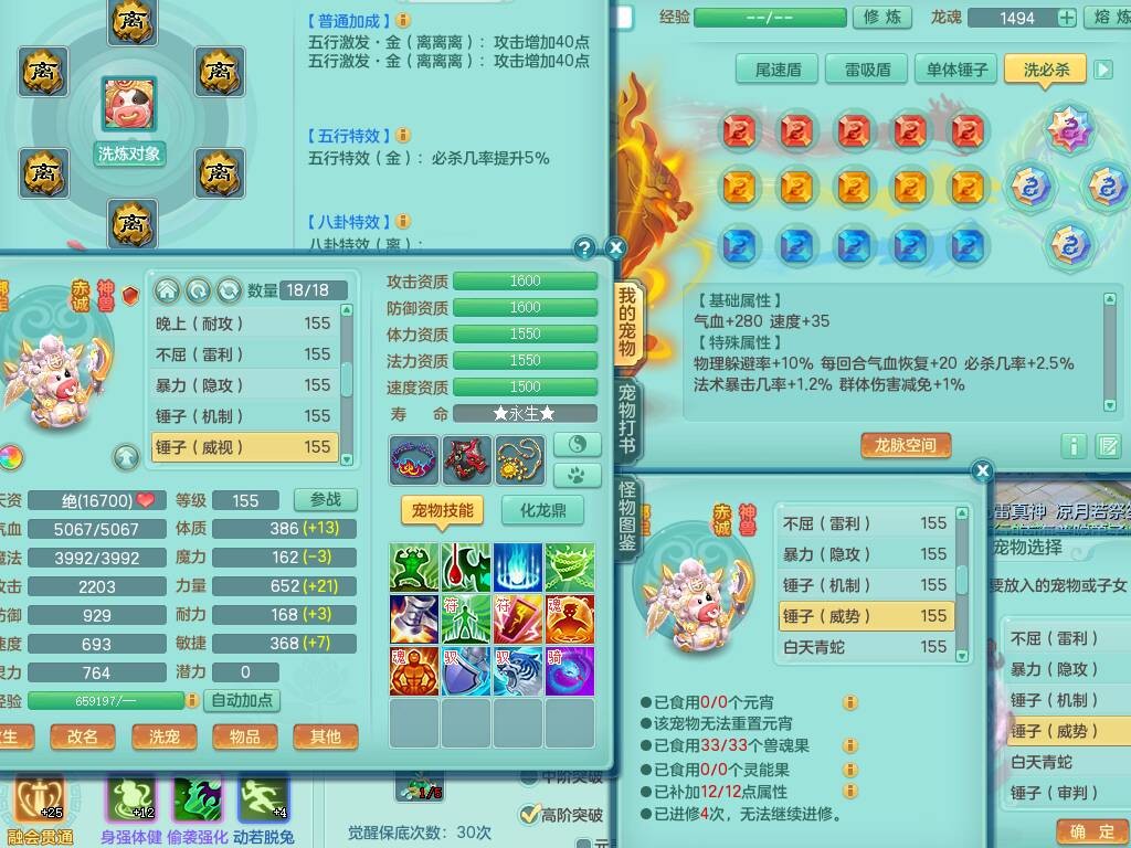 rj9865任剑逍遥159男天策精灵歌,9内胆龙,3内胆神+1神兽内丹,11只觉醒(准潜龙,只差4个主要属性),6宠皮+1幻灵果,8位靓号,3只6技能镜花灵,1只6技能龙姬,崩山单加55头,神佑法术反制单加55链子,易成长单加50腰带,5.5基础鼎+70攻,280血,物理躲避10%,15个格子,28个纯六字,4个5字,25只满果子,家里仓库BB还有6只满果子,宠排在榜,6只坐骑+西瓜冰武器+火焰之力,月卡还有179天。带2个159奶粉