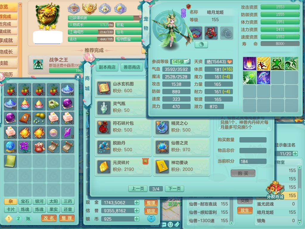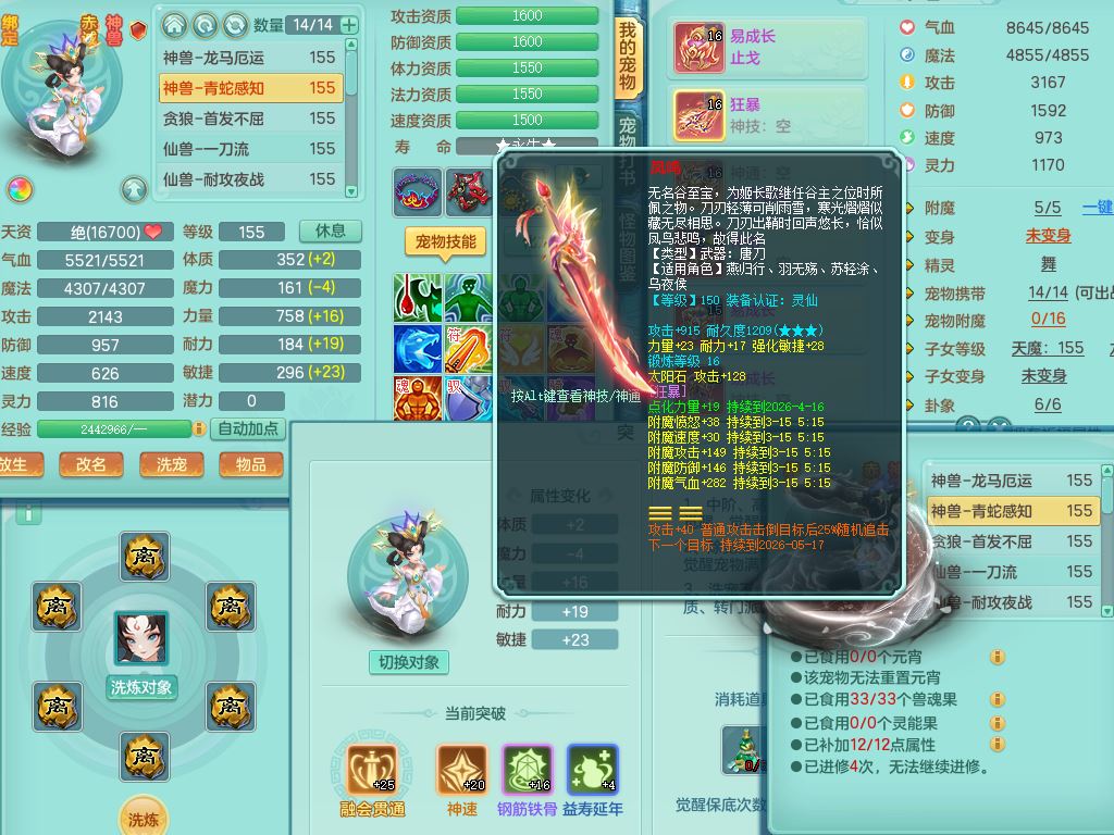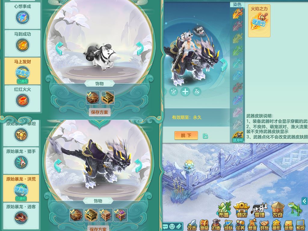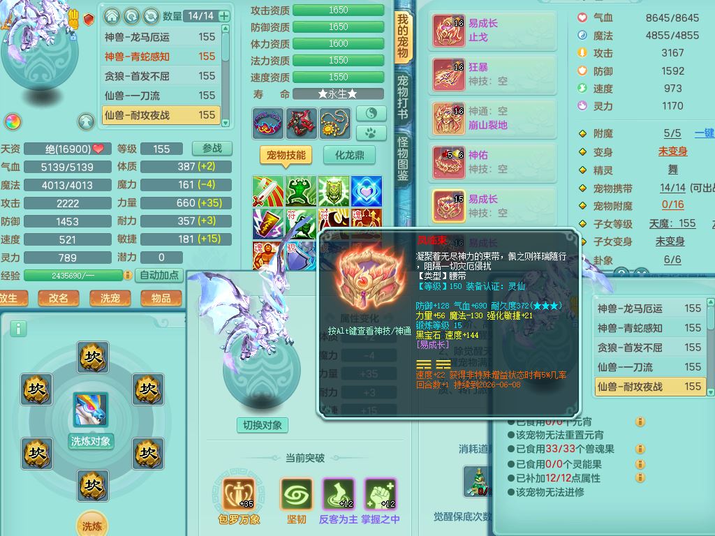 tx9864天下无双159男万兽【潜龙号+神驹马上发财+暴龙洪荒+火焰之力】精灵舞,5字靓号,5龙(换)2内(青蛇、龙马)1破境5皮,3镜花灵,20只满果子13觉醒14个纯6字,915狂暴武器,单加Y止戈头,崩山衣服,单加Y腰带,Y鞋,鼎5.5+70+280,202天月卡,冰晶庭院,永久外观精灵皮肤,80果子,宠排在榜,4坐骑(3只双人)