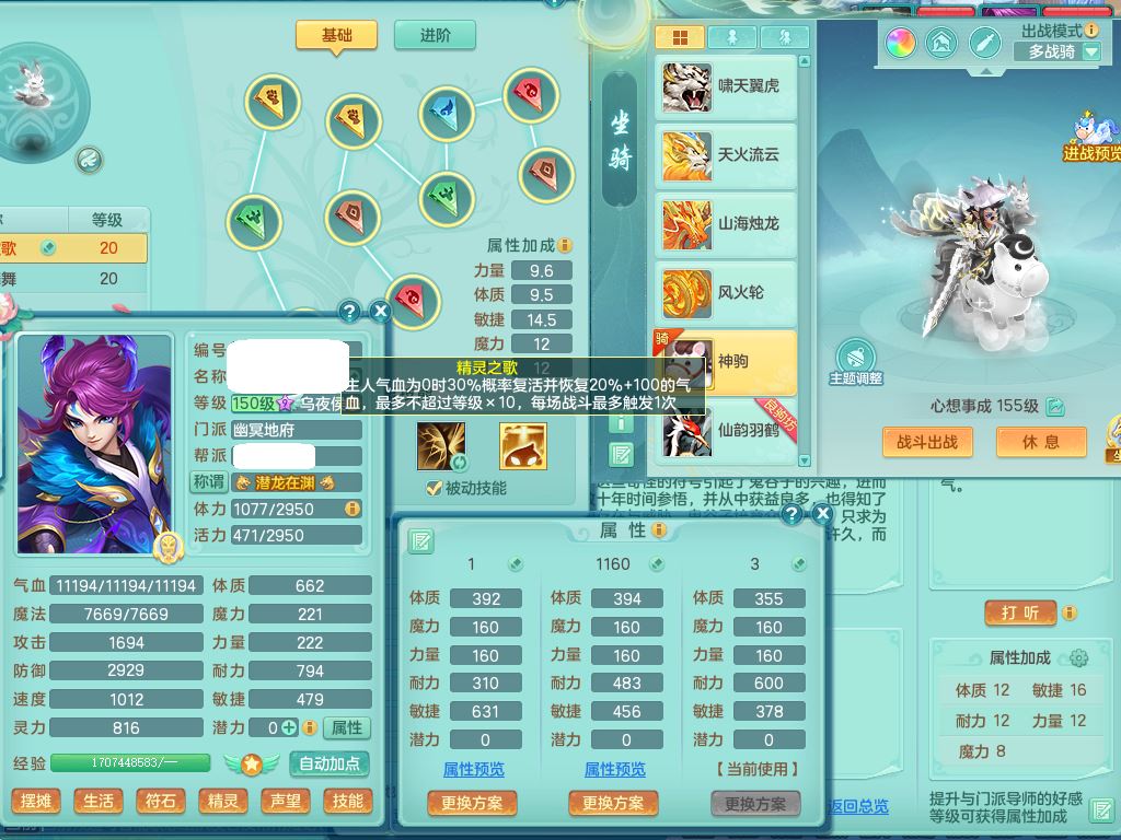 tx9880天下无双159男地府【潜龙号+神驹4坐骑+染色火焰之力】精灵歌,8字靓号,5龙(换)4内(2青蛇2龙马)2破境9皮,6特殊(堕天/雷厉/怒破/双星/灵傀/琴音兽决)5镜花灵,18格子33只满果子19觉醒19个纯6字,13红Y四海头,Y回春守护武器,,格挡慈航衣服,Y罗汉项链,愤怒玉清腰带,Y迟滞鞋,可切星辰之拥,单加迅捷Y3红鞋,仓库单加破甲头,单加法缭衣服,鼎5.5+70+280,3套符石,214天月卡,冰晶庭院158,永久外观精灵皮肤,120多果子,10002金币,宠排在榜,5坐骑(2只双人)