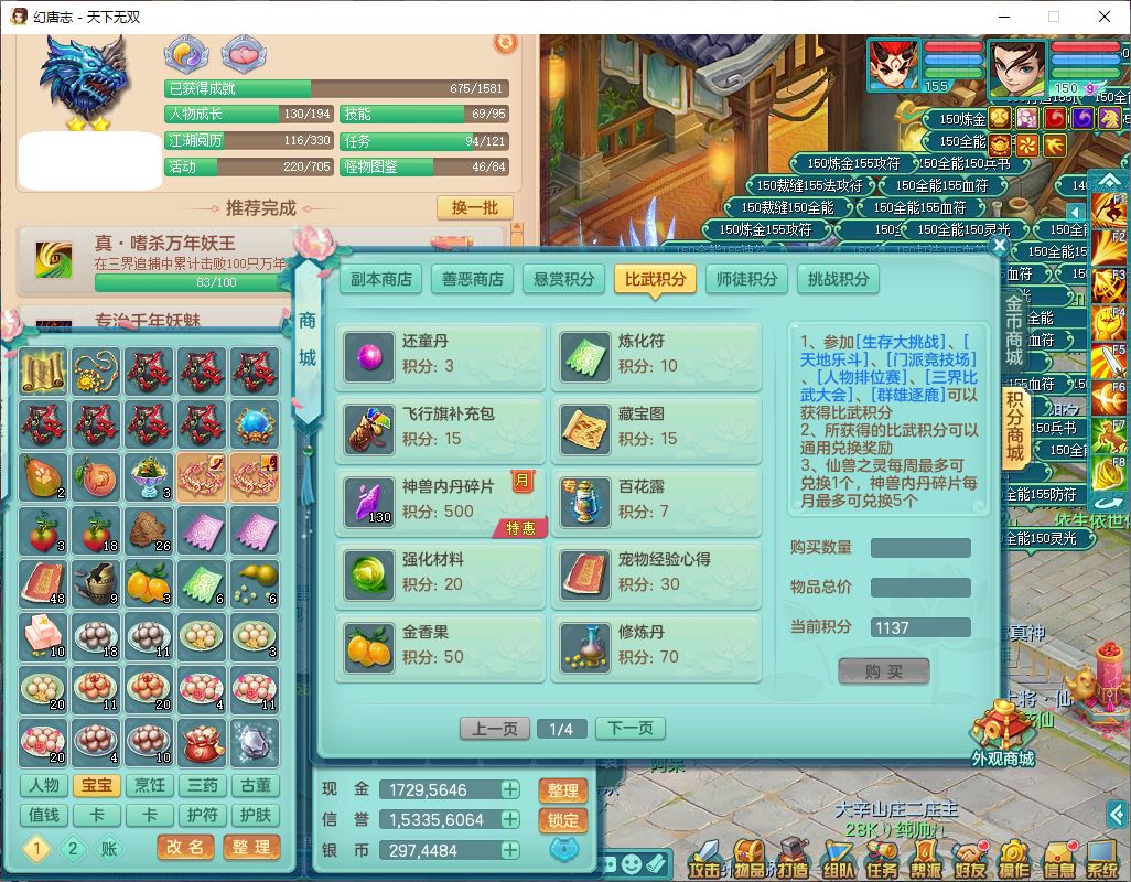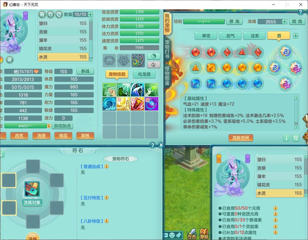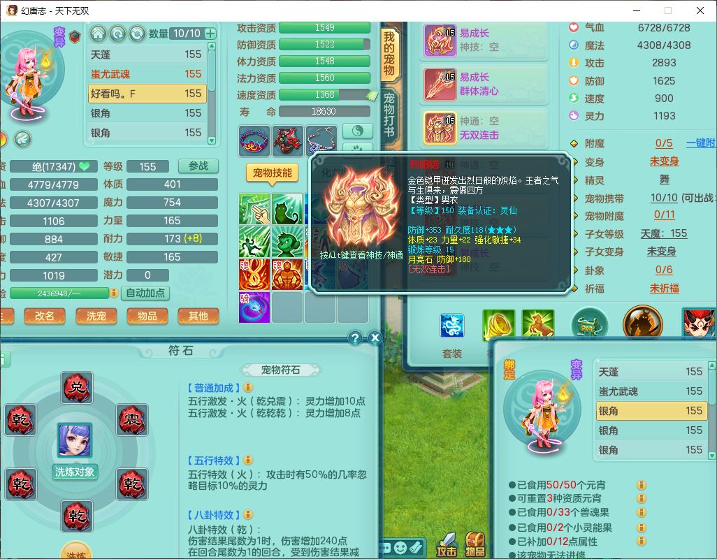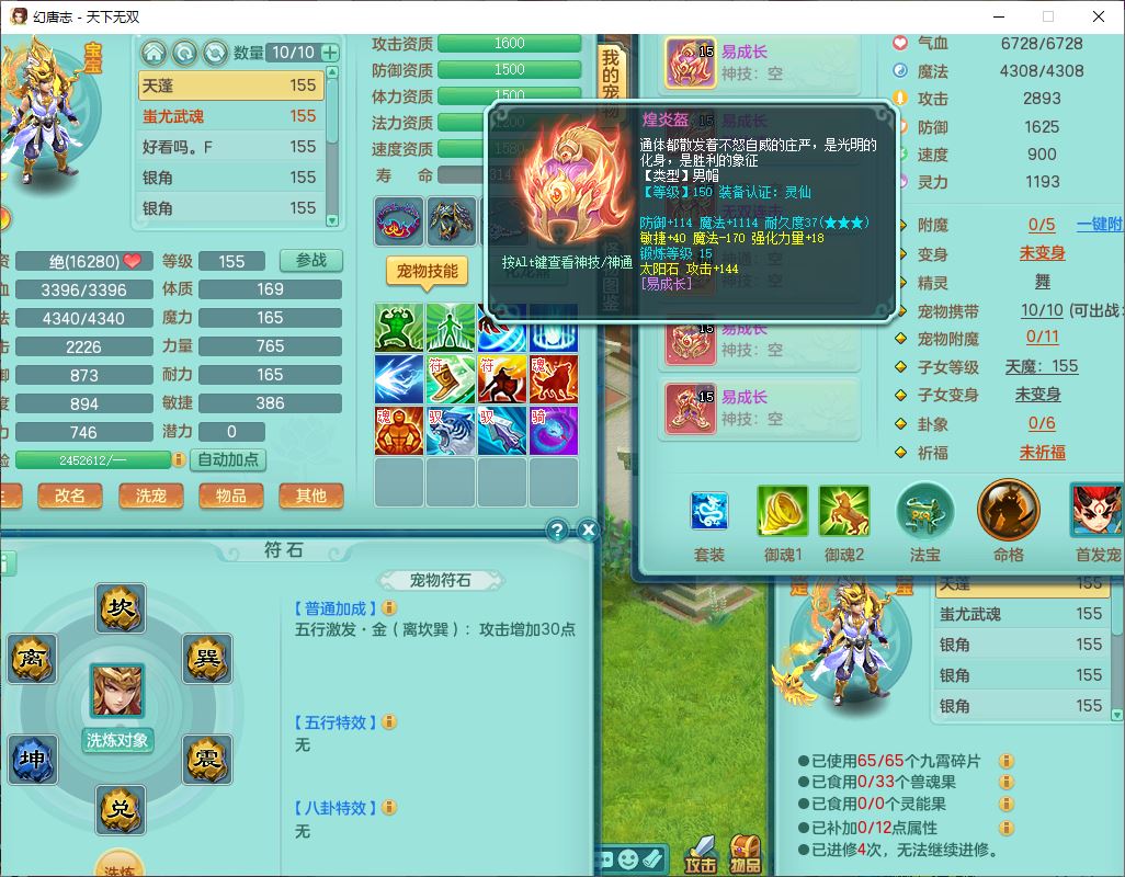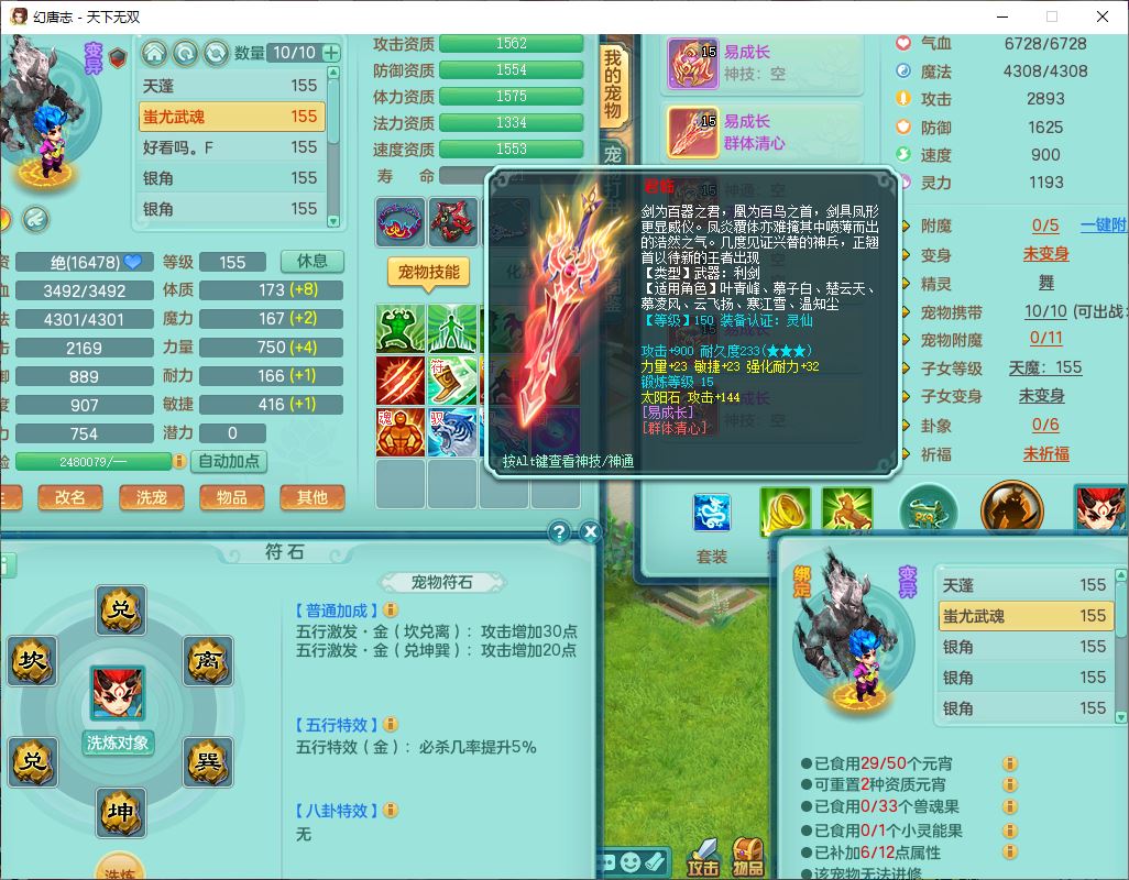 tx9890天下无双159男天策精灵歌,1望归1镜花12只成品满高书宝宝,装备齐全,Y玉清武器,破血衣服,297W神武币,1双人飞行坐骑,带158奶粉女无量,装备宝宝齐全