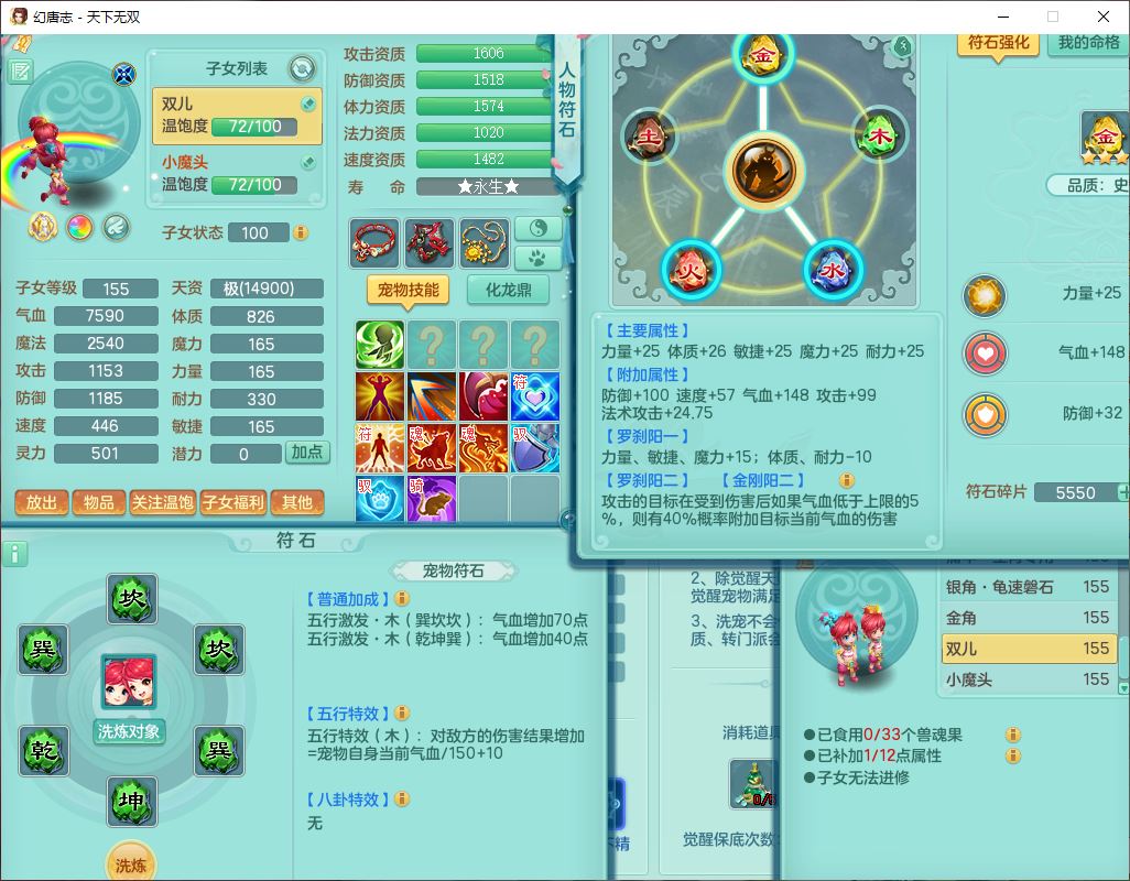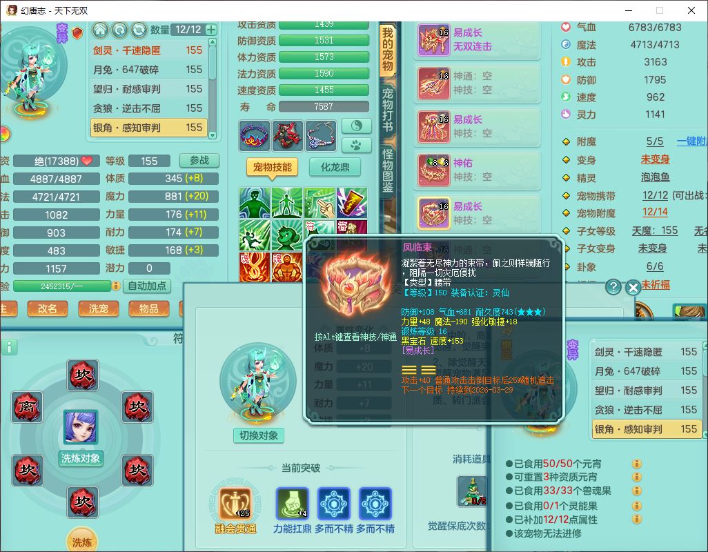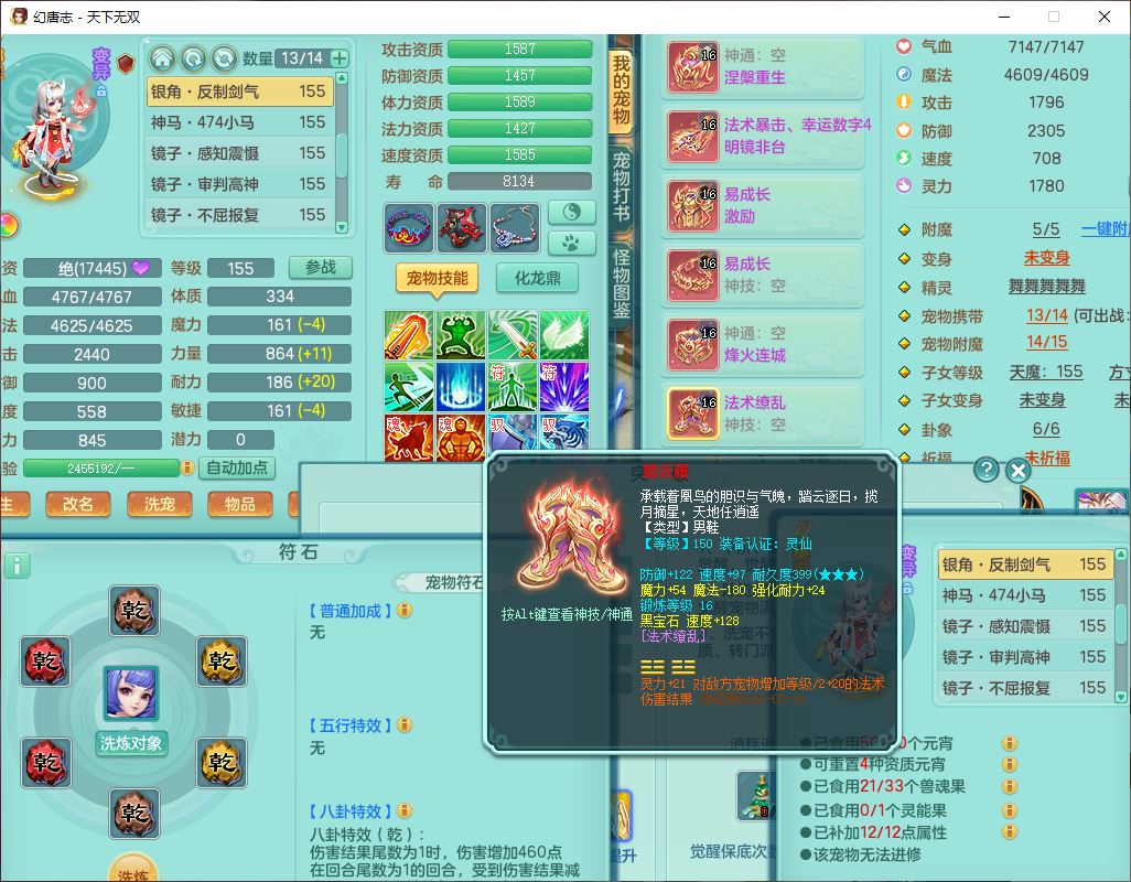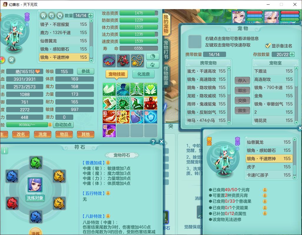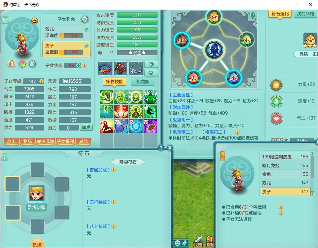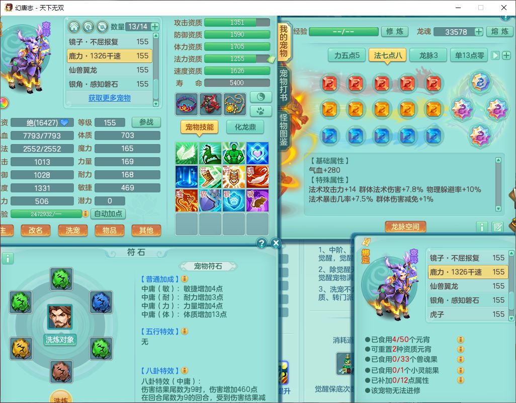tx9889天下无双159男魔王【准潜龙号,差1只宝宝1条主符石2条附加】精灵舞,1龙(换、无内)1内丹龙马4镜花1特殊兽决(流星),7觉醒7六字4四字9只满果子,9红装备,法爆幸运明镜武器,Y激励衣服,276Y项链,法缭鞋子,Y迟滞腰带,鼎5.5+70+280,庭院151,永久脸饰、精灵皮肤,52个内丹碎片,1双人飞行坐骑;带159女万兽精灵歌,1望归1特殊(影袭)3镜花,1觉醒2五字6四字,装备齐全,Y破血帽子,崩山鞋子,325W神武币;159女盘丝精灵歌,1望归3镜花1特殊兽决(翻江),8红装备,幸运玉清衣服,震怒守护腰带,129W神武币