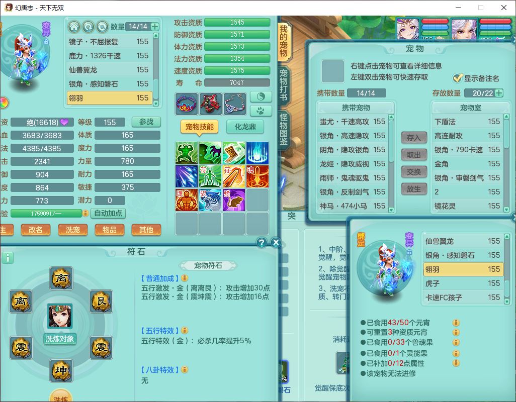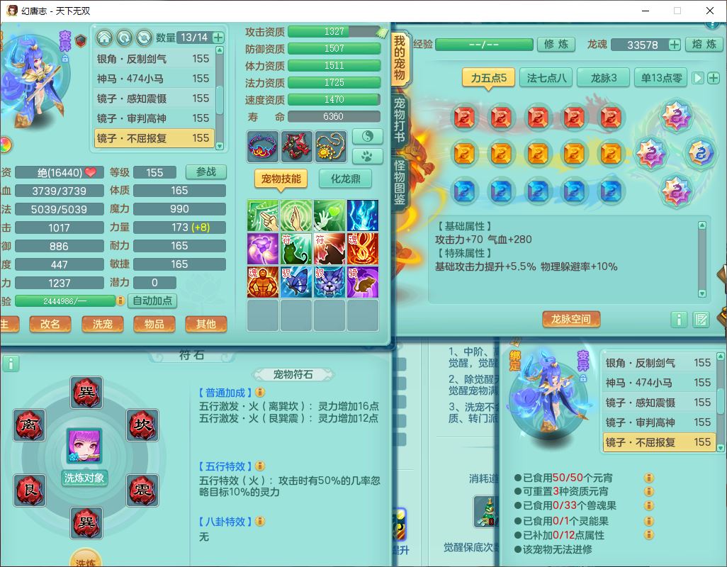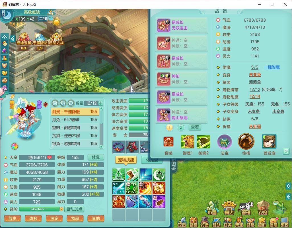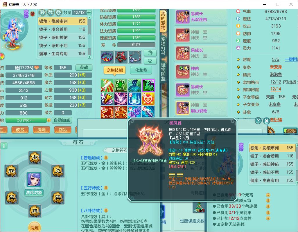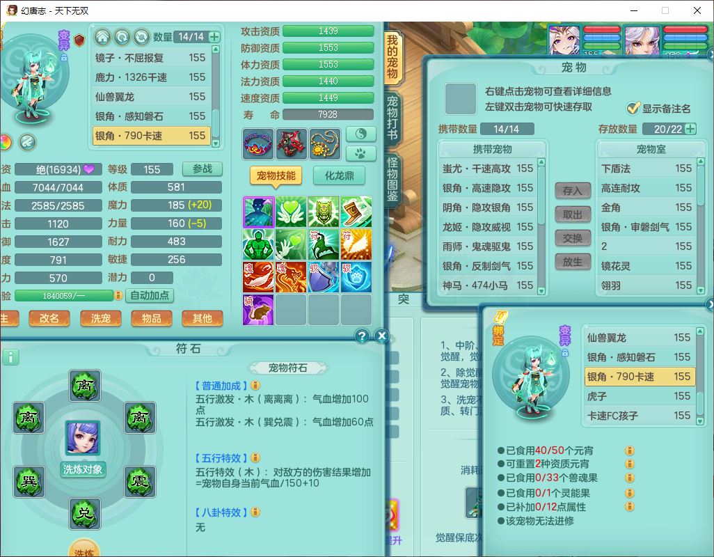 tx9889天下无双159男魔王【准潜龙号,差1只宝宝1条主符石2条附加】精灵舞,1龙(换、无内)1内丹龙马4镜花1特殊兽决(流星),7觉醒7六字4四字9只满果子,9红装备,法爆幸运明镜武器,Y激励衣服,276Y项链,法缭鞋子,Y迟滞腰带,鼎5.5+70+280,庭院151,永久脸饰、精灵皮肤,52个内丹碎片,1双人飞行坐骑;带159女万兽精灵歌,1望归1特殊(影袭)3镜花,1觉醒2五字6四字,装备齐全,Y破血帽子,崩山鞋子,325W神武币;159女盘丝精灵歌,1望归3镜花1特殊兽决(翻江),8红装备,幸运玉清衣服,震怒守护腰带,129W神武币