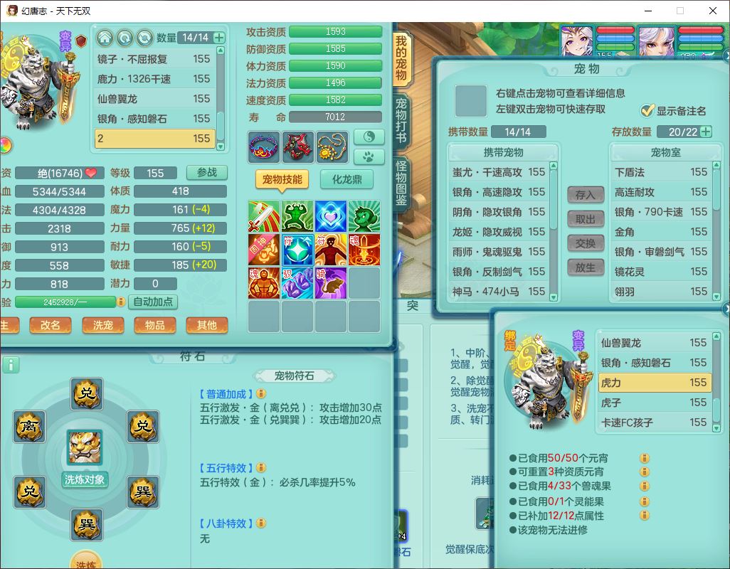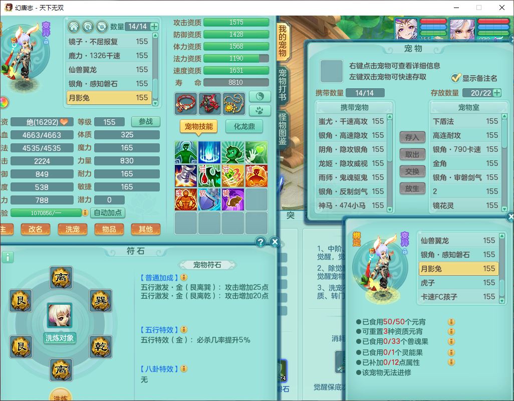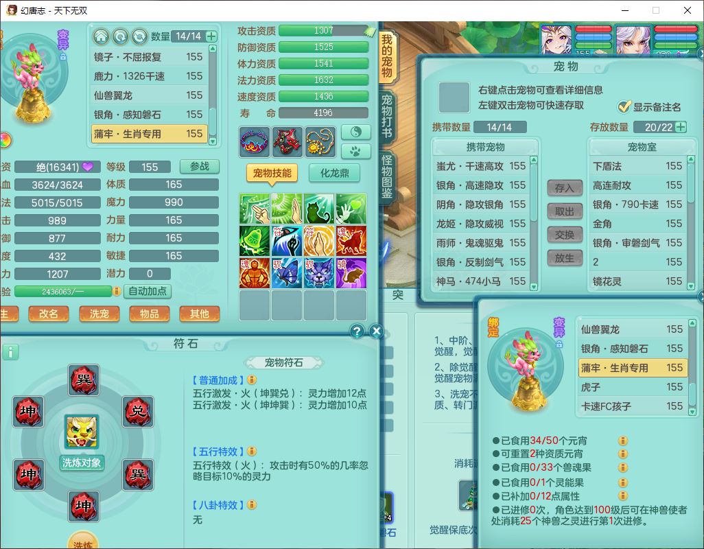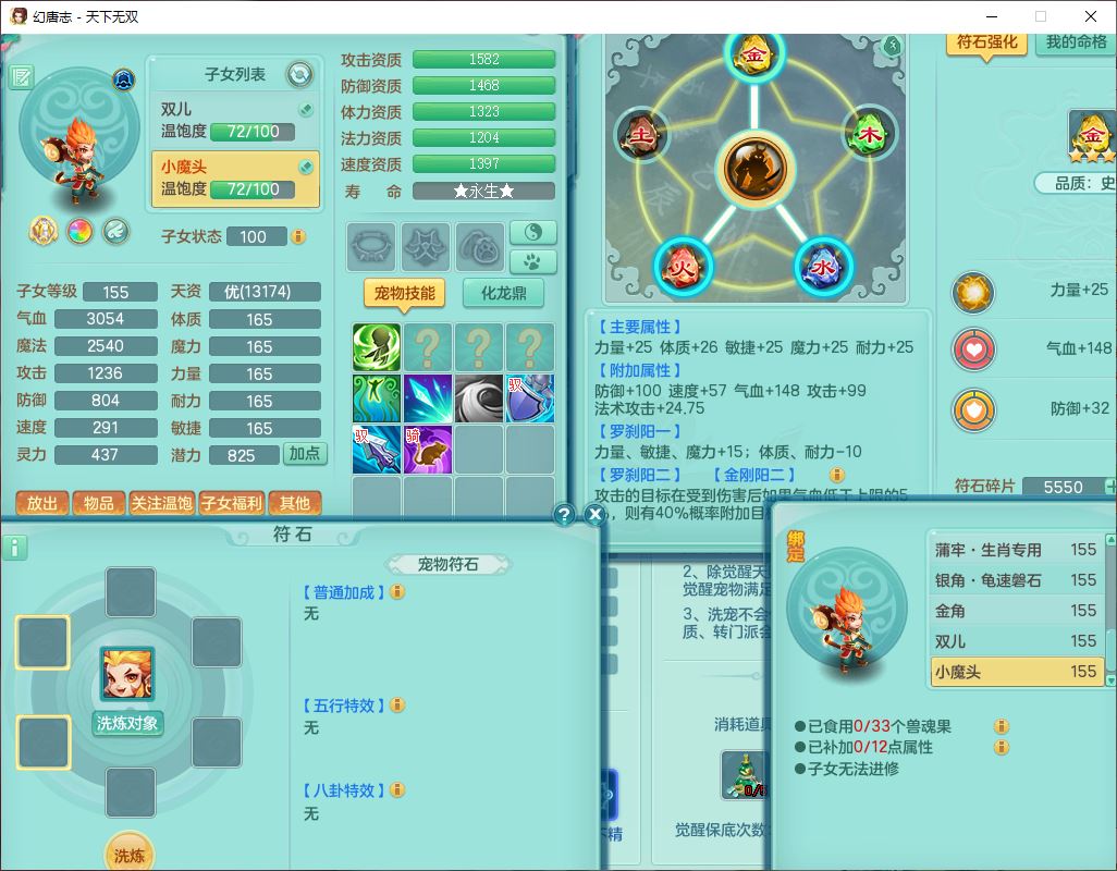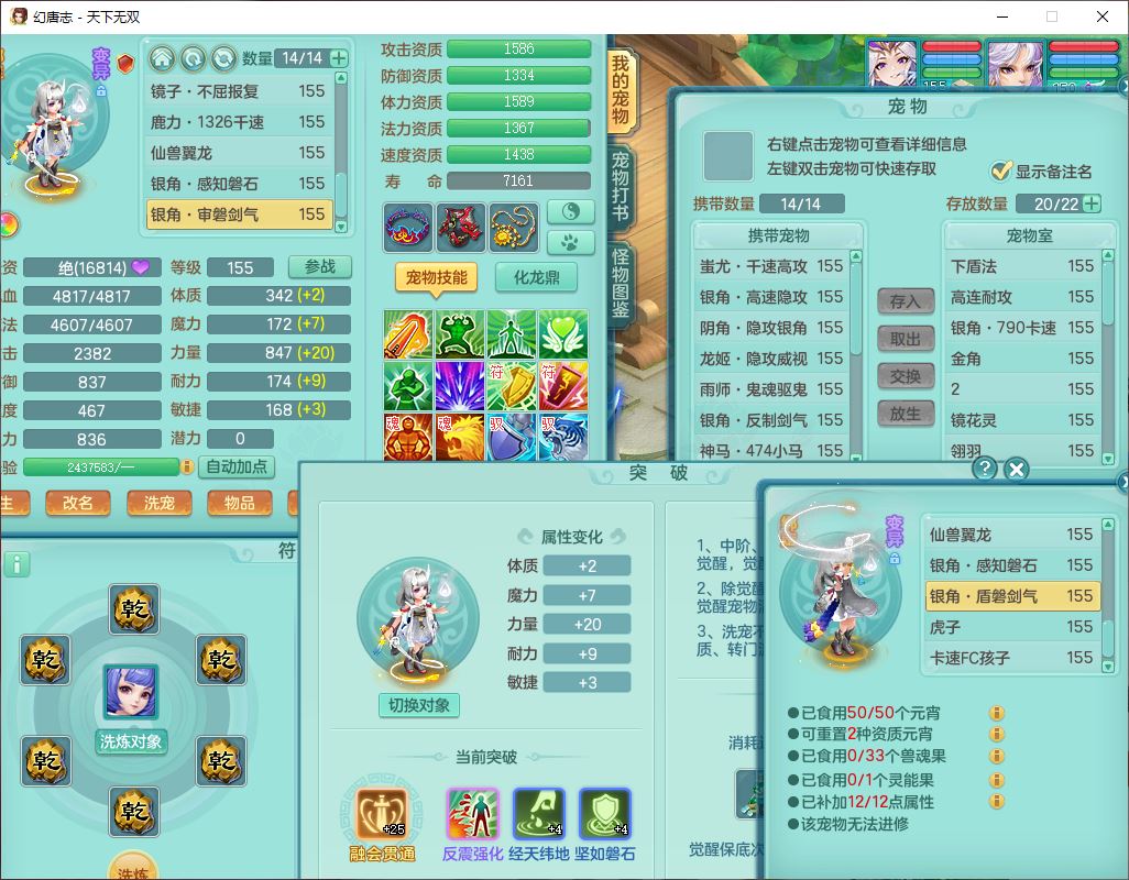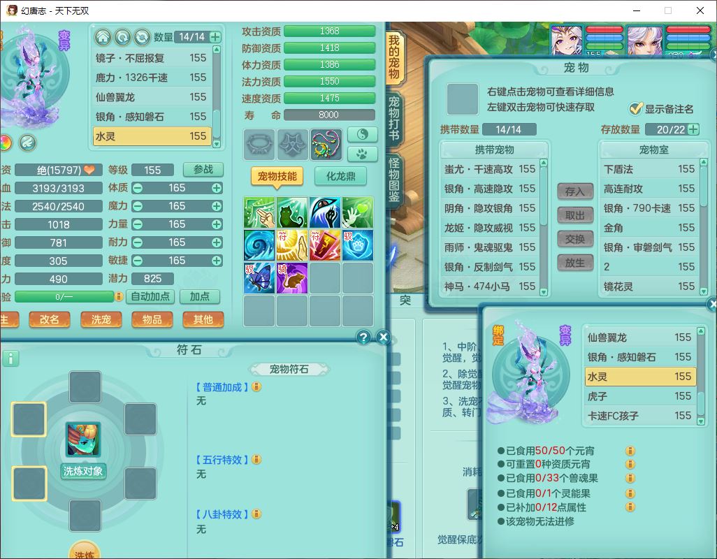 tx9889天下无双159男魔王【准潜龙号,差1只宝宝1条主符石2条附加】精灵舞,1龙(换、无内)1内丹龙马4镜花1特殊兽决(流星),7觉醒7六字4四字9只满果子,9红装备,法爆幸运明镜武器,Y激励衣服,276Y项链,法缭鞋子,Y迟滞腰带,鼎5.5+70+280,庭院151,永久脸饰、精灵皮肤,52个内丹碎片,1双人飞行坐骑;带159女万兽精灵歌,1望归1特殊(影袭)3镜花,1觉醒2五字6四字,装备齐全,Y破血帽子,崩山鞋子,325W神武币;159女盘丝精灵歌,1望归3镜花1特殊兽决(翻江),8红装备,幸运玉清衣服,震怒守护腰带,129W神武币