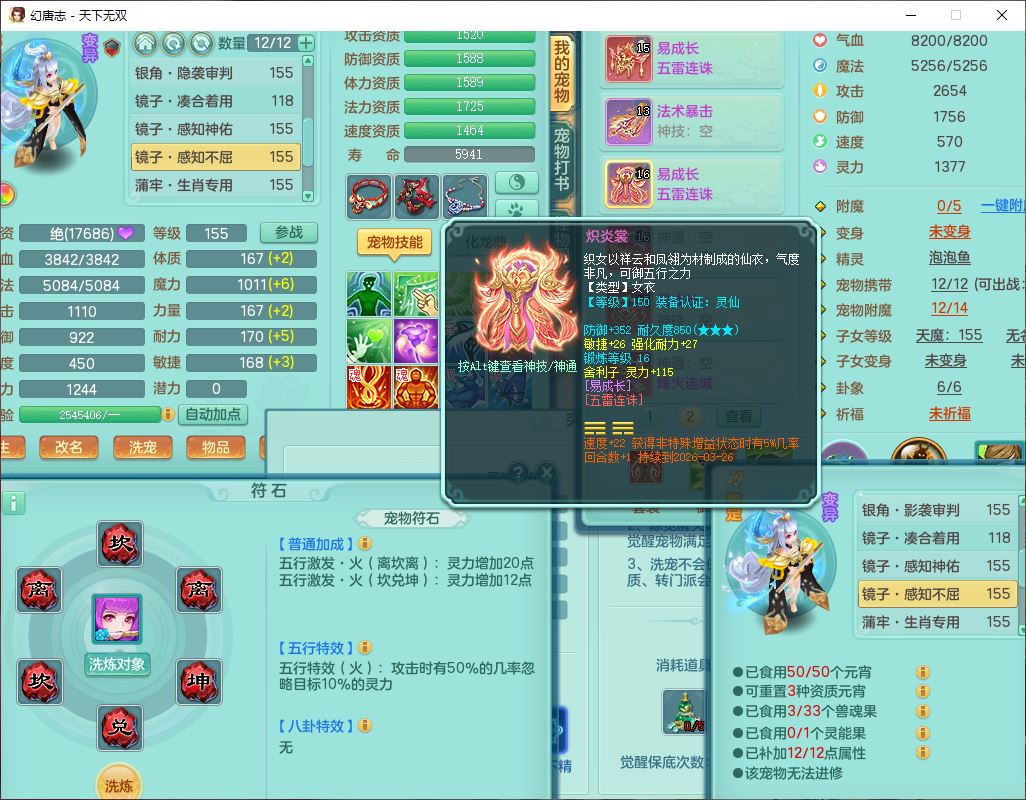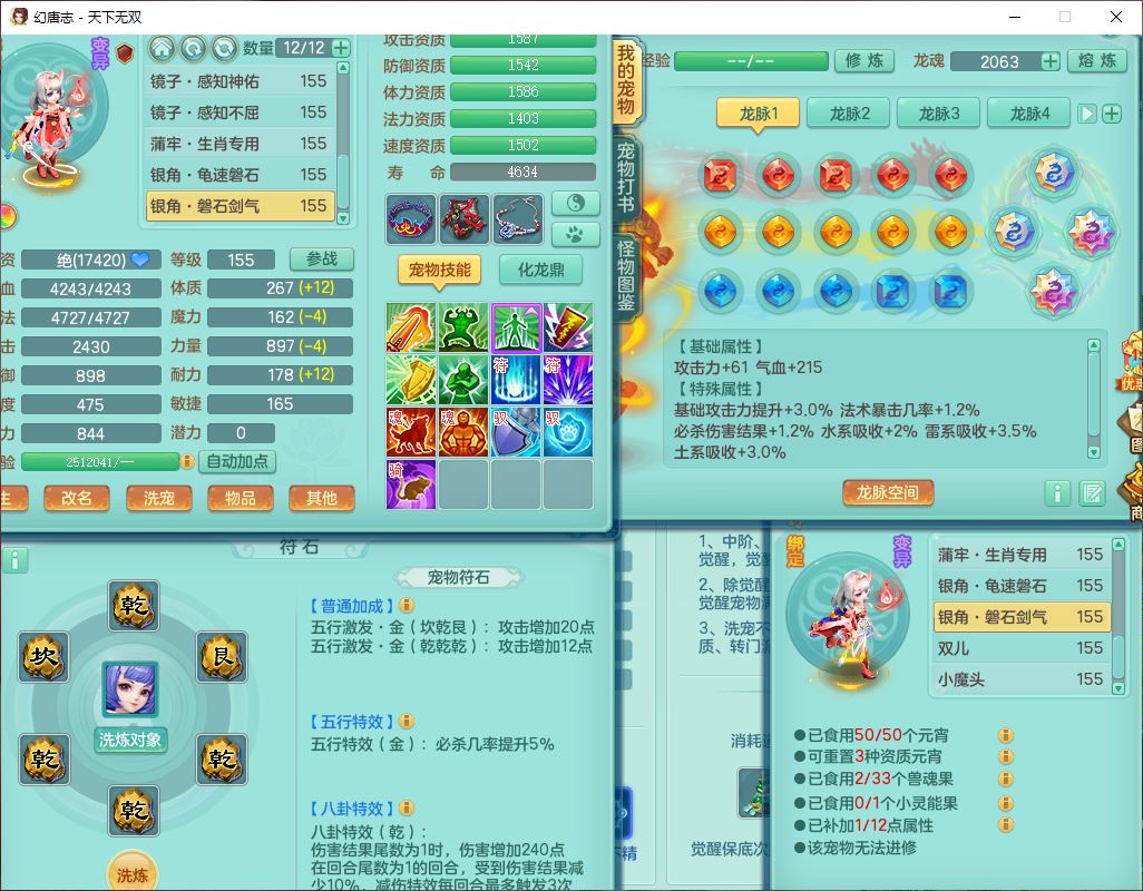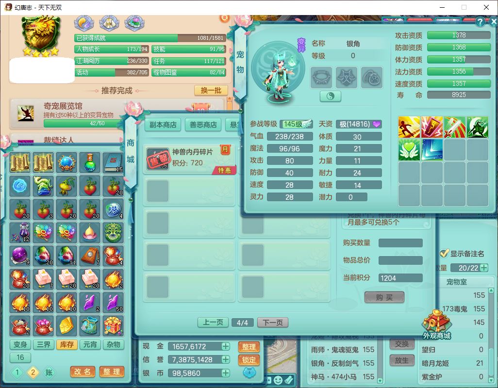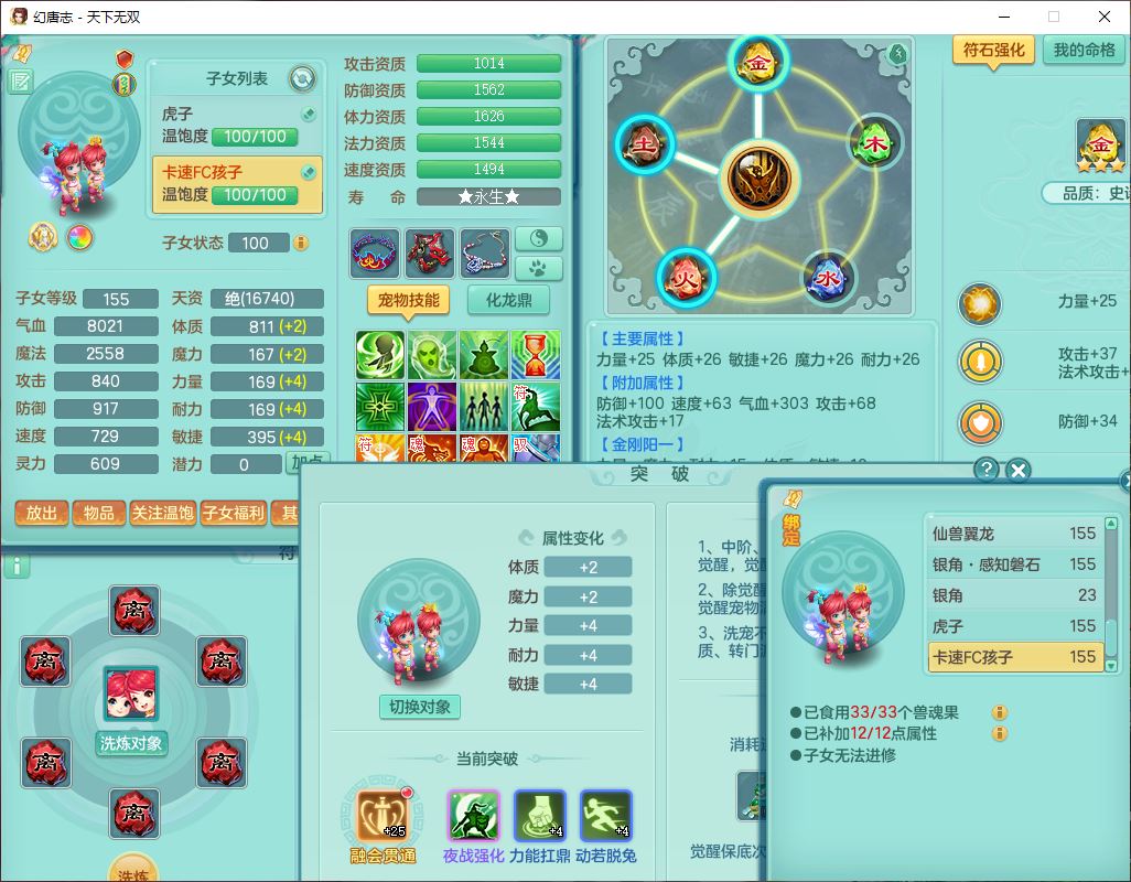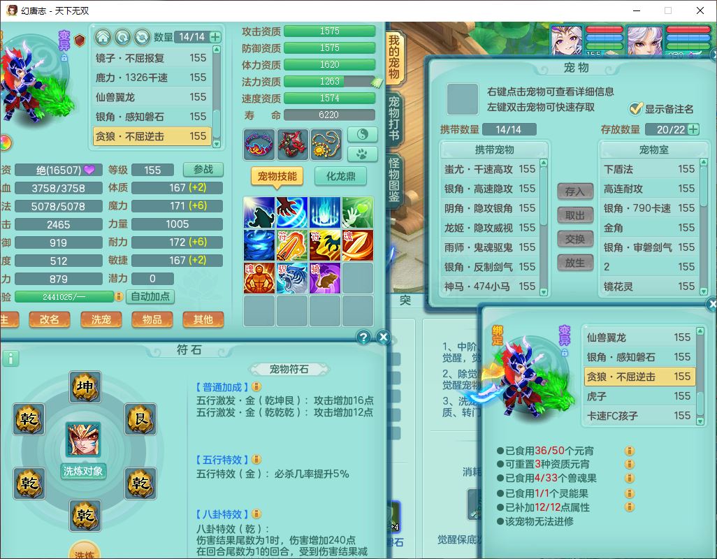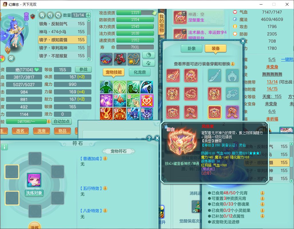 tx9889天下无双159男魔王【准潜龙号,差1只宝宝1条主符石2条附加】精灵舞,1龙(换、无内)1内丹龙马4镜花1特殊兽决(流星),7觉醒7六字4四字9只满果子,9红装备,法爆幸运明镜武器,Y激励衣服,276Y项链,法缭鞋子,Y迟滞腰带,鼎5.5+70+280,庭院151,永久脸饰、精灵皮肤,52个内丹碎片,1双人飞行坐骑;带159女万兽精灵歌,1望归1特殊(影袭)3镜花,1觉醒2五字6四字,装备齐全,Y破血帽子,崩山鞋子,325W神武币;159女盘丝精灵歌,1望归3镜花1特殊兽决(翻江),8红装备,幸运玉清衣服,震怒守护腰带,129W神武币