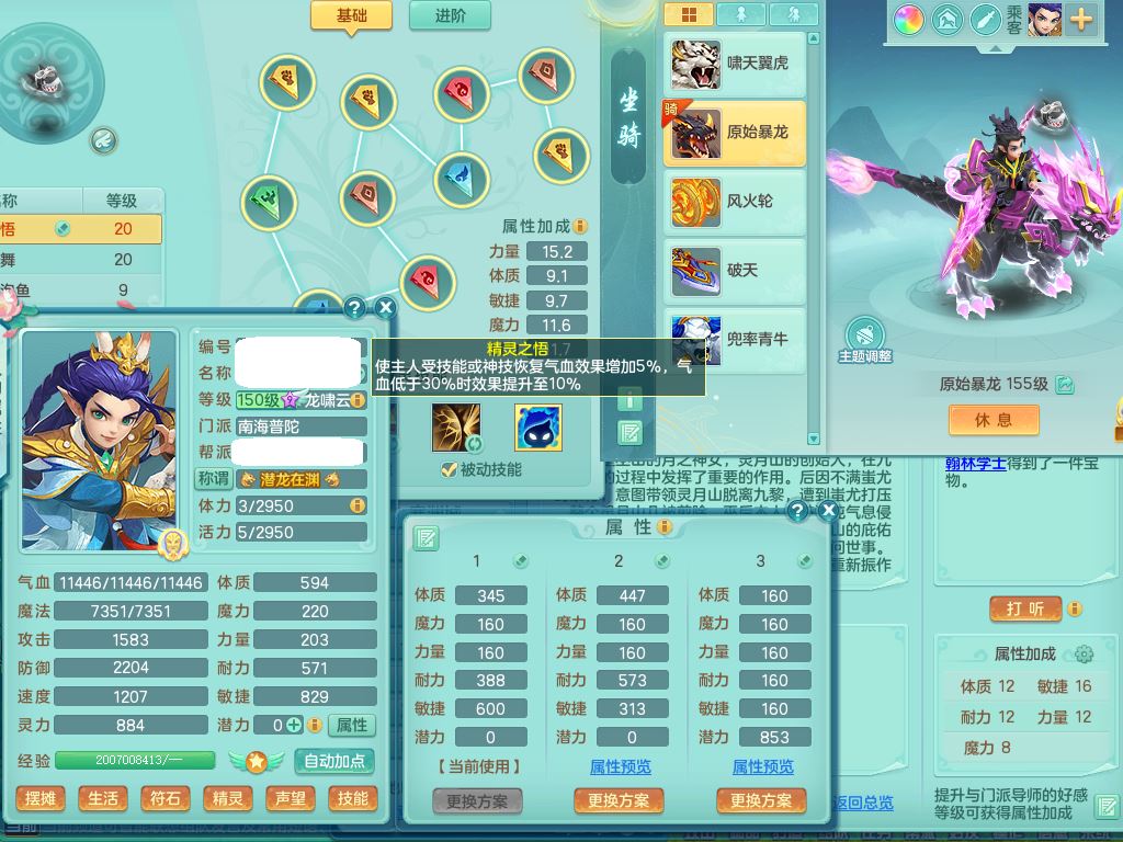 sr9888生日快乐159男普陀【潜龙号+暴龙洪荒】精灵悟+舞,1龙(换)2内(1青蛇)4特殊(灵傀/守护/兽决烈焰/雷厉)5镜花灵2龙姬,16只满果子9觉醒7个纯6字,9红愤怒6特,Y四海衣服,愤怒驭兽腰带,Y绝幻鞋,鼎6.0+70+280,21天月卡,庭院154房屋154,永久外观精灵皮肤,2只双人坐骑,带158女天策,904Y狂暴3红武器,单加愤怒双红腰带,单加以战鞋,双人坐骑