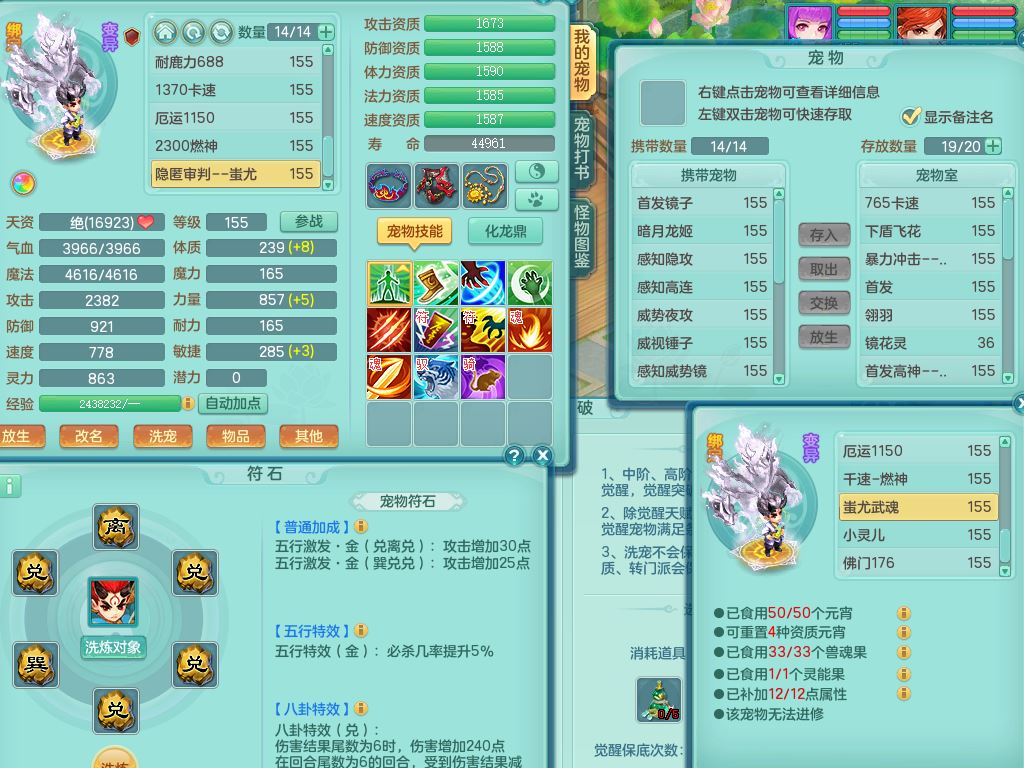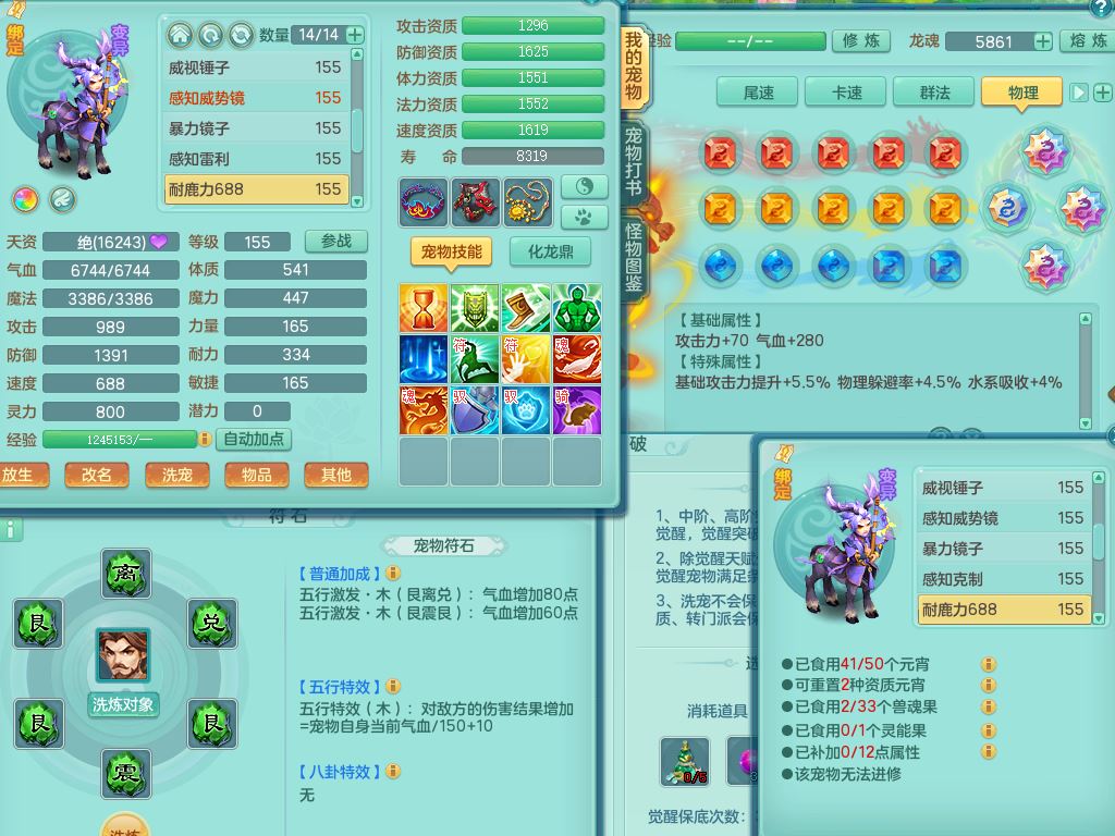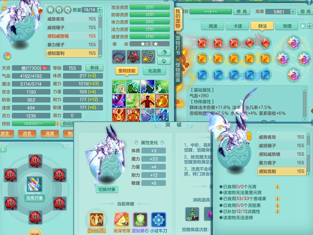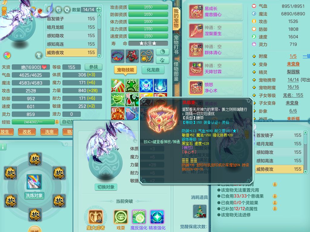 tx9897天下无双159男方寸【潜龙号】精灵舞,4龙1仙兽内丹1内1破境1皮,5特殊(号角/守护/飞花/兽决守护/飞花)13只满果子9觉醒7个纯6字,全身高单加,9红愤怒6特,Y绝幻头,愤怒双红腰带,Y罗汉鞋,鼎5.5+70+280,永久头饰精灵皮肤,71仙兽灵,41内丹碎片,宠排在榜,双人坐骑