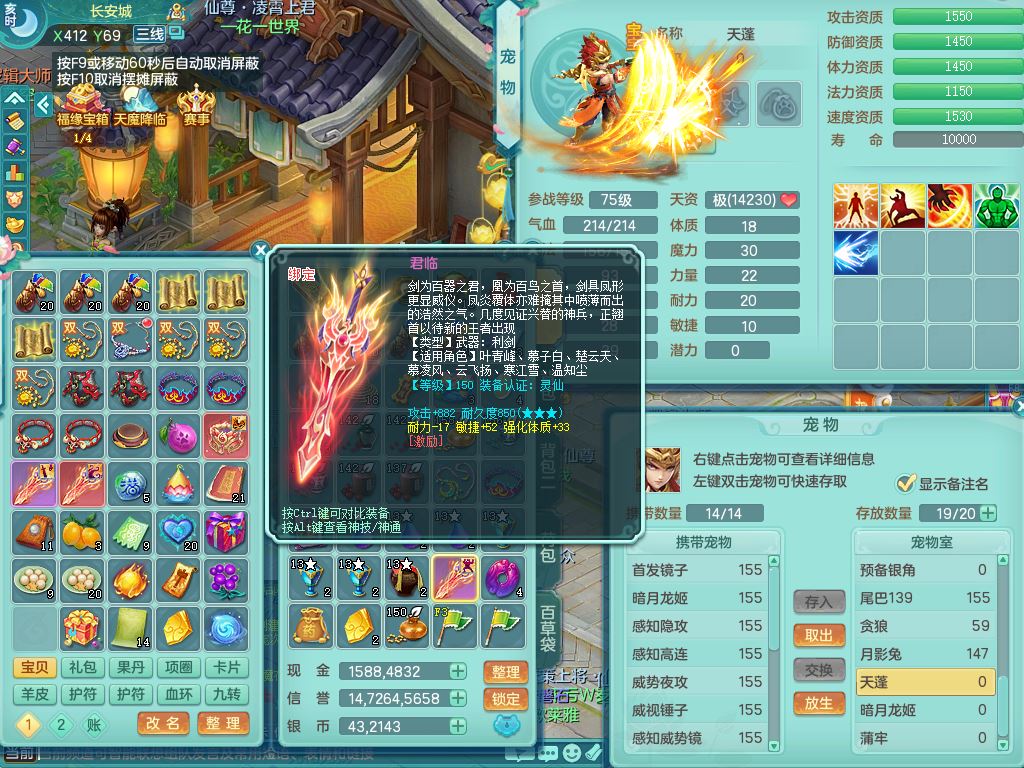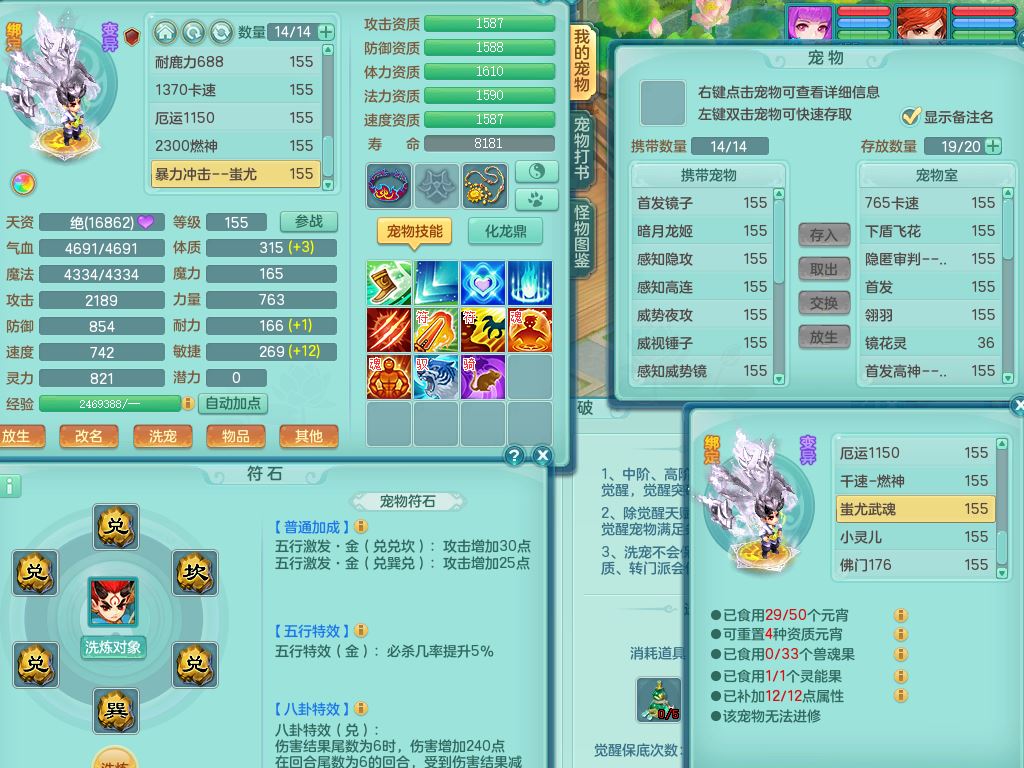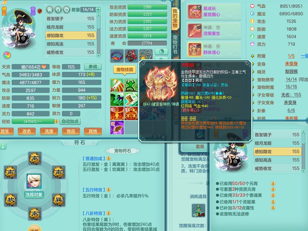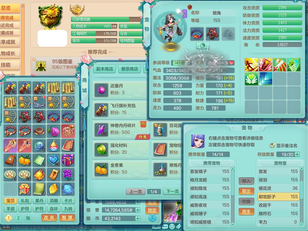 tx9897天下无双159男方寸【潜龙号】精灵舞,4龙1仙兽内丹1内1破境1皮,5特殊(号角/守护/飞花/兽决守护/飞花)13只满果子9觉醒7个纯6字,全身高单加,9红愤怒6特,Y绝幻头,愤怒双红腰带,Y罗汉鞋,鼎5.5+70+280,永久头饰精灵皮肤,71仙兽灵,41内丹碎片,宠排在榜,双人坐骑