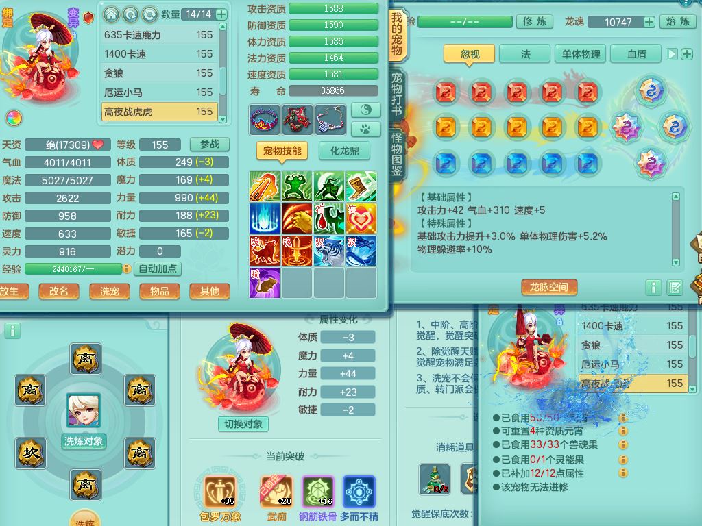 zw9893战无不胜159女地府精灵舞,满级共鸣,1龙(换,无内)3内(1龙马)3特殊(虎虎/双星/藕断兽决)3镜花灵1龙姬,18只满果子4觉醒6个5字(1洗练珠)1个6字,7红愤怒6特,愤怒水清腰带,鼎4.5+70+280,60天月卡,房屋151,永久外观精灵皮肤,29内丹碎片,宠排在榜,飞行双人坐骑