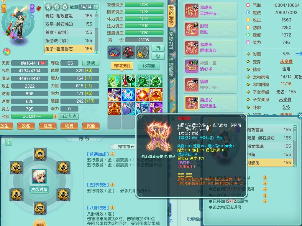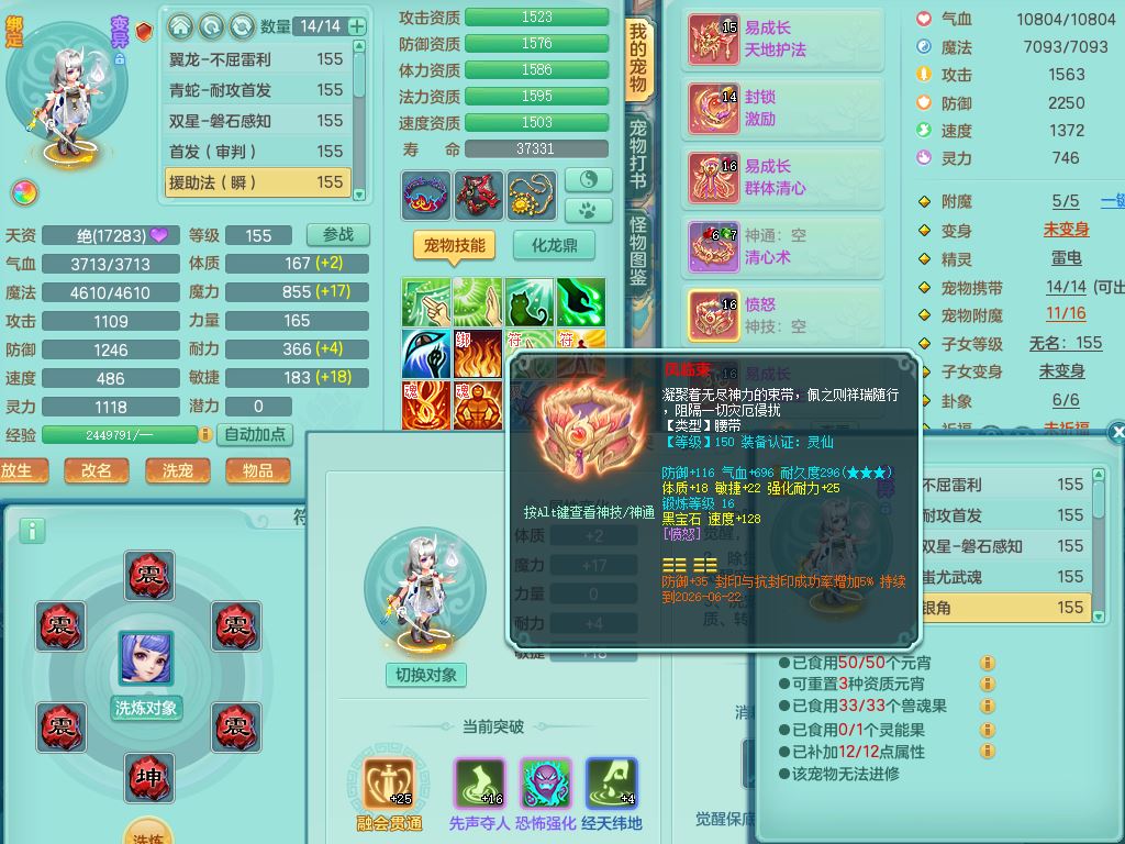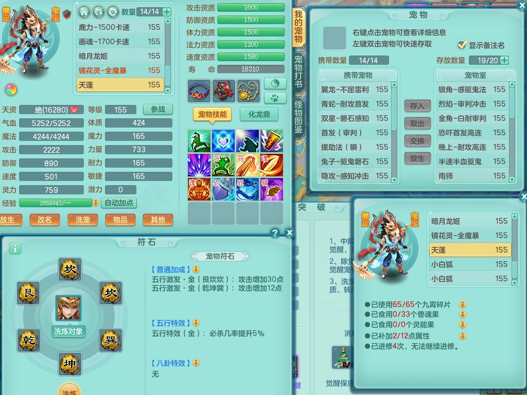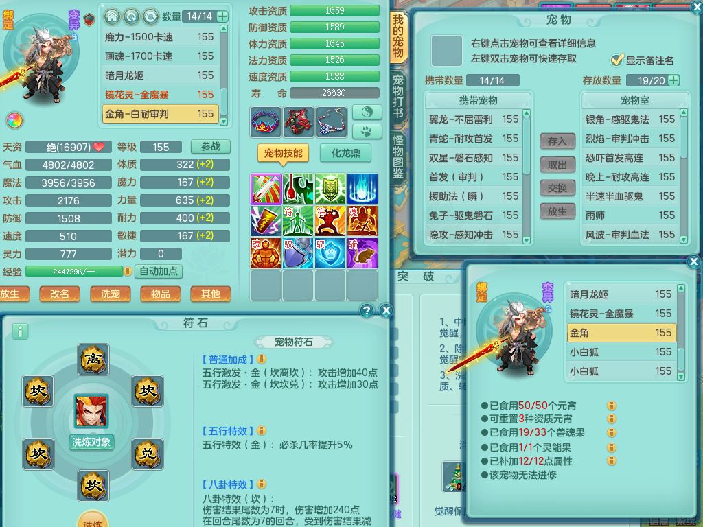 xa9903笑傲江湖159女方寸精灵舞,满级共鸣,1龙(换)1内丹青蛇,3特殊(双星/烈焰/流星兽决)1镜花灵1龙姬,13只满果子6觉醒,9个4字6个5字2个6字,10红愤怒5特,Y罗汉头,封锁野兽武器,Y玉清衣服,Y慈航鞋,物理930Y双红武器,单加崩山衣服,神佑项链,鼎5.5+70+280,3套符石,26内丹碎片,逐星坐骑