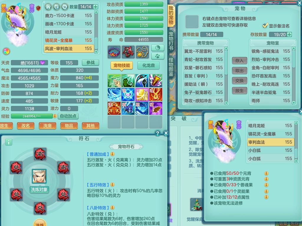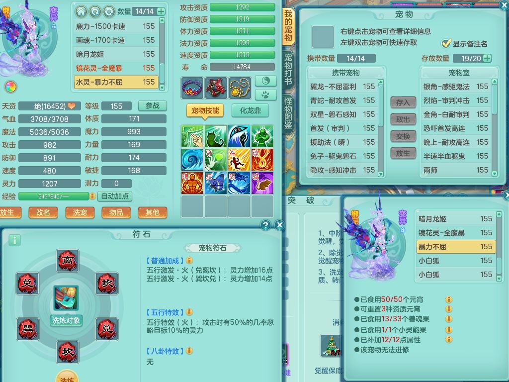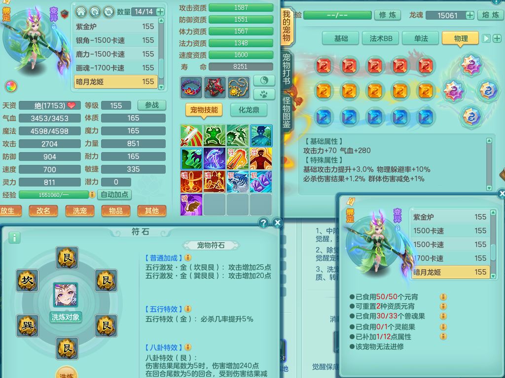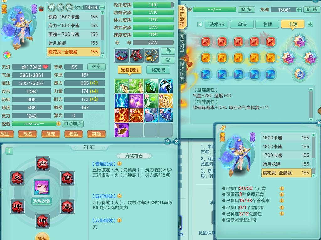 xa9903笑傲江湖159女方寸精灵舞,满级共鸣,1龙(换)1内丹青蛇,3特殊(双星/烈焰/流星兽决)1镜花灵1龙姬,13只满果子6觉醒,9个4字6个5字2个6字,10红愤怒5特,Y罗汉头,封锁野兽武器,Y玉清衣服,Y慈航鞋,物理930Y双红武器,单加崩山衣服,神佑项链,鼎5.5+70+280,3套符石,26内丹碎片,逐星坐骑