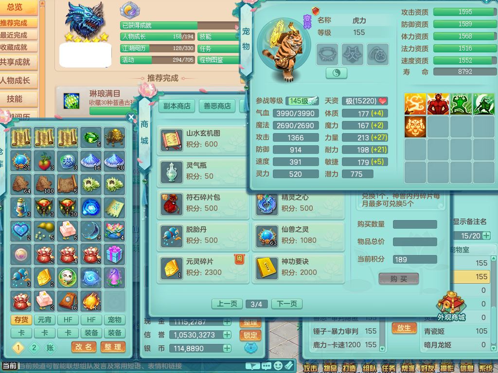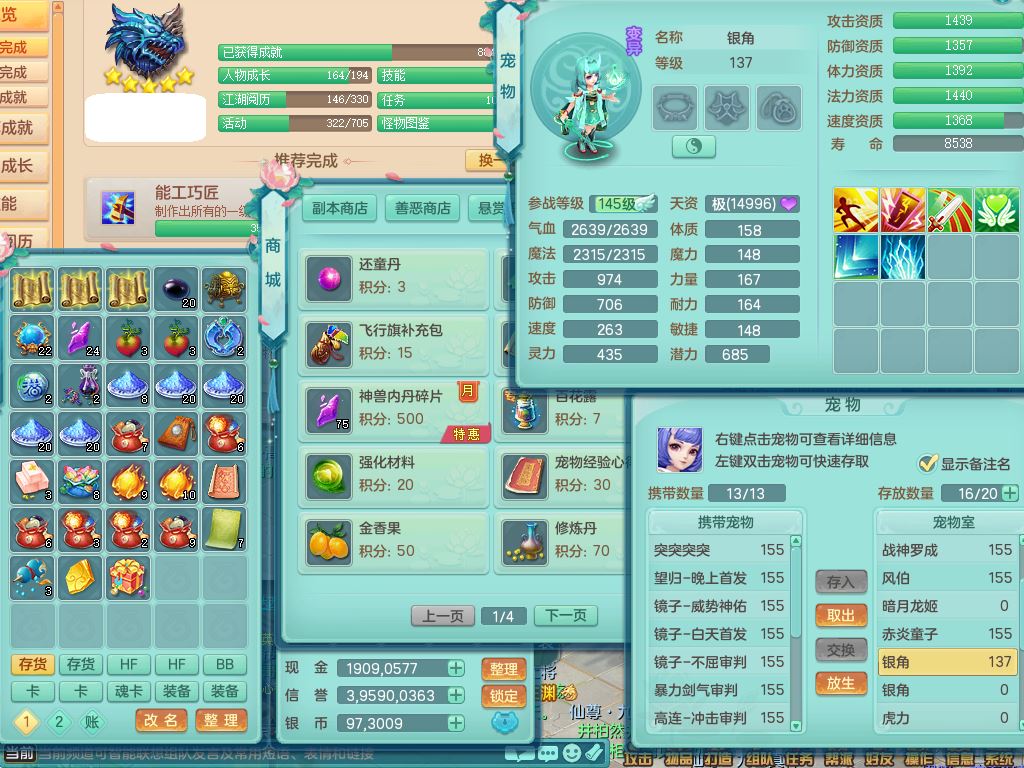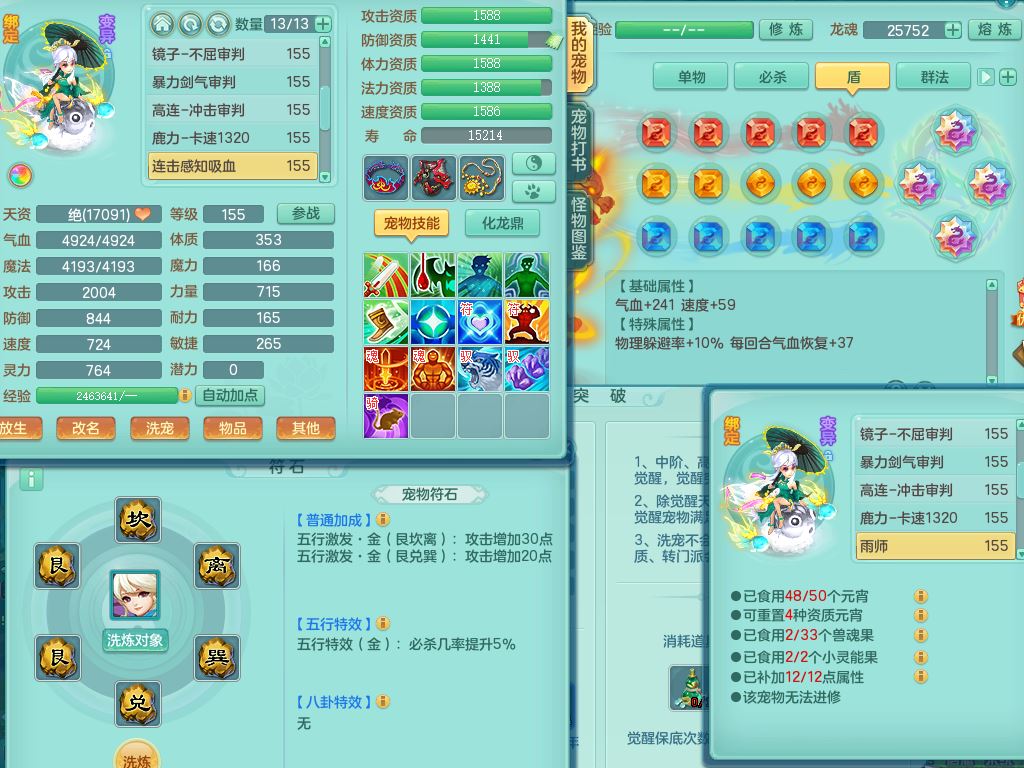 cy9909彩云追月159三开号,盘丝精灵舞,2内丹神4特殊(飞花/兽决剑胆/青霜/琴音)2镜花灵,8红,愤怒笑里腰带,单加迅捷Y鞋,9只满果子5觉醒3个纯6字,鼎5.5,3套符石,永久头饰精灵皮肤,66仙兽灵,2坐骑(1双人)万兽精灵歌,1内2特殊(灵傀/号角)4镜花灵,7只满果子6觉醒3个纯6字,923单加狂暴四海武器,崩山衣服,鼎6.0+70,22仙兽灵24内丹碎片,1433金币,飞行烛龙坐骑,灵月精灵歌,1神兽内丹,3特殊(善恶/上善/烈焰兽决)2镜花灵1龙姬,综合8只满果子6觉醒6个纯6字,愤怒5特,物理916单加狂暴武器,崩山衣服,单加愤怒破血腰带,鼎5.0+70,2306金币,双人坐骑