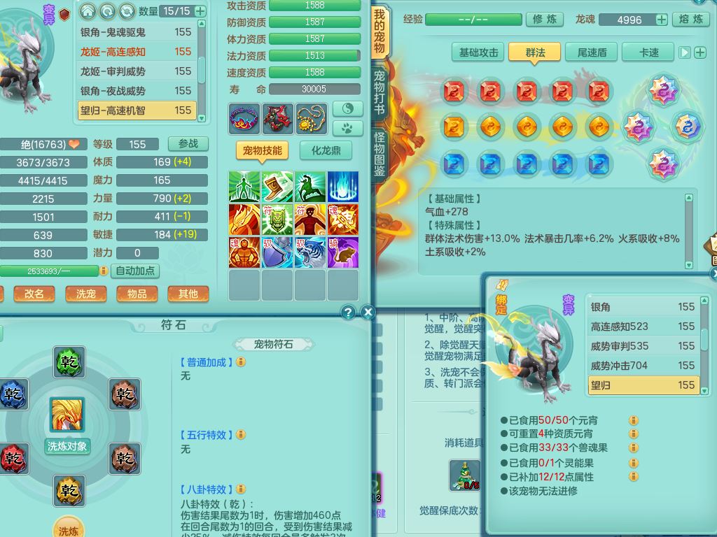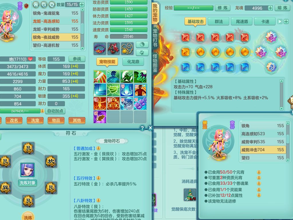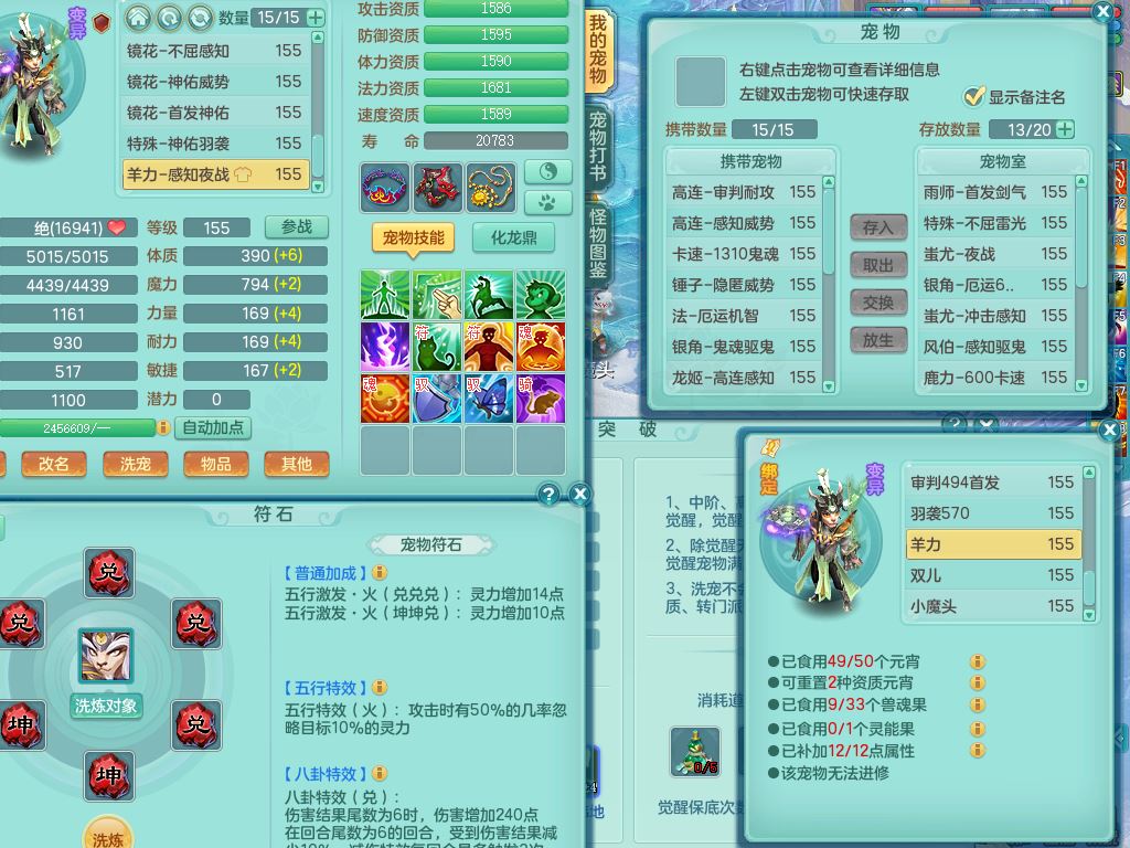jn9914今年勇159男万兽【神驹马到成功+火焰之力】精灵舞,4字靓号,3龙(换,无内)2内(1龙马)1皮2特殊(羽袭/雷光)3镜花灵3龙姬,综合20只满果子3觉醒5个纯6字,10红915单加Y必杀武器,Y流云头,崩山衣服,单加神佑水清项链,Y四海鞋,法系275单加Y项链,鼎5.5+70,160天月卡,冰晶庭院182,永久外观精灵皮肤,24内丹碎片,宠排在榜,6坐骑(3只双人)