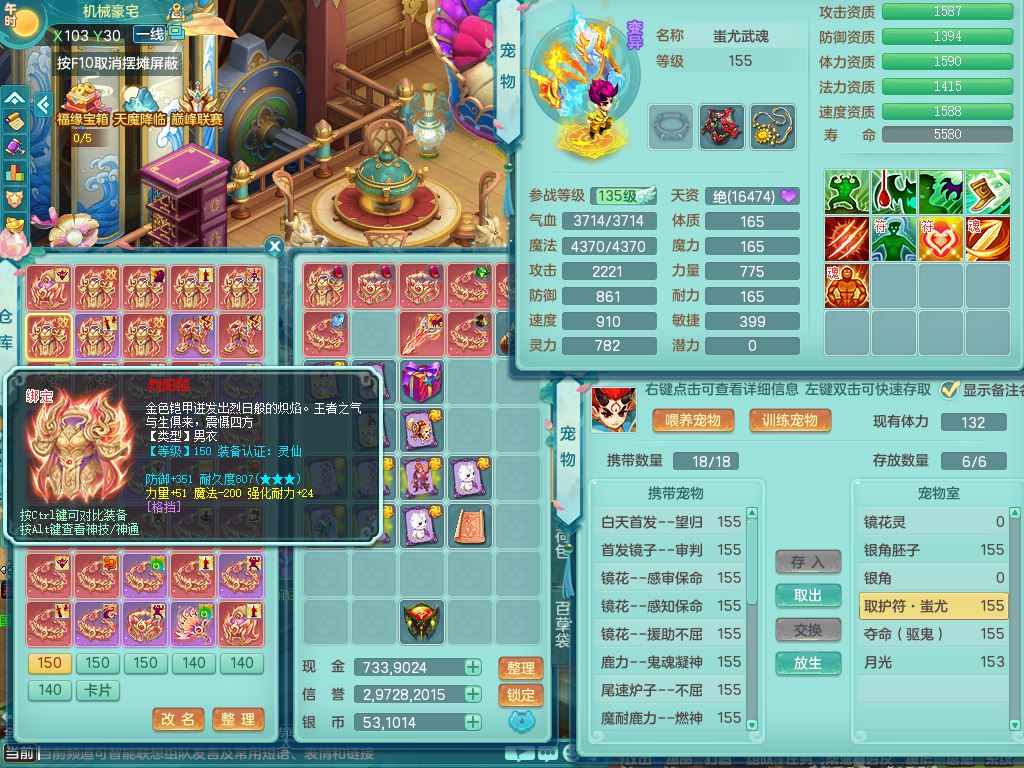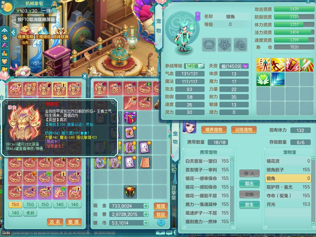 tx9919天下无双159男天策【潜龙号+6龙皮+神驹心想事成+暴龙泰坦+火焰之力、西瓜冰】精灵歌+舞,4字靓号,11龙(换)6龙皮2内2破境15宠皮(1幻灵果)7特殊(破碎/虎虎/雷厉/藕断/双星/夺命/以战兽决)4镜花灵2龙姬,18格子39只满果子26觉醒23个纯6字,10红,满攻单加狂暴武器,Y四海头,格挡崩山衣服,Y破血腰带,Y破甲鞋,辅助愤怒6特,鼎5.5+70+280,2套符石,冰晶庭院168,房屋165,永久外观精灵皮肤,120果子,66内丹碎片,1178金币,宠排在榜,10坐骑(5只双人)带多永久称谓
