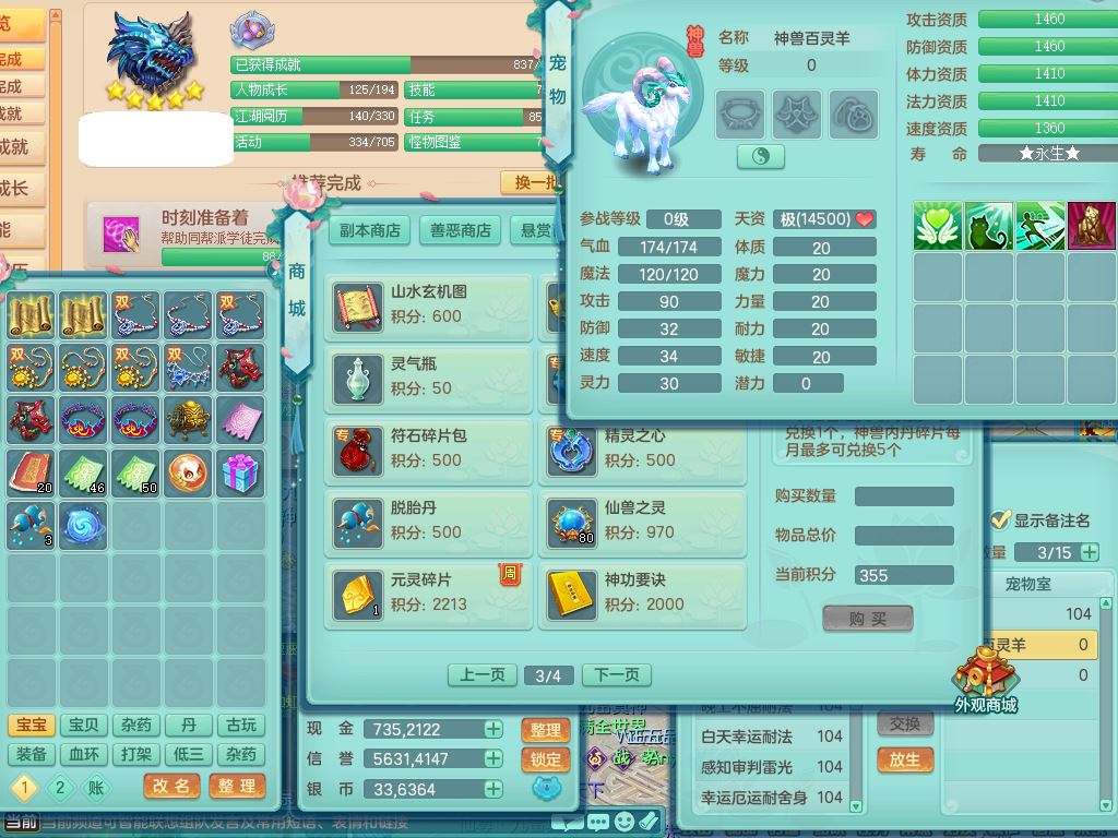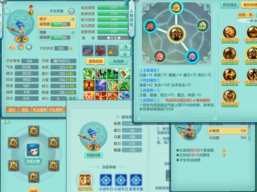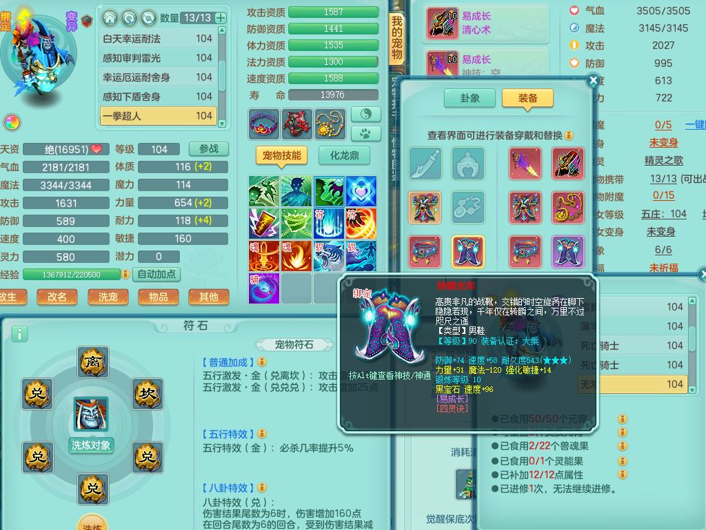 tx9923天下无双99男天策全力精灵,1内丹青蛇,9只满果子7觉醒2个5字2个6字,9红,549单加Y武器,单加Y水清头,Y守护衣服,愤怒群体安神腰带,崩山鞋,鼎2.5,50内丹碎片