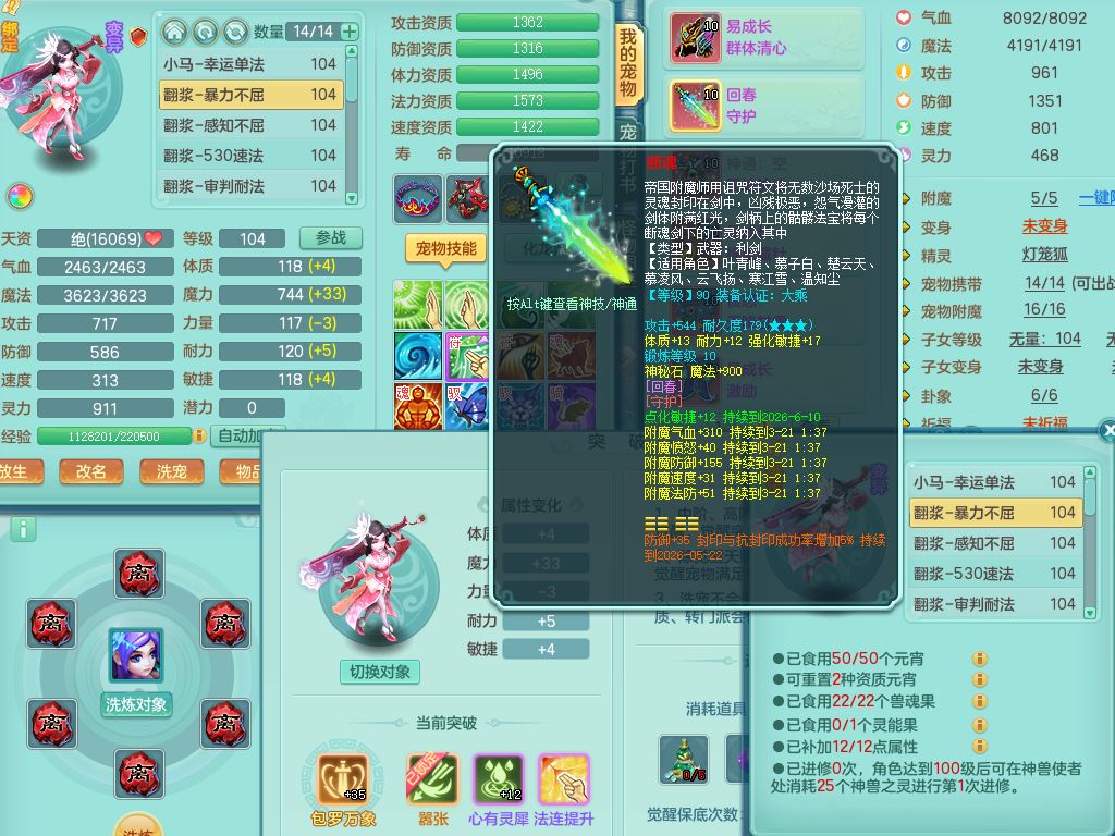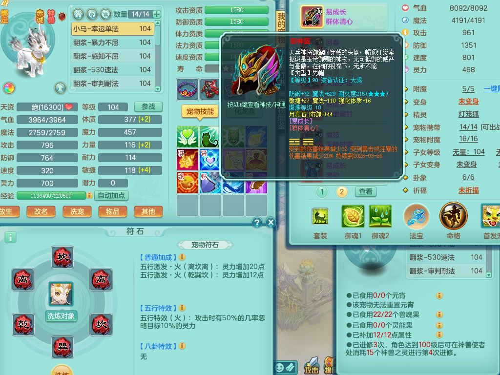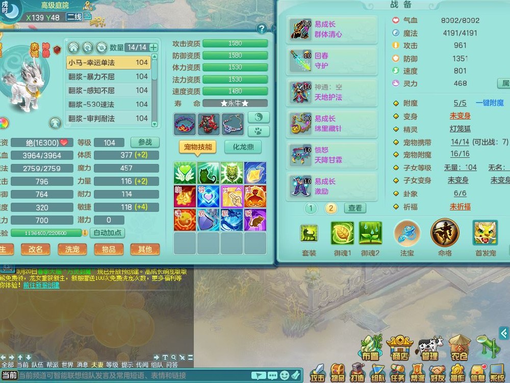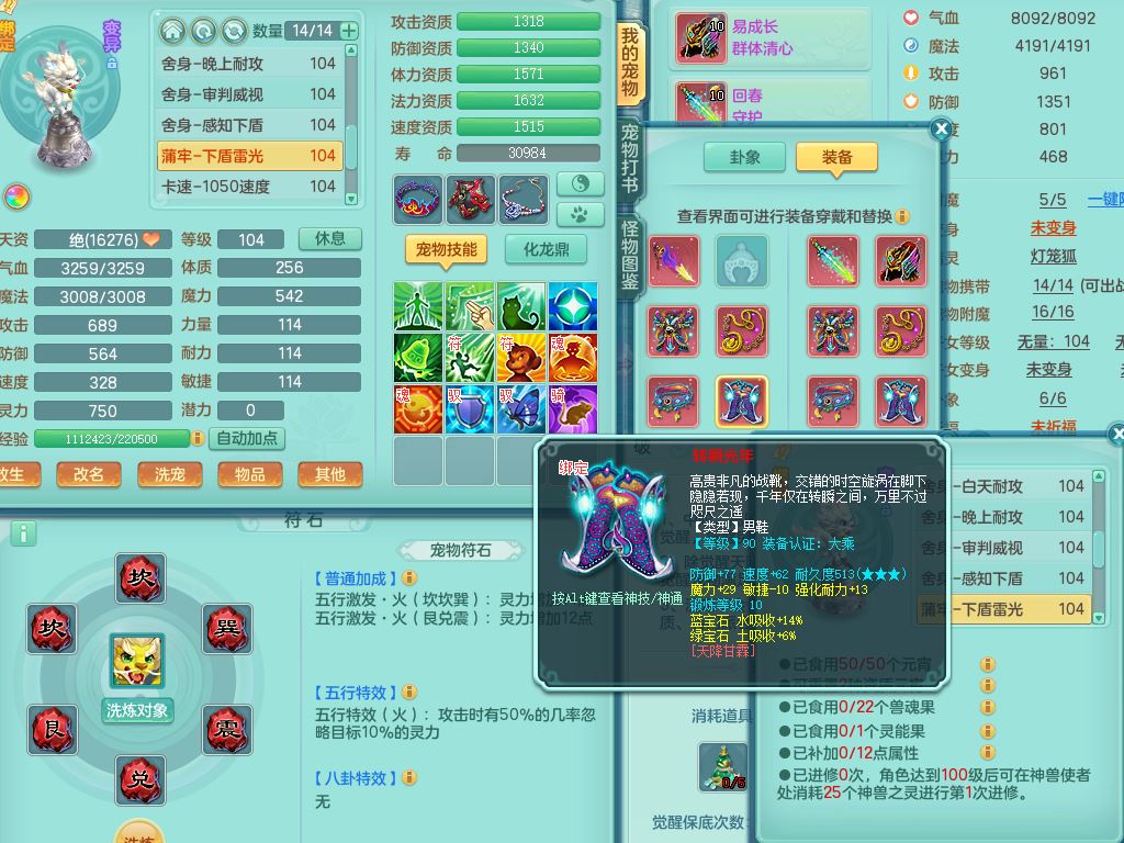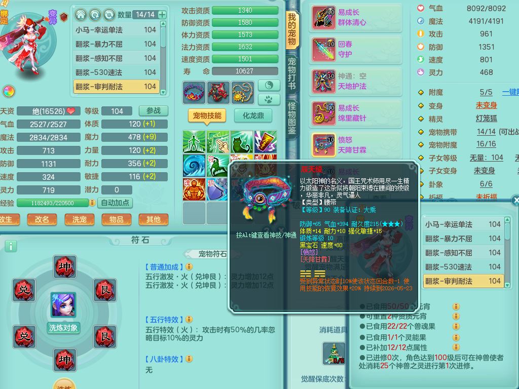 tx9926天下无双99男普陀【潜龙只差5只宝宝,2条附加+火焰之力】双系精灵,4字靓号,1内丹龙马,14只满果子4觉醒2个纯6字,11红,愤怒6特,Y玉清头,回春守护武器,Y笑里项链,愤怒四海腰带,Y野兽鞋,法系单加法爆武器,单加Y烽火衣服,162Y项链,鼎2.5+42+168,2套符石,59天月卡,冰晶庭院157房屋151,永久外观精灵皮肤,12仙兽灵,40内丹碎片,2只双人坐骑
