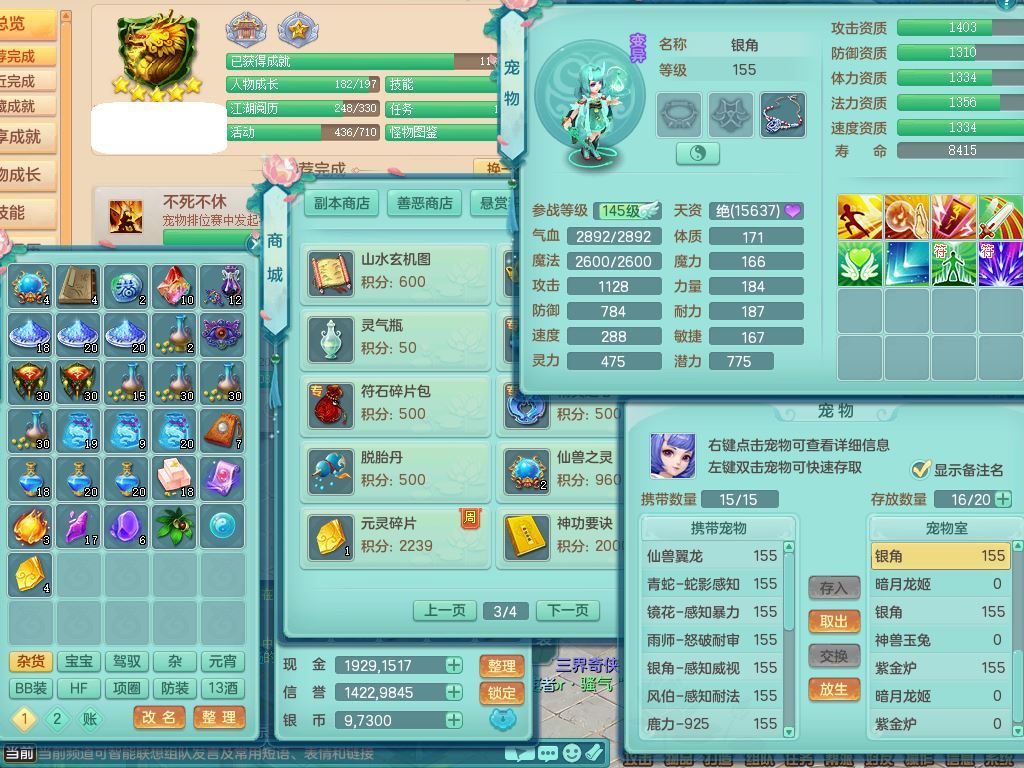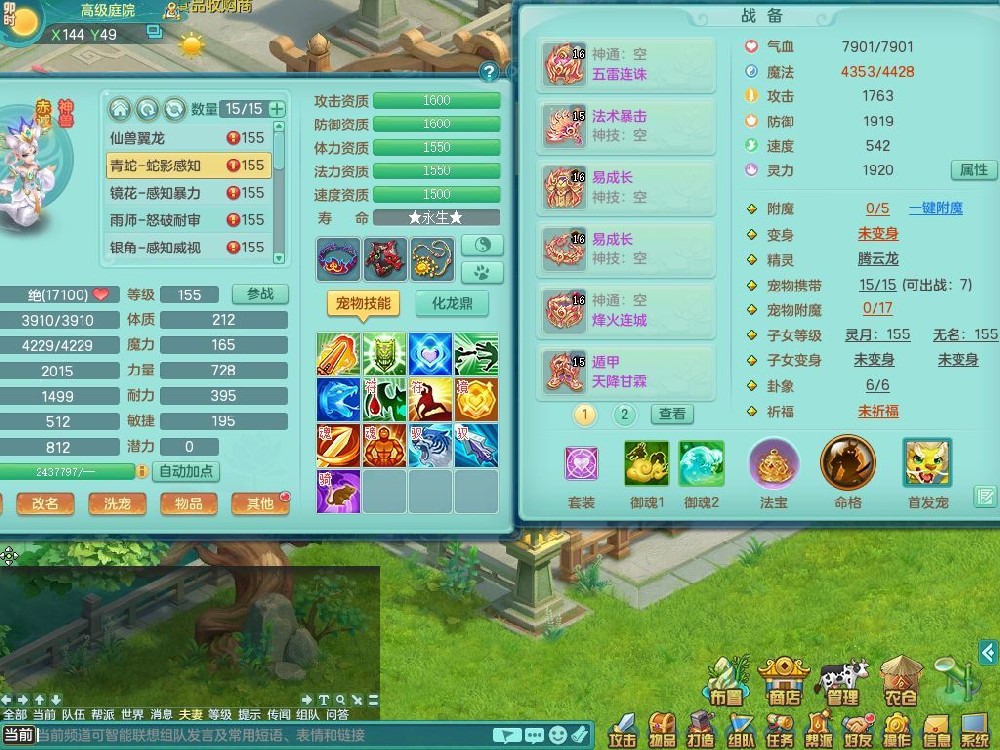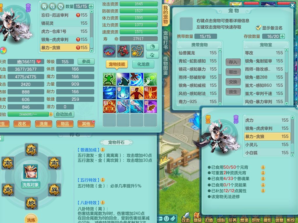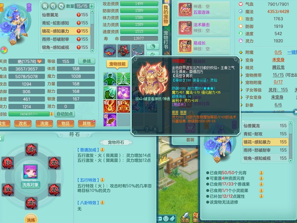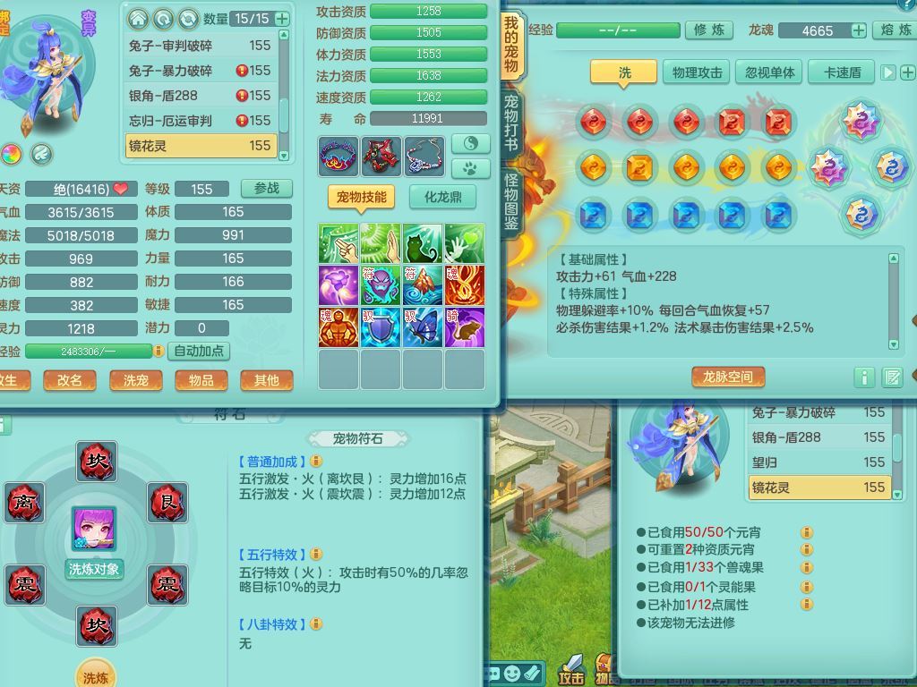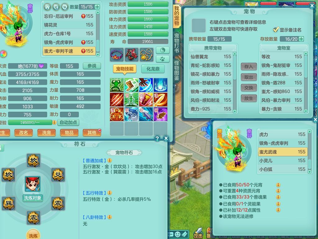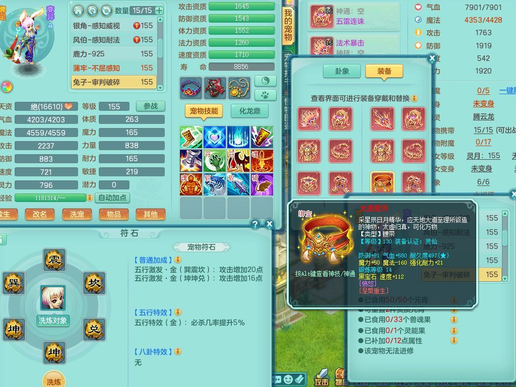 jt9934九天揽月159男龙宫精灵歌,满级共鸣,1龙(换,无内)1内丹青蛇(破镜)3特殊(怒破/藕断/虎虎)11只满果子10个4字,单加法爆武器,五雷头,单加Y衣服,268Y项链,封系封锁武器,单加愤怒慈航腰带,封印头,迅捷罗汉鞋,鼎4.0,2套符石,23天月卡,永久头饰精灵皮肤