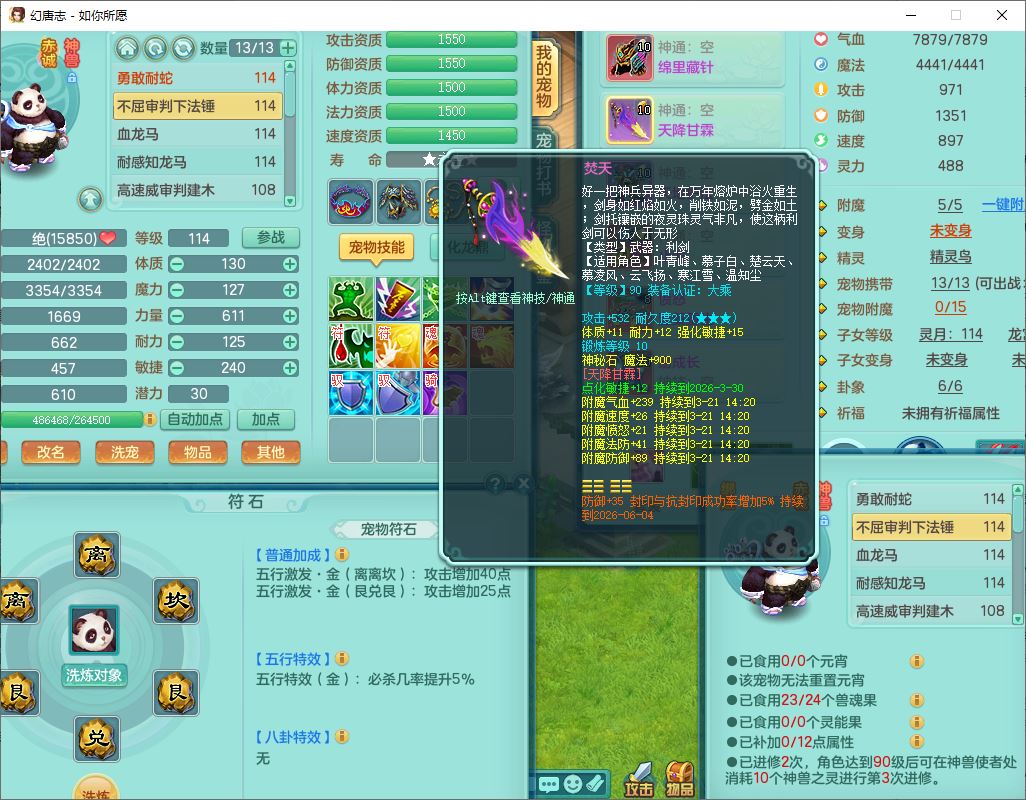 rn9947如你所愿109男方寸【心想事成+暴龙泰坦+火焰之力+西瓜冰+流光翎】20级小精灵,8位靓号,4神兽(2无内,2龙马1蛇影)1建木2翻江1舍身2金炉1童子,2孩子(灵月+龙宫),7红装备,愤怒慈航腰带,157天月卡,永久外观、精灵皮肤,201W神武币,16个内丹碎片,129个兽魂果,7个幻彩花1大灵能果,1375金币,宠排在榜,1星梦鲲灵坐骑,邮箱可给战盟可换