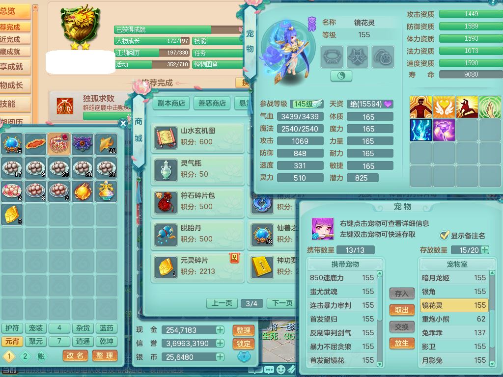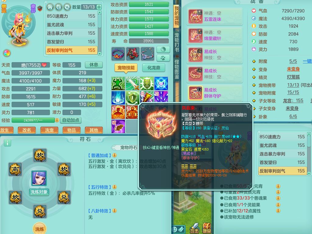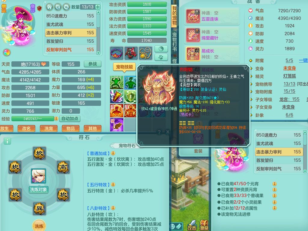 tx9929天下无双159男魔王精灵盾,满级共鸣,1内丹神,2镜花灵(1胚子)1龙姬,6只满果子6个4字1个5字,单加五雷头,单加Y衣服,满灵Y项链,单加Y双红腰带,鼎4.5+70,145天月卡,29内丹碎片