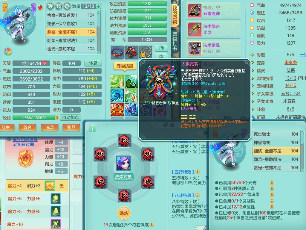 jn9972今年勇99男龙宫【武器皮肤西瓜冰】双系精灵,8字靓号,1内丹青蛇1皮,17只满果子8觉醒3个纯6字,双法缭,单加五雷头,单加法爆止戈武器,163单加Y项链,物理星辰之拥,单加破甲破血鞋,破甲头,Y必杀武器,鼎2.5+42+168,3套符石,92天月卡,永久外观精灵皮肤,炎宝坐骑