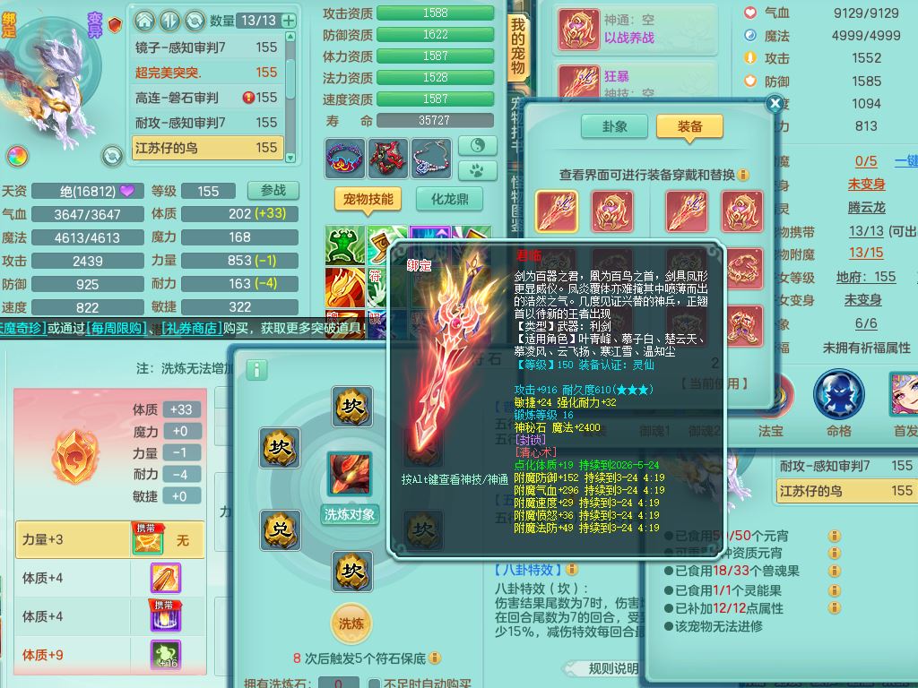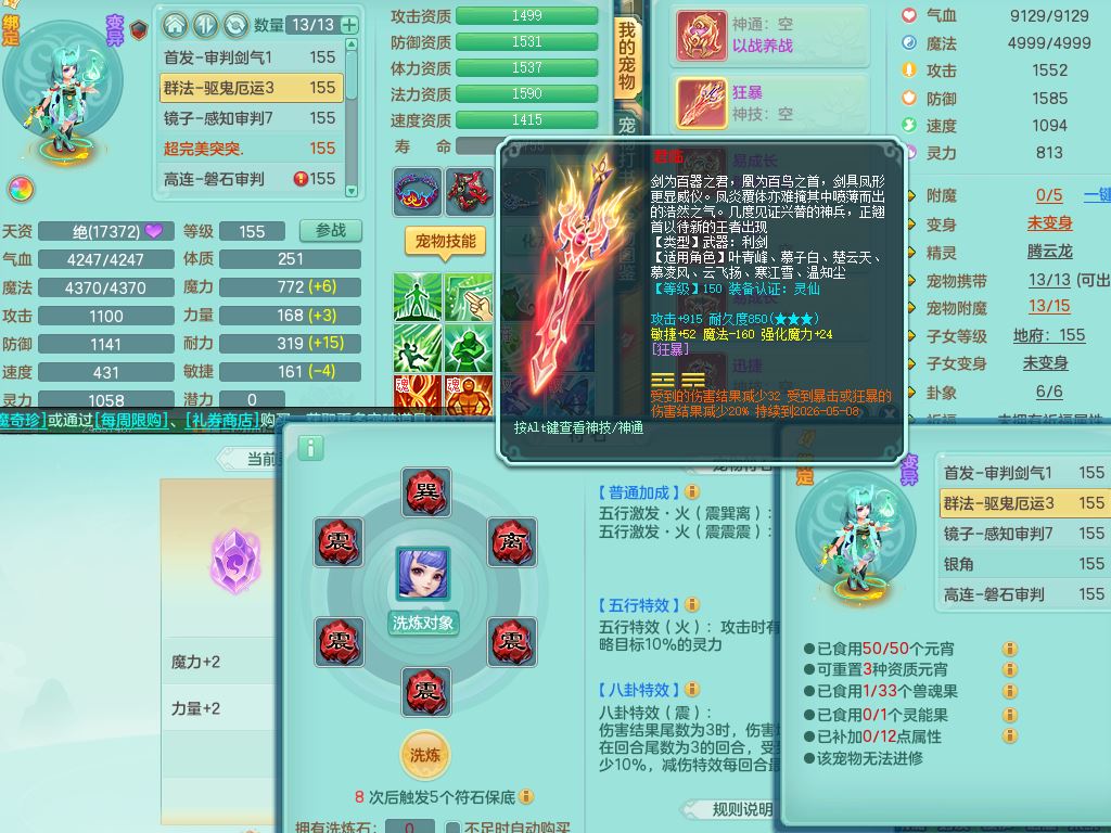 cf9976超凡入圣159男方寸精灵舞,满级共鸣,1内丹神3皮,4特殊(勇猛/墨守/破碎/虎虎)8只满果子3觉醒6个4字3个5字,915单加狂暴武器,单加以战头,单加迅捷鞋,封辅愤怒6特,鼎5.5,68仙兽之灵,飞行双人坐骑