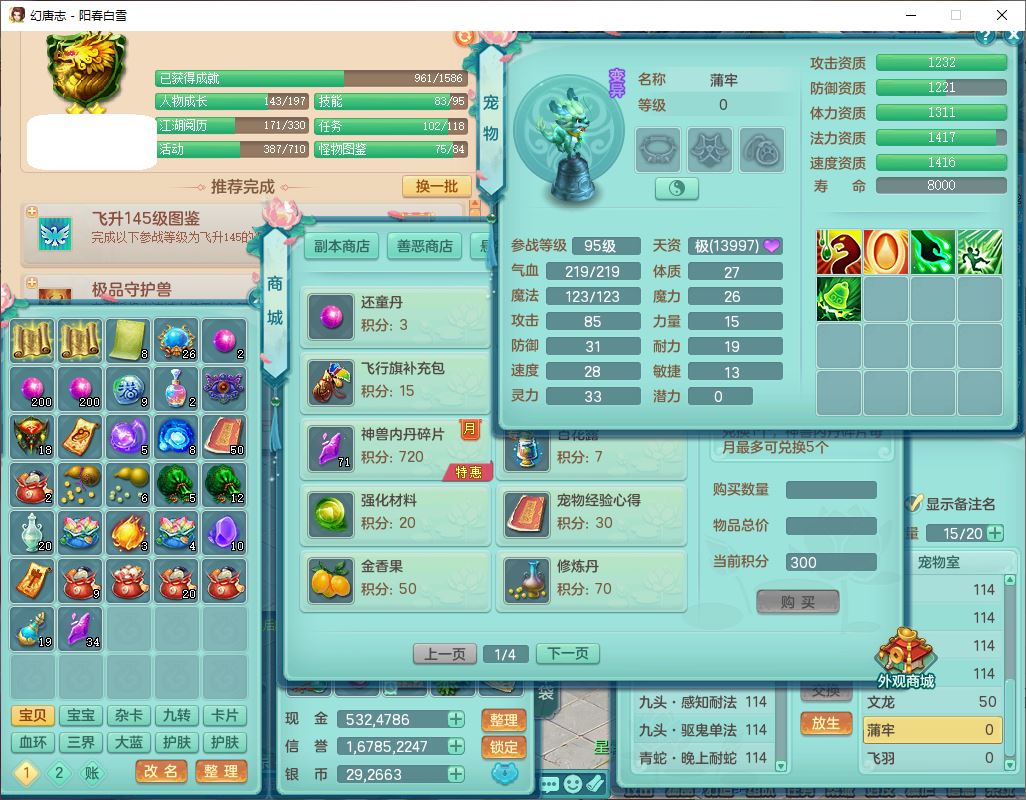 yc9988阳春白雪109男龙宫精灵歌,8位靓号,2内(1龙马1青蛇)3九头8老虎1羽袭1金炉1飞羽胚子,综合11只满果子,9红装备,五雷帽子,法爆武器,Y四海衣服,172Y慈航项链,幸运烽火腰带,法缭鞋子,有辅助装,愤怒明镜腰带,鼎2.5+42,2套符石,26个仙兽灵,34个内丹碎片,1双人飞行坐骑