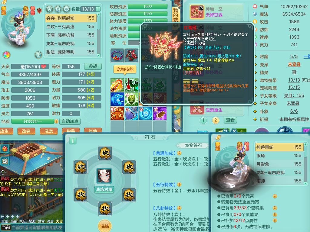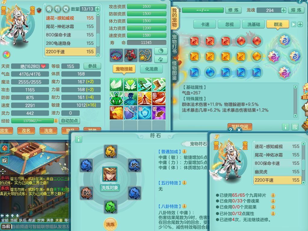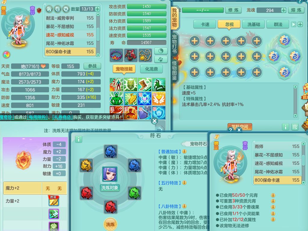 zz9990壮志凌云159女方寸精灵舞,满级共鸣,1内丹青蛇1皮,综合9只满果子7觉醒4个纯6字,3镜花灵1龙姬,全身单加,愤怒5特,Y慈航鞋,鼎4.5+70,19天月卡,20仙兽灵,33内丹碎片,飞行双人坐骑,带159万兽精灵舞,满级共鸣,鼎5.0,3特殊(舍身/流星/雷厉)5只满果子5觉醒