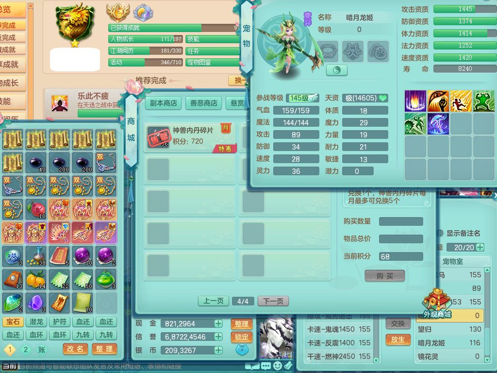 tx9998天下无双159男佛门【潜龙号+西瓜冰】精灵悟,3龙(换)3内丹青蛇1皮(幻灵果),5特殊(灵傀/双星/兽决号角/青霜/夺命)5镜花灵 ,24只满果子9觉醒8个纯6字,10红愤怒5特,Y野兽头,法爆玉清武器,幸运愤怒腰带,单加Y四海鞋,鼎5.5+70+280,141天月卡,永久头饰精灵皮肤,67内丹碎片,宠排在榜,飞行双人坐骑,带159万兽精灵歌,2内2特殊(风卷/以战兽决),鼎5.5,3镜花灵1龙姬