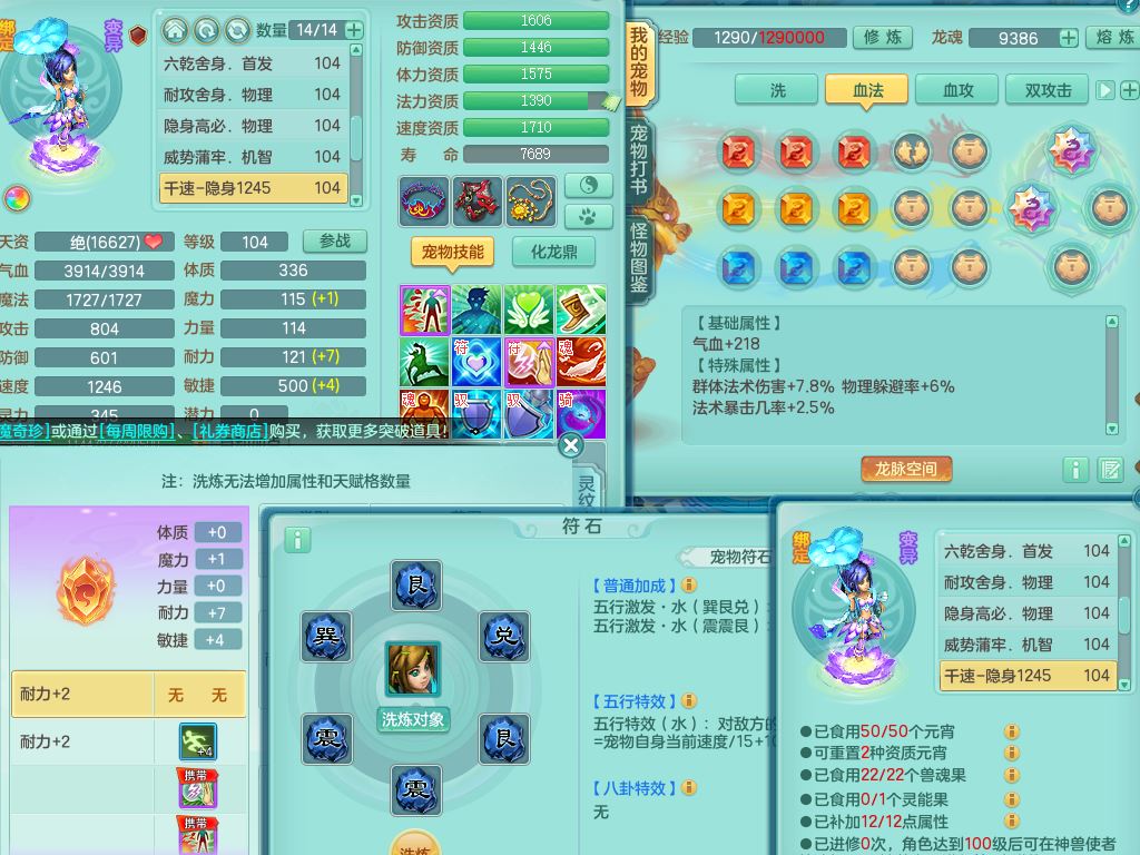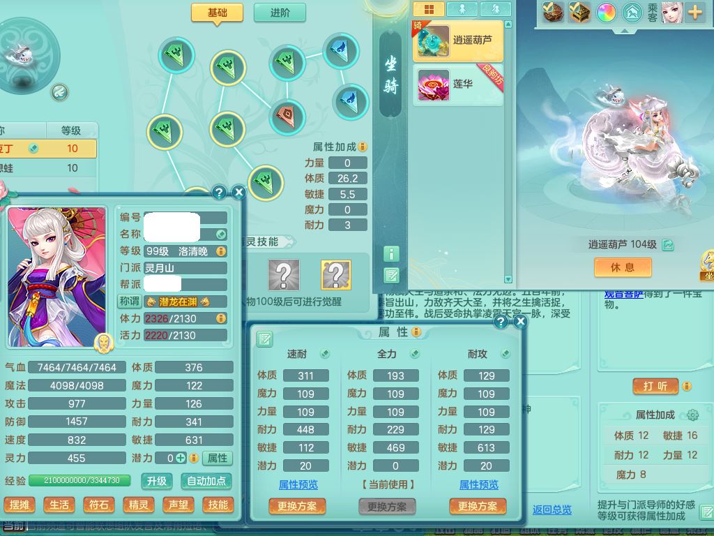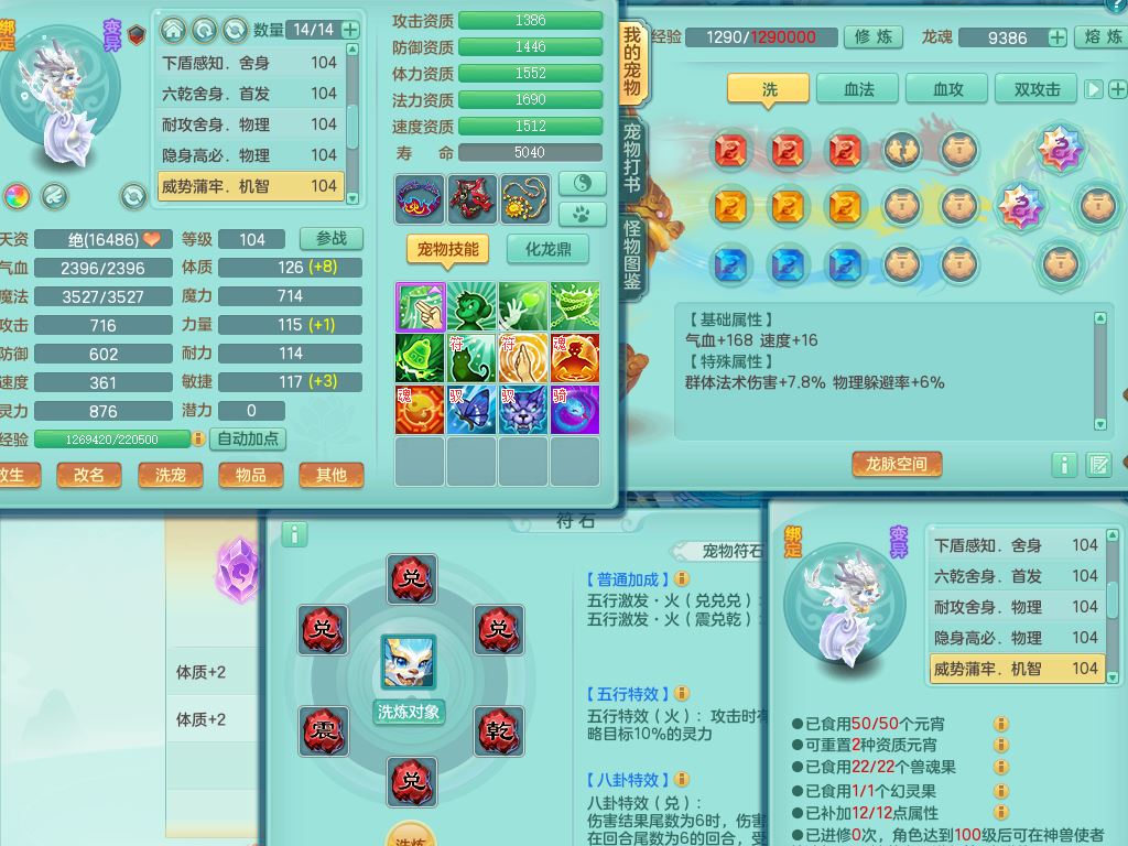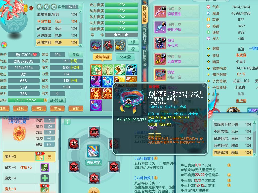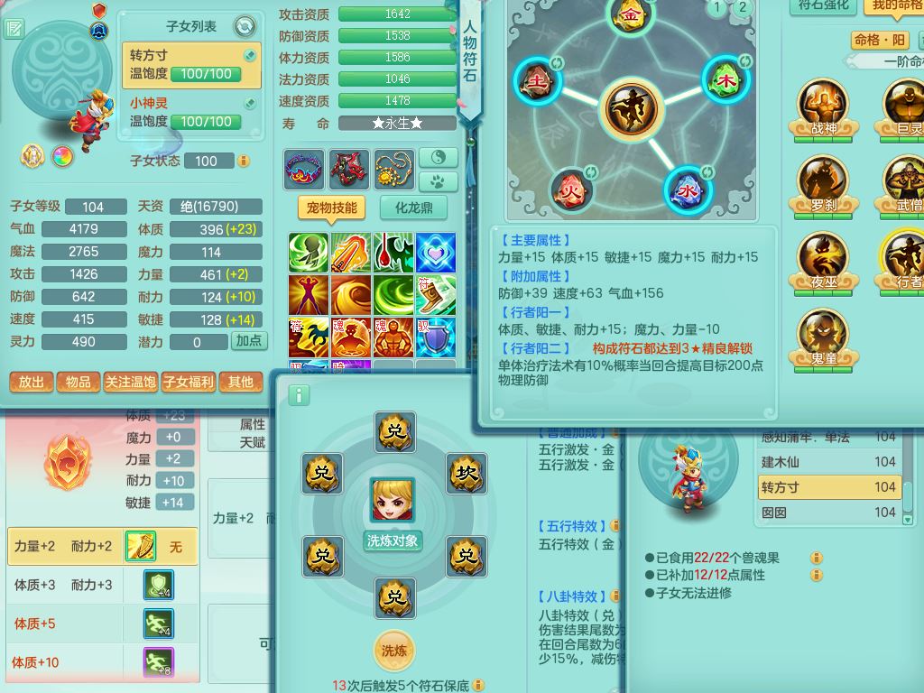 tx10010天下无双99女灵月【潜龙号+西瓜冰】双系精灵,1龙(换)1内1破境1皮,19只满果子13觉醒9个纯6字,8红愤怒5特,强壮双红衣服,单加Y玉清鞋,鼎2.5+42+168,2套符石,157天月卡,庭院187,永久外观精灵皮肤,37内丹碎片,宠排在榜,飞行双人坐骑