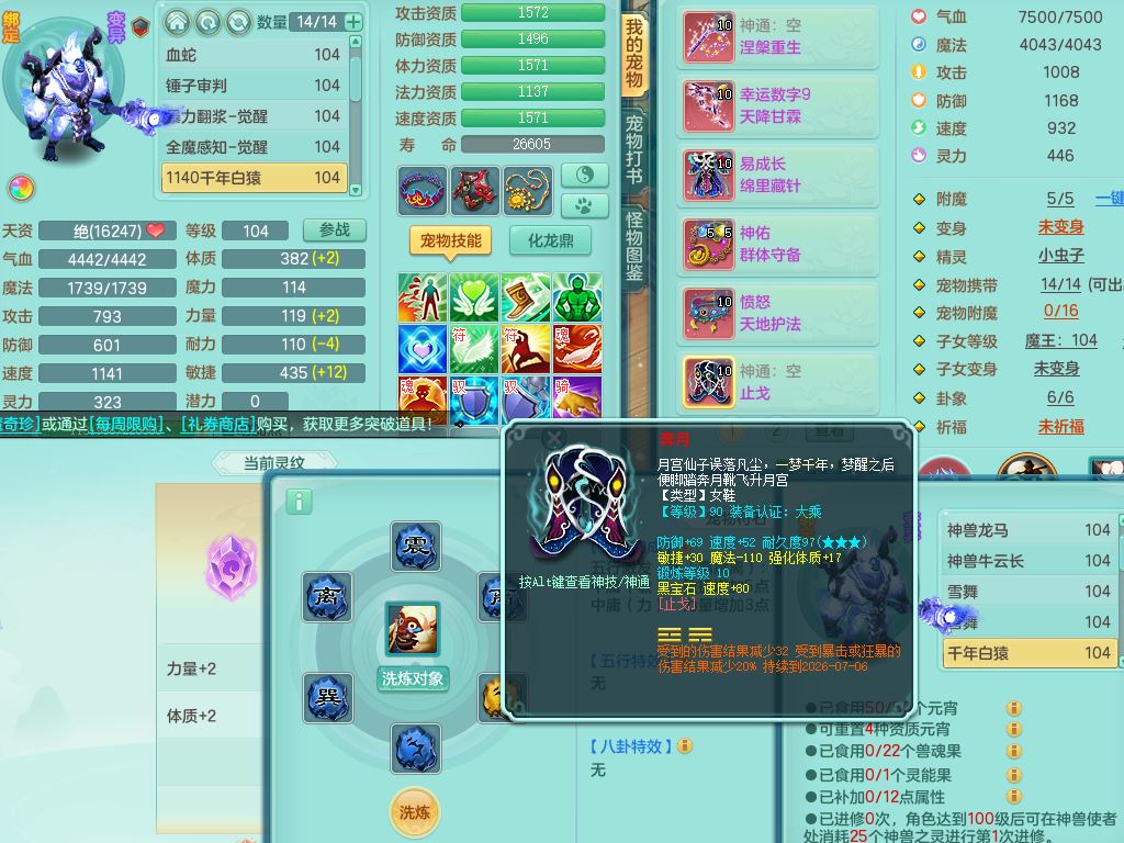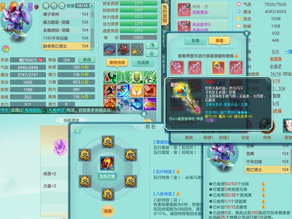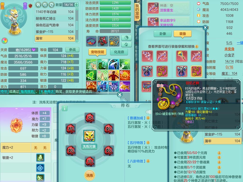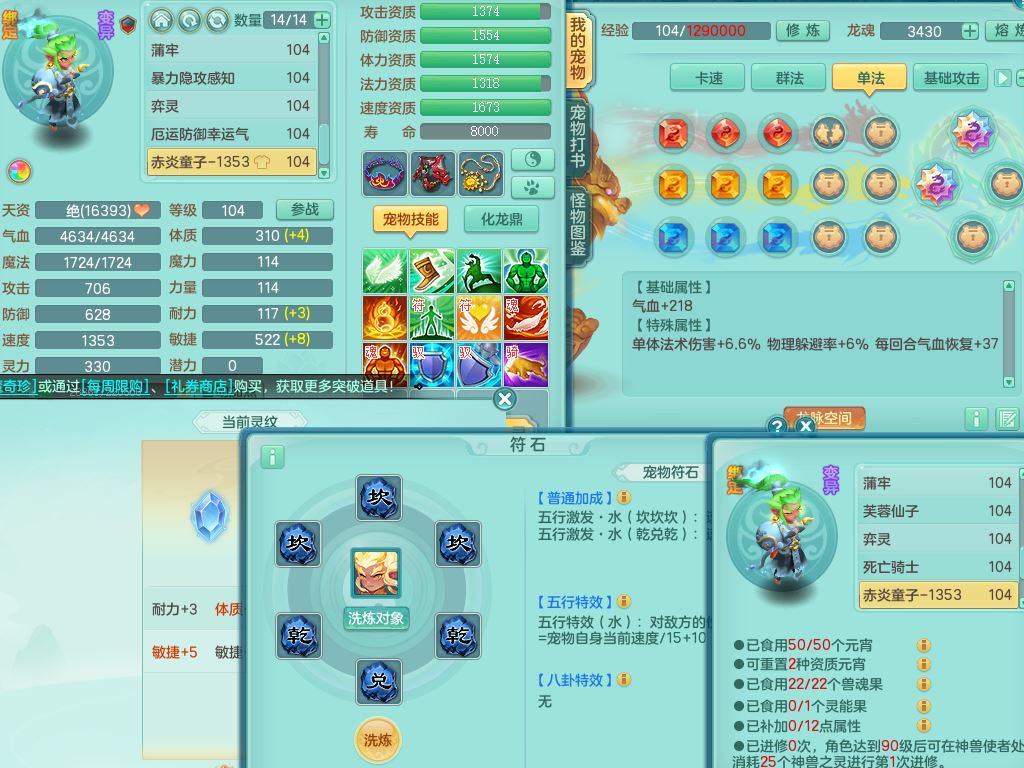 tx10011天下无双99女盘丝双系精灵,3内丹神(1青蛇1龙马)1破境,17只满果子5觉醒5个纯6字,10红愤怒6特,幸运四海武器,Y笑里衣服,神佑群体守备,愤怒罗汉腰带,物理551单加狂暴武器,崩山衣服,Y破血头,破甲鞋,鼎3.0+42+168,2套符石,31天月卡,庭院154房屋191,永久外观精灵皮肤,45内丹碎片,飞行双人坐骑