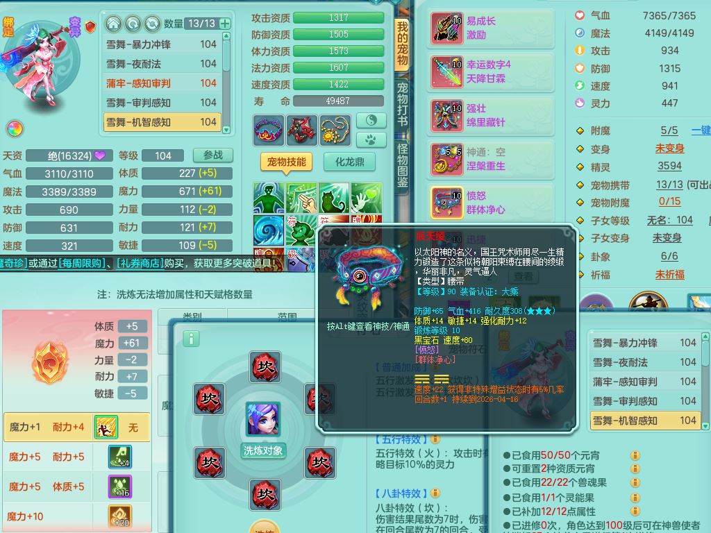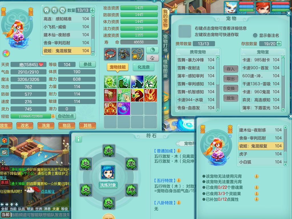 tx10023天下无双99男方寸【潜龙号】体敏精灵,1内丹青蛇1皮,22只满果子13觉醒13个纯6字,11红愤怒6特,Y野兽头,幸运四海武器,强壮笑里衣服,愤怒晶清腰带,迅捷流云鞋,鼎2.5+42+168,3套符石,62天月卡,庭院170房屋174,永久头饰精灵皮肤,71仙兽灵,24内丹碎片,宠排在榜,双人坐骑