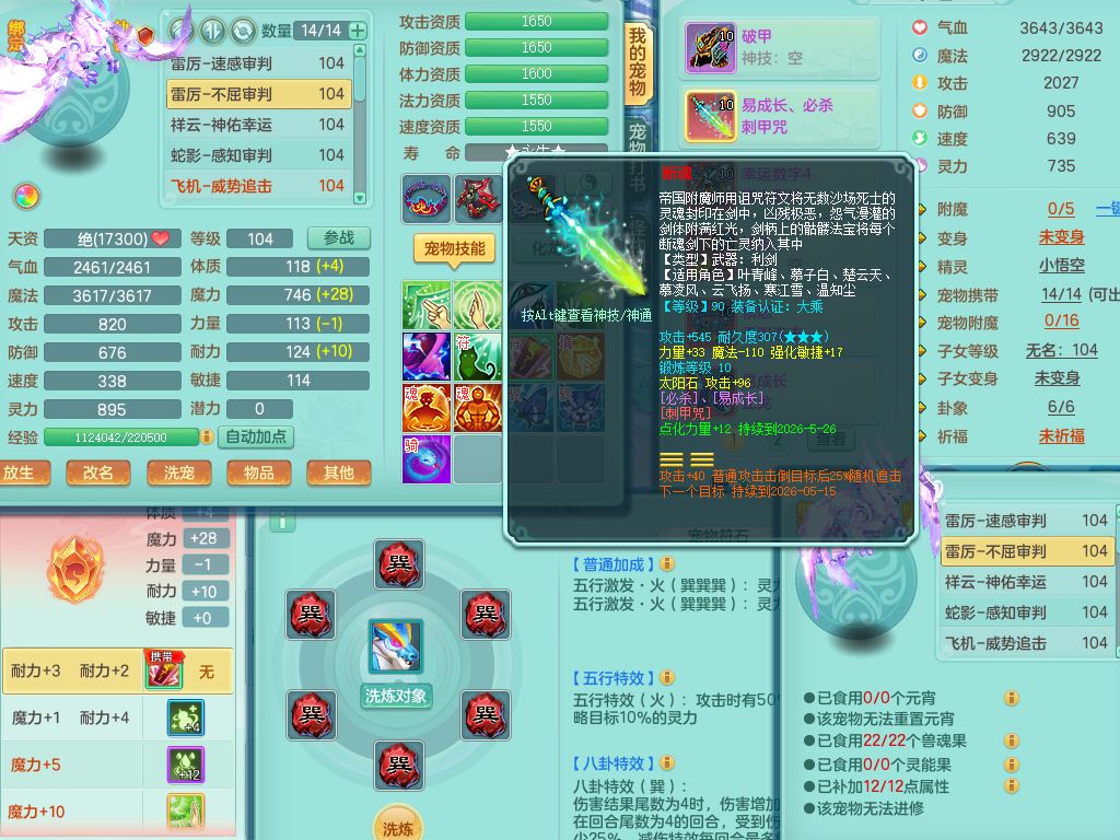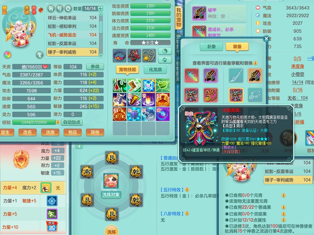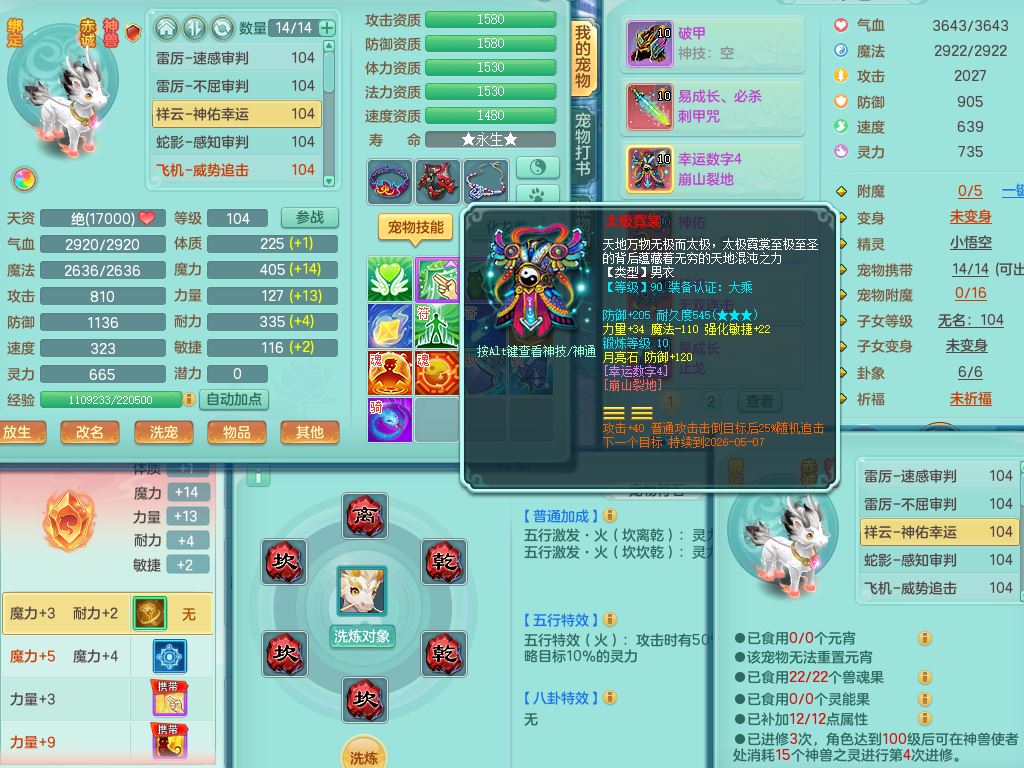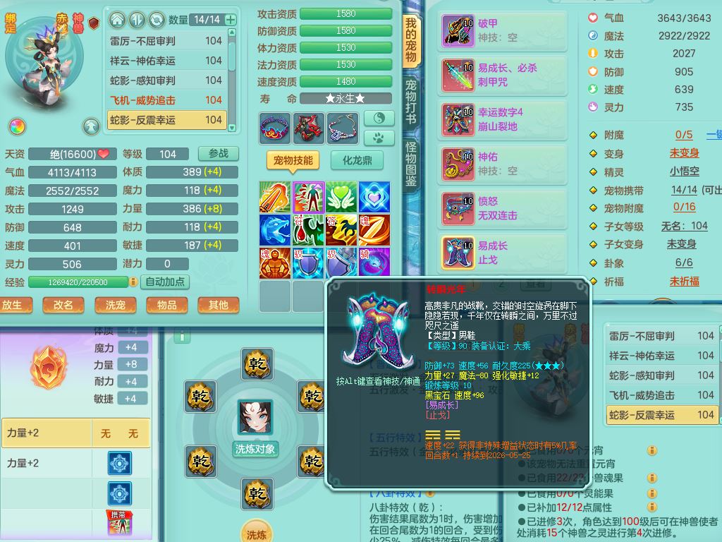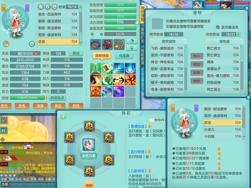qq10024七窍玲珑99男天宫【潜龙号+暴龙泰坦+神驹心想事成+西瓜冰】双系精灵,3龙(换)4内(2青蛇1龙马)4破境1皮,24只满果子12觉醒8个纯6字,11红全身单加,破甲头,545Y必杀3红武器,幸运崩山衣服,愤怒破血腰带,Y止戈鞋,愤怒幸运3红腰带,鼎2.5+42+168,2套符石,冰晶庭院159房屋158,永久外观精灵皮肤,60多果子,47内丹碎片,19087金币,宠排在榜,4只双人坐骑