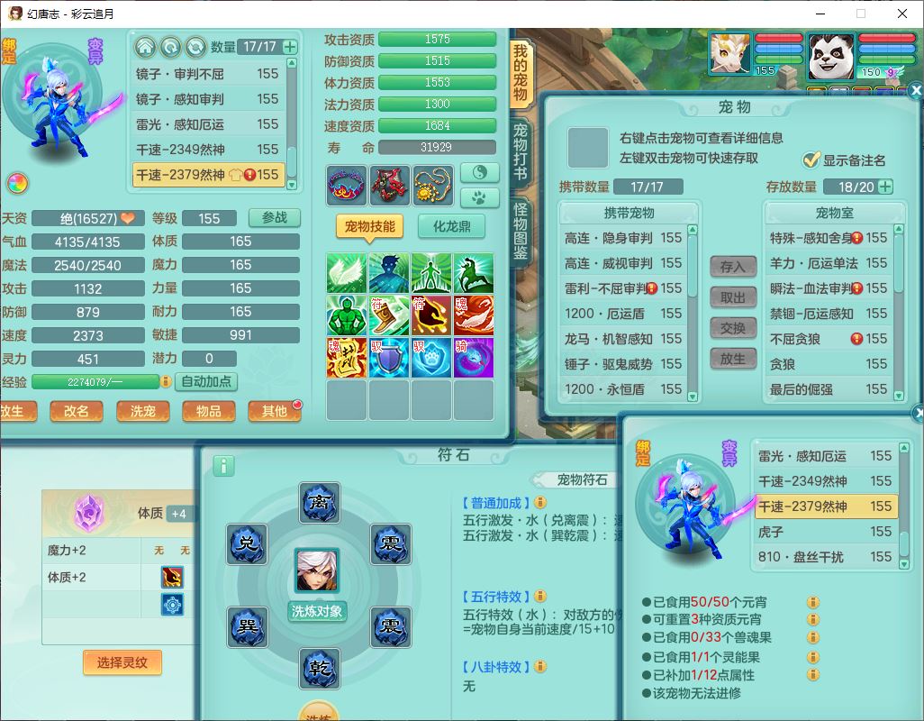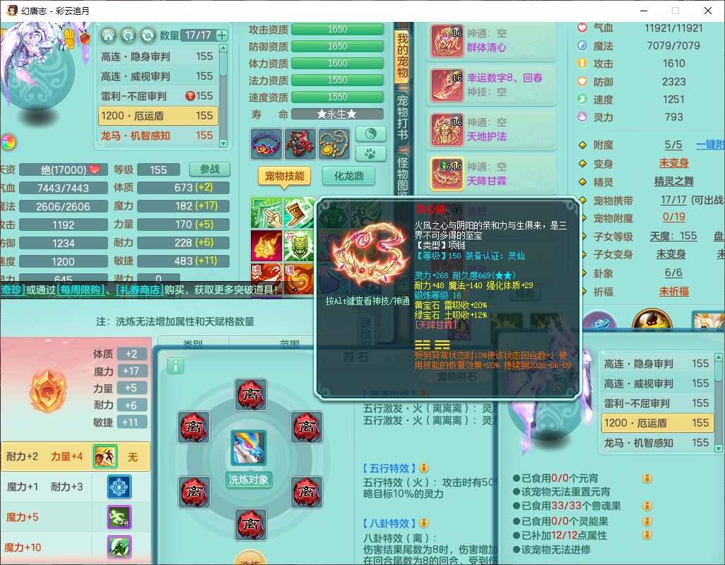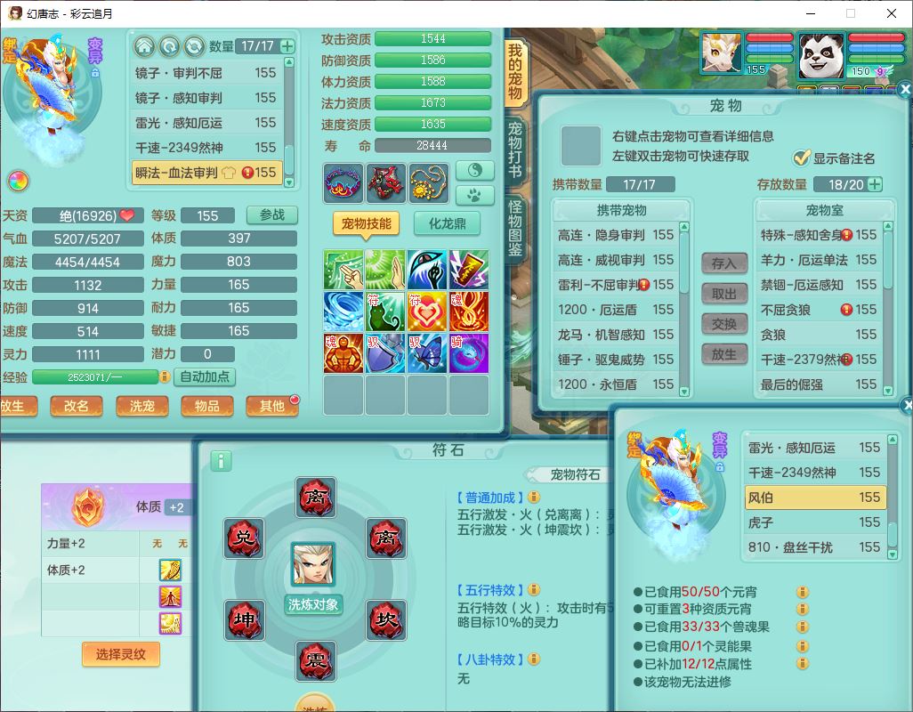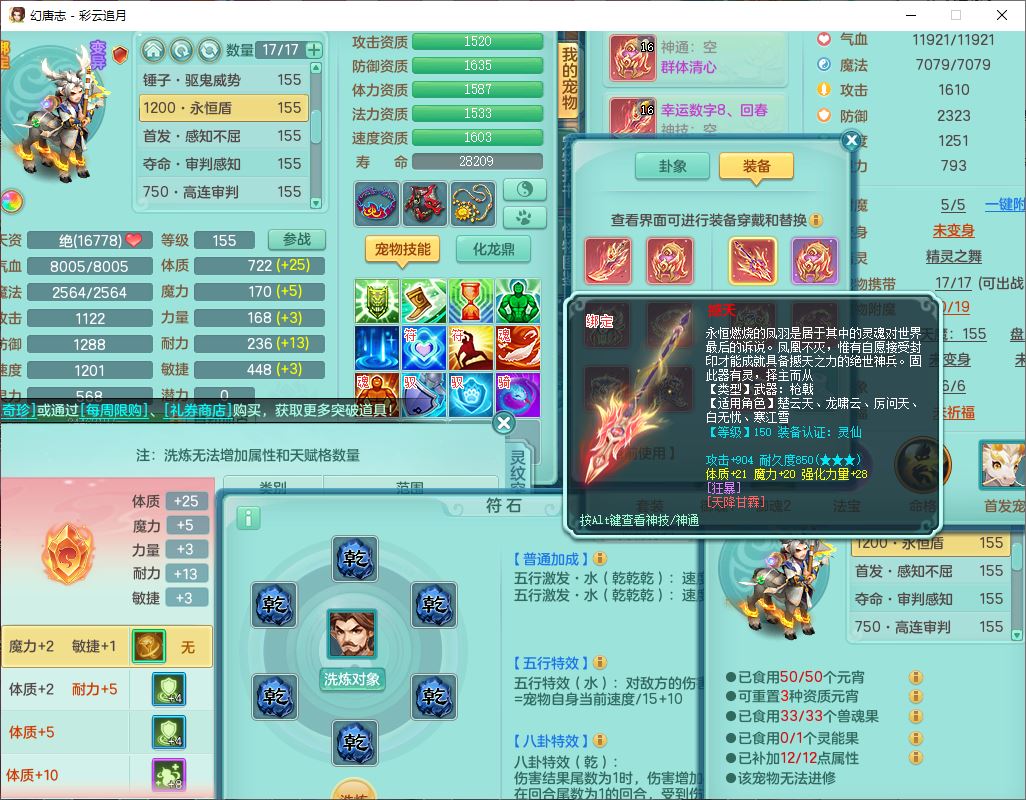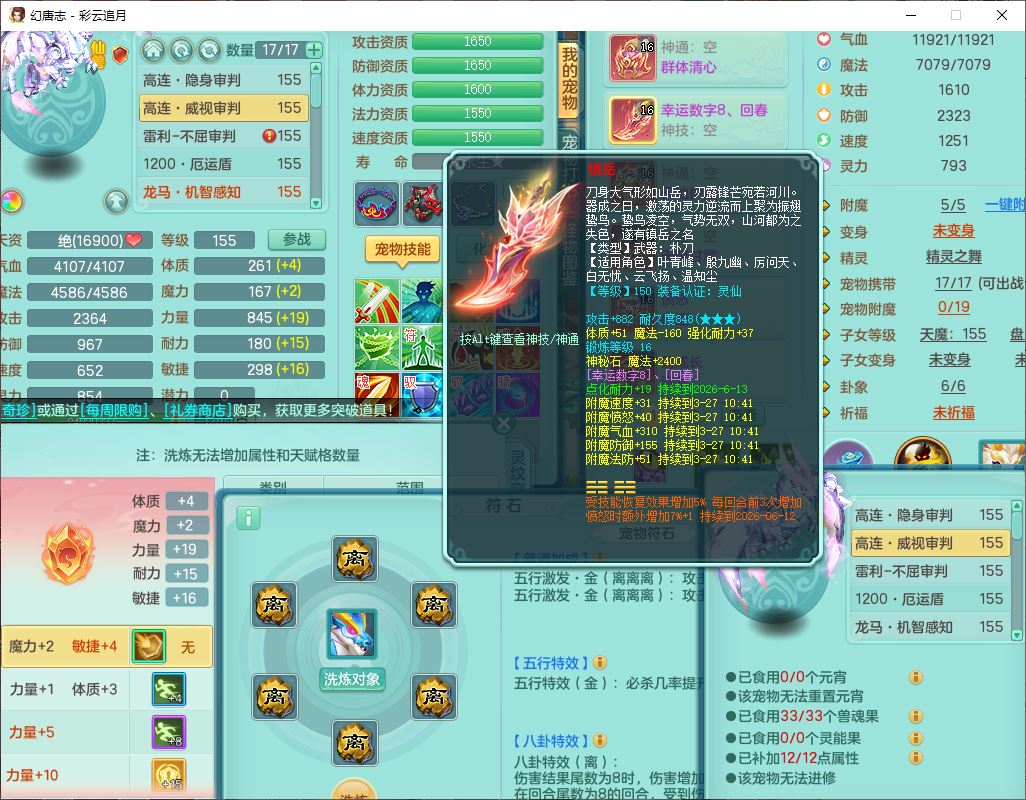 cy10035彩云追月159男灵月【潜龙+马到成功+暴龙逍客】精灵舞,8位靓号,4龙(换、1破境)2内(1龙马)1望归4镜花6特殊(夺命、雷光、舍身,堕天、以战、墨守兽决)1金炉,8觉醒3宠皮11六字1五字5四字21只满果子,9红装备,幸运回春武器,愤怒疾速腰带,Y激励鞋子,有物理装,狂暴四海武器,Y腰带,Y帽子,神佑项链,鼎5.5+70+280,2套符石,119天月卡,永久外观、精灵皮肤,15个内丹碎片,93个兽魂果,8坐骑(2双人飞行),带3个150奶粉