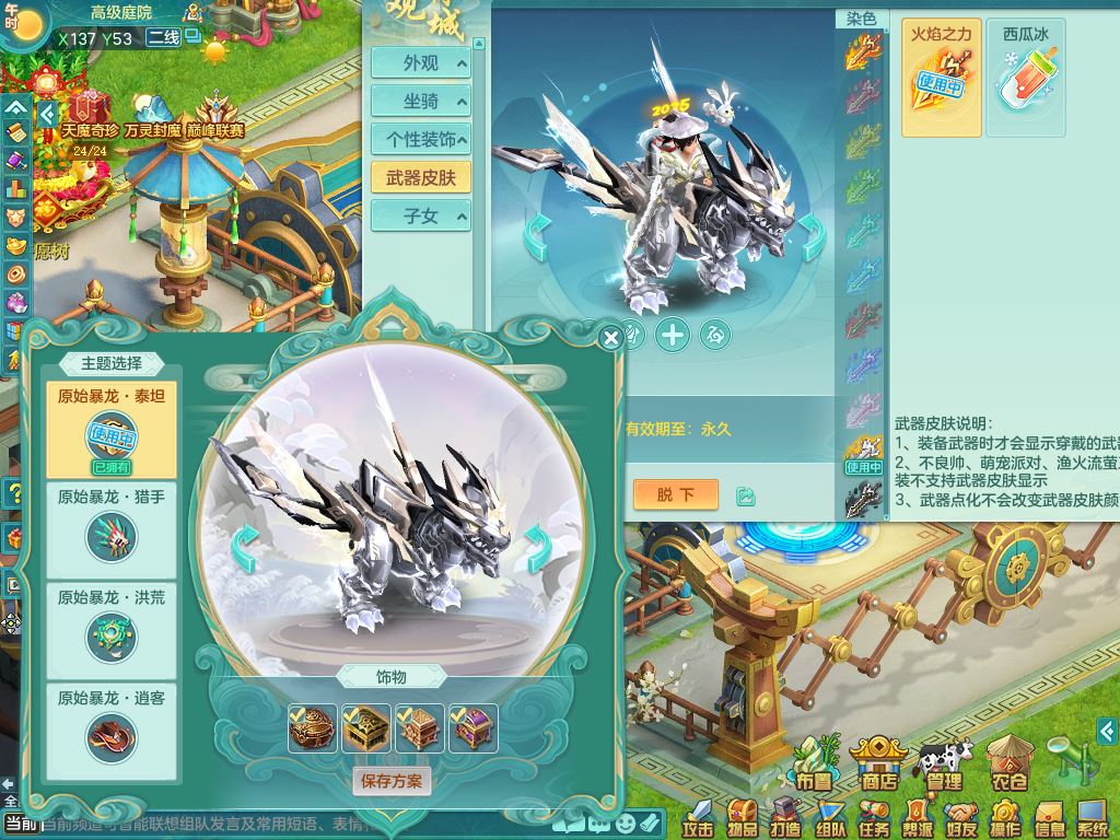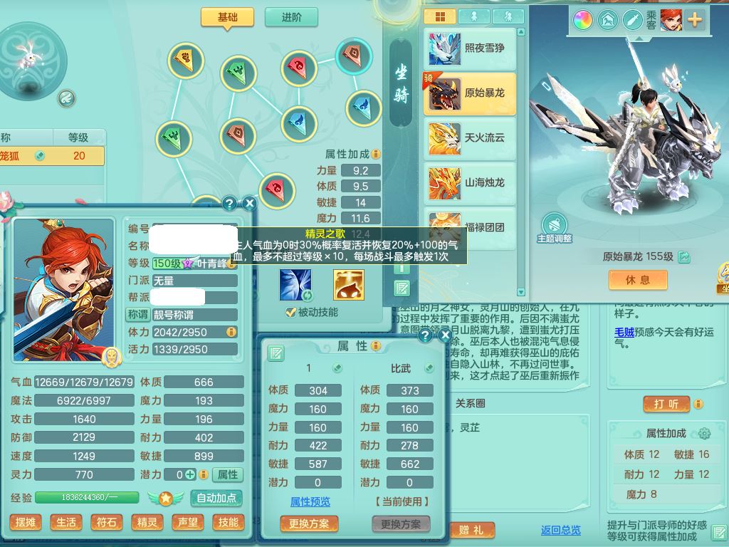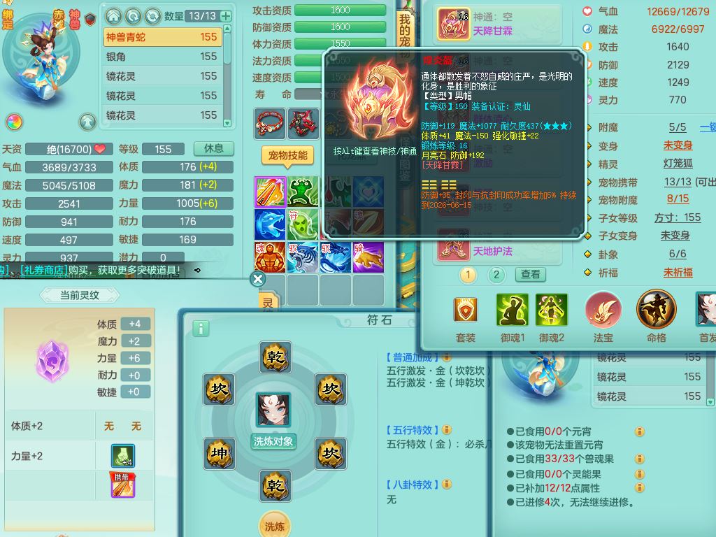 tx10042天下无双159男佛门【暴龙泰坦+火焰之力、西瓜冰】精灵歌,8字靓号(1.7WR拍的)1内丹青蛇1特殊(荒古兽决)4镜花灵,14只满果子8个纯6字,愤怒5特,鼎6.0+70+280,169天月卡,庭院160房屋151,永久头饰精灵皮肤,28内丹碎片,仓库备有潜龙宠物装备,5坐骑(3只双人)带3个159奶粉,都有双人坐骑