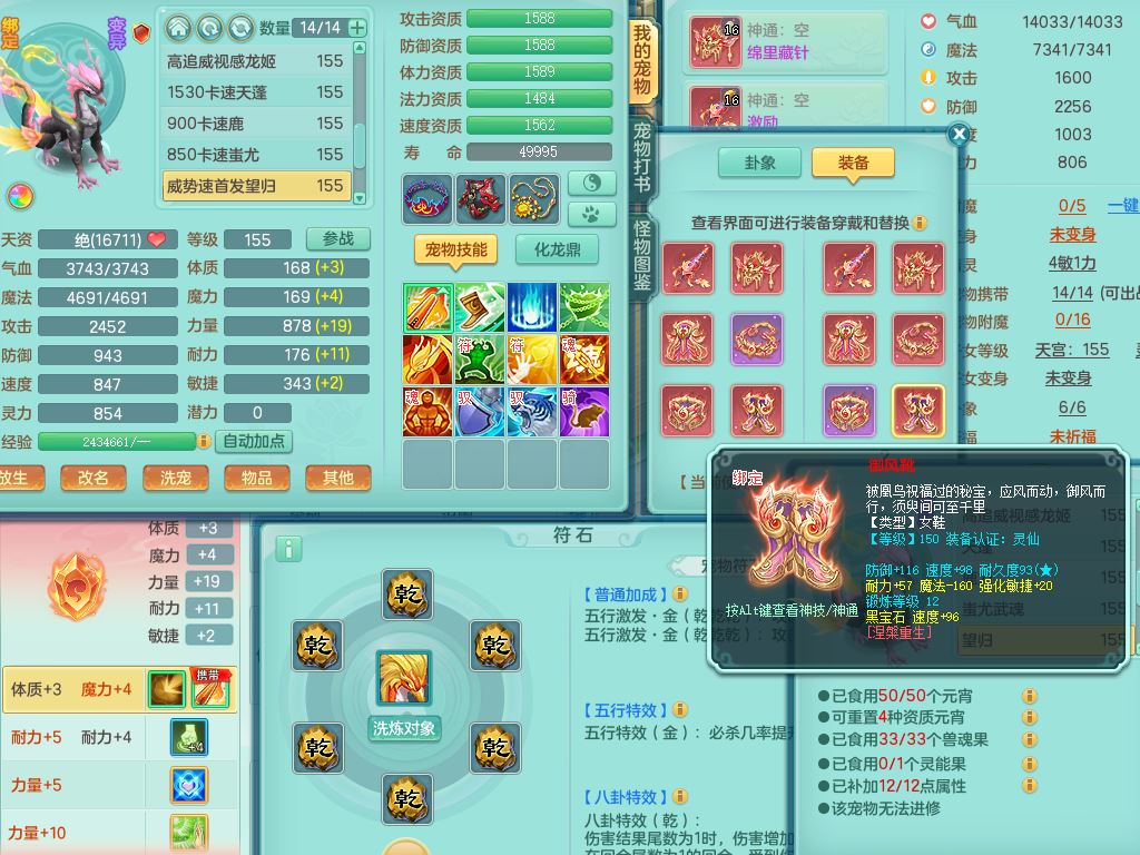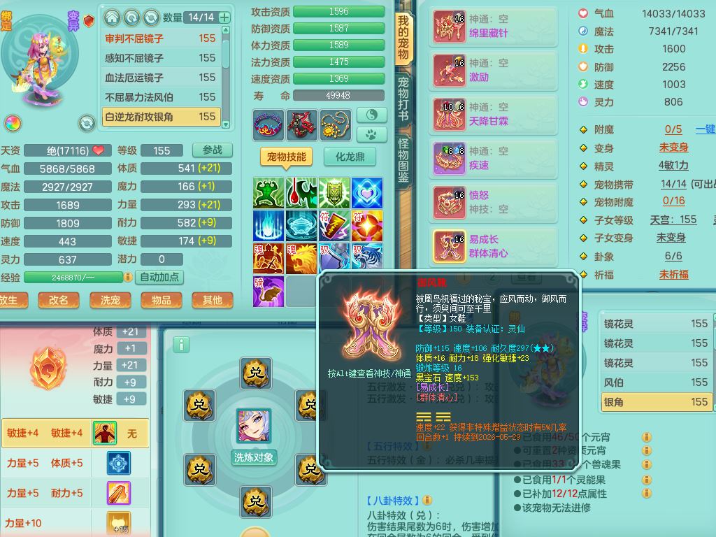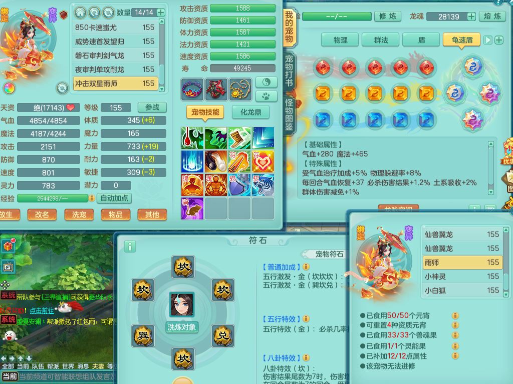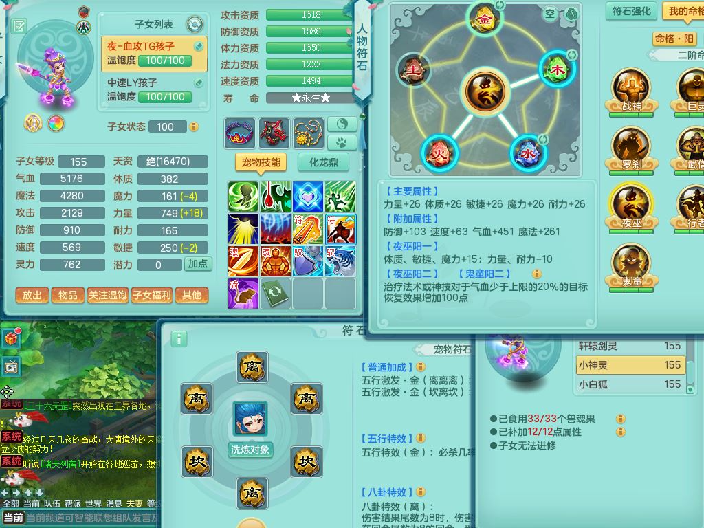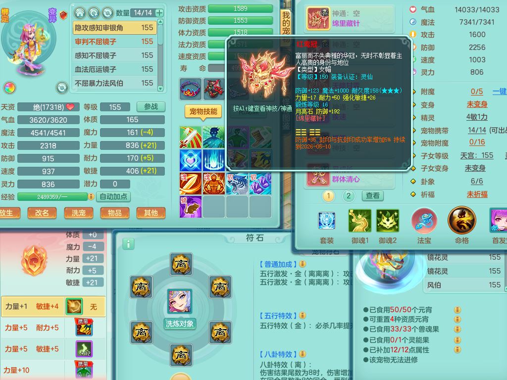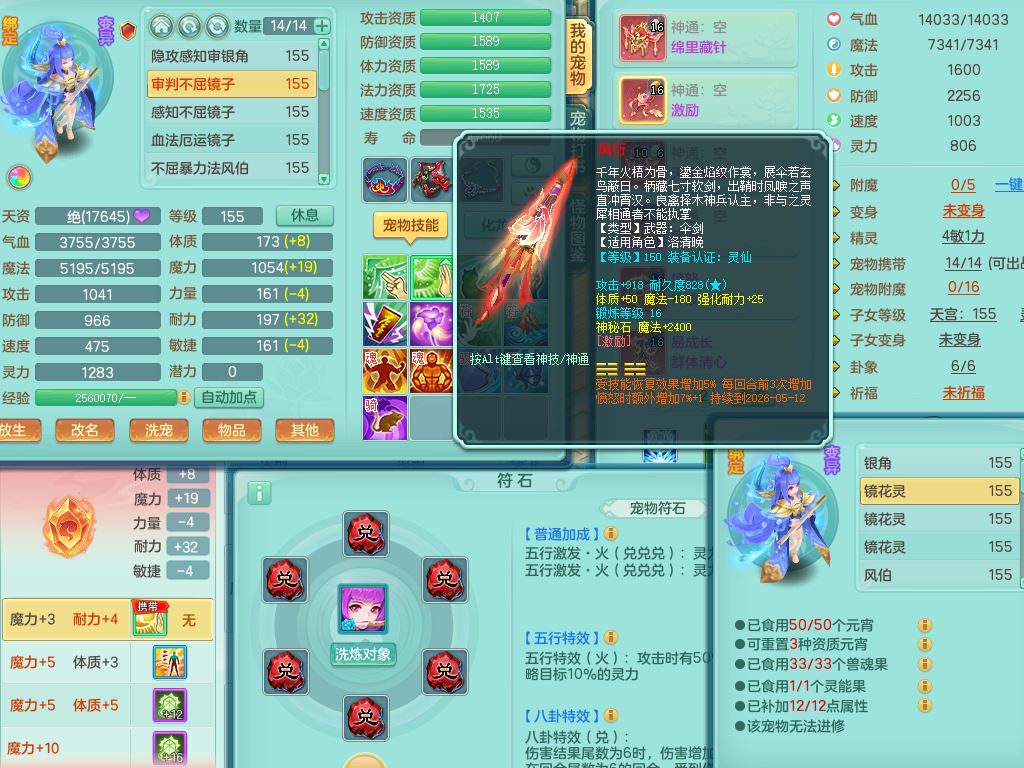 rj10041任剑逍遥159女灵月【潜龙号】精灵歌,4字靓号,2龙(换)2内15皮(4幻灵果)1神兽内丹,9特殊(逆龙/双星/舍身/守护/兽决虎虎/怒破/战争/羽袭/登云)4镜花灵(1胚子)1龙姬,25只满果子15觉醒13个纯6字,愤怒5特,鼎5.5+70+280,庭院162房屋162,永久外观精灵皮肤,5337金币,1057W神武币,宠排在榜,2只双人坐骑,带4个159成品小号,带精灵4技能,装备宝宝都齐全,仓库多存货,都有一千多W神武币