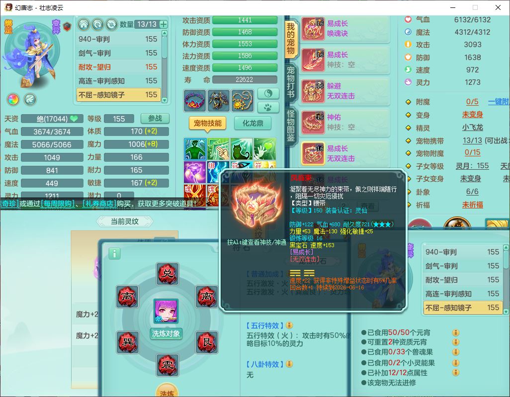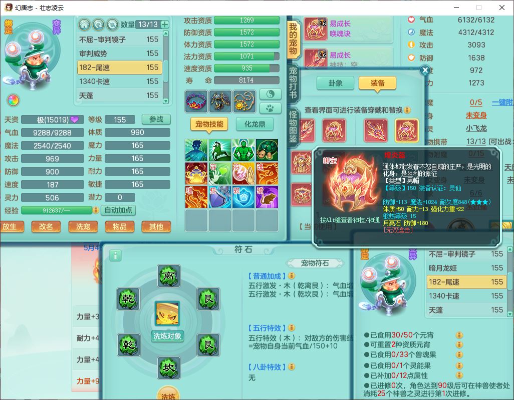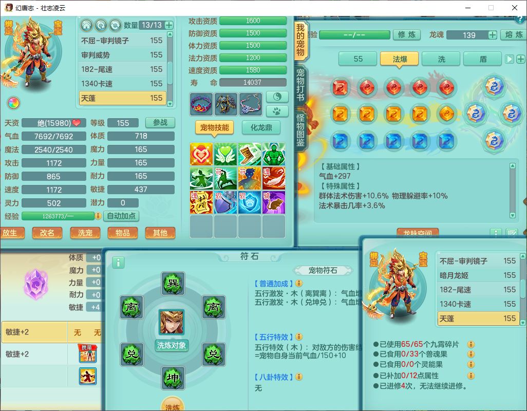 zz10053壮志凌云159男万兽【西瓜冰】精灵舞,1神兽(无内)1望归2镜花1龙姬1金炉,4觉醒2六字综合8只满果子,10红全单加装备,Y唤魂帽子,躲避破血衣服,Y破血腰带,Y破魔鞋子,鼎5.5,34天月卡,永久头饰、精灵皮肤,10个仙兽灵,19个内丹碎片,1双人飞行坐骑