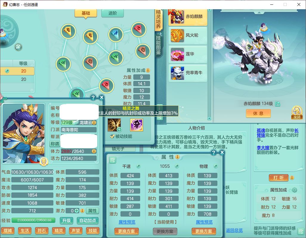rj10049任剑逍遥129男普陀【准潜龙号,差3条主符石3颗厚土】精灵舞,1龙(换、无内)1内1神石1九幽2金炉,9觉醒8六字6四字(1洗练珠)14只满果子,12红装备,Y激励帽子,幸运玉清武器,强壮四海衣服,药王慈航项链,愤怒罗汉腰带,Y笑里鞋子,一套物理装备,729单加狂暴武器,坚毅项链,迅捷鞋子,鼎4.0+56,26个内丹碎片,1双人坐骑
