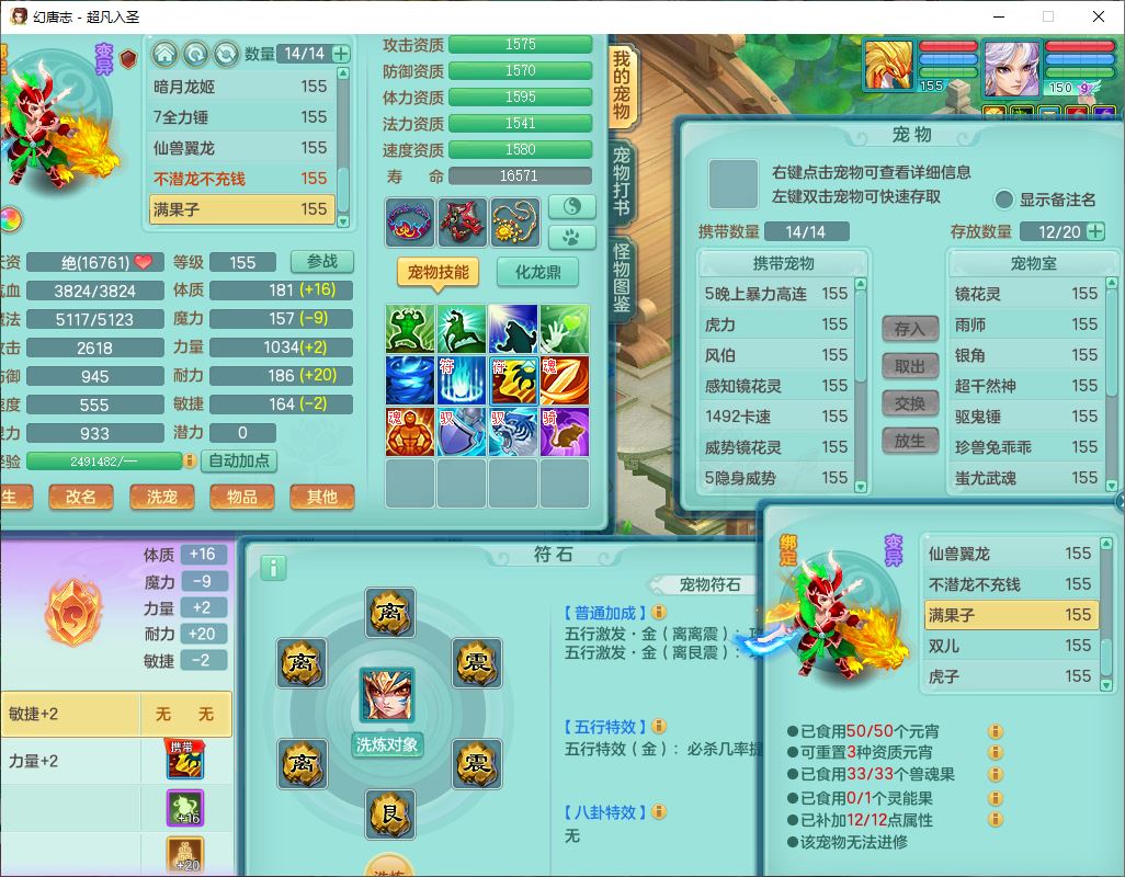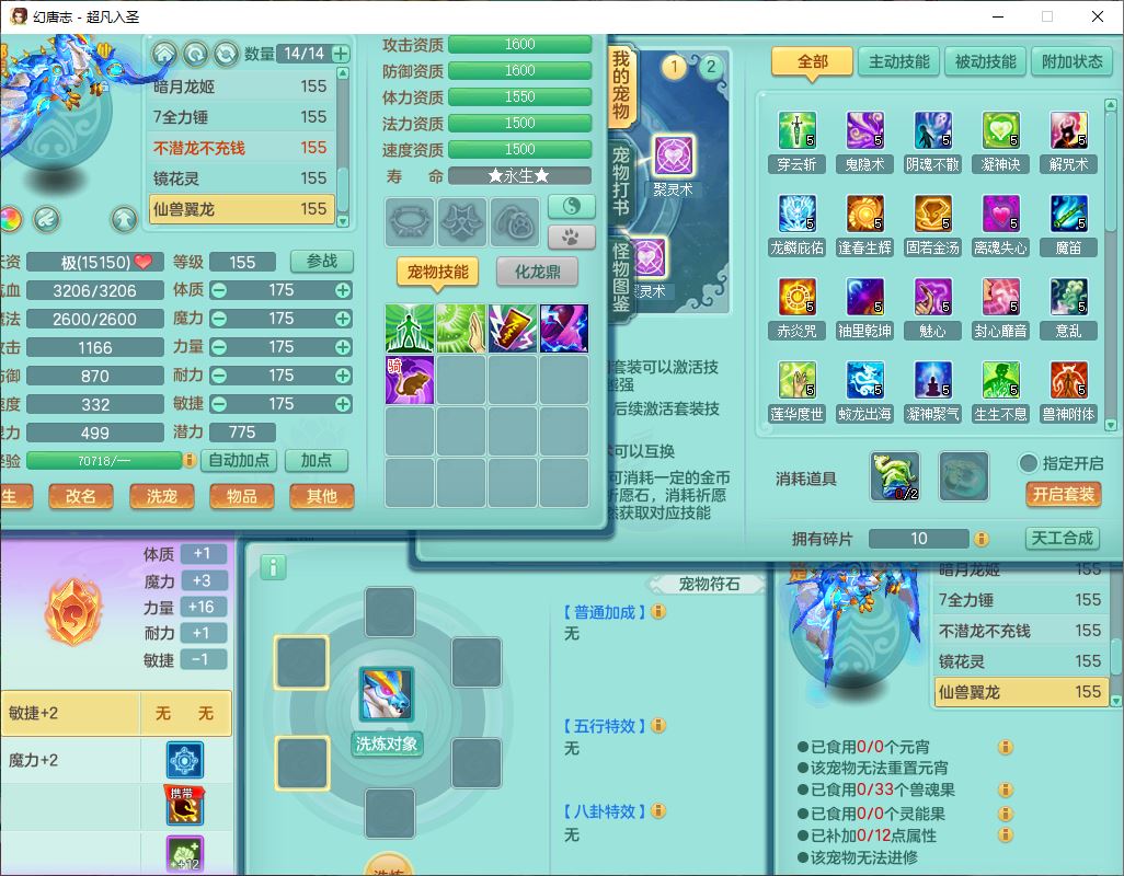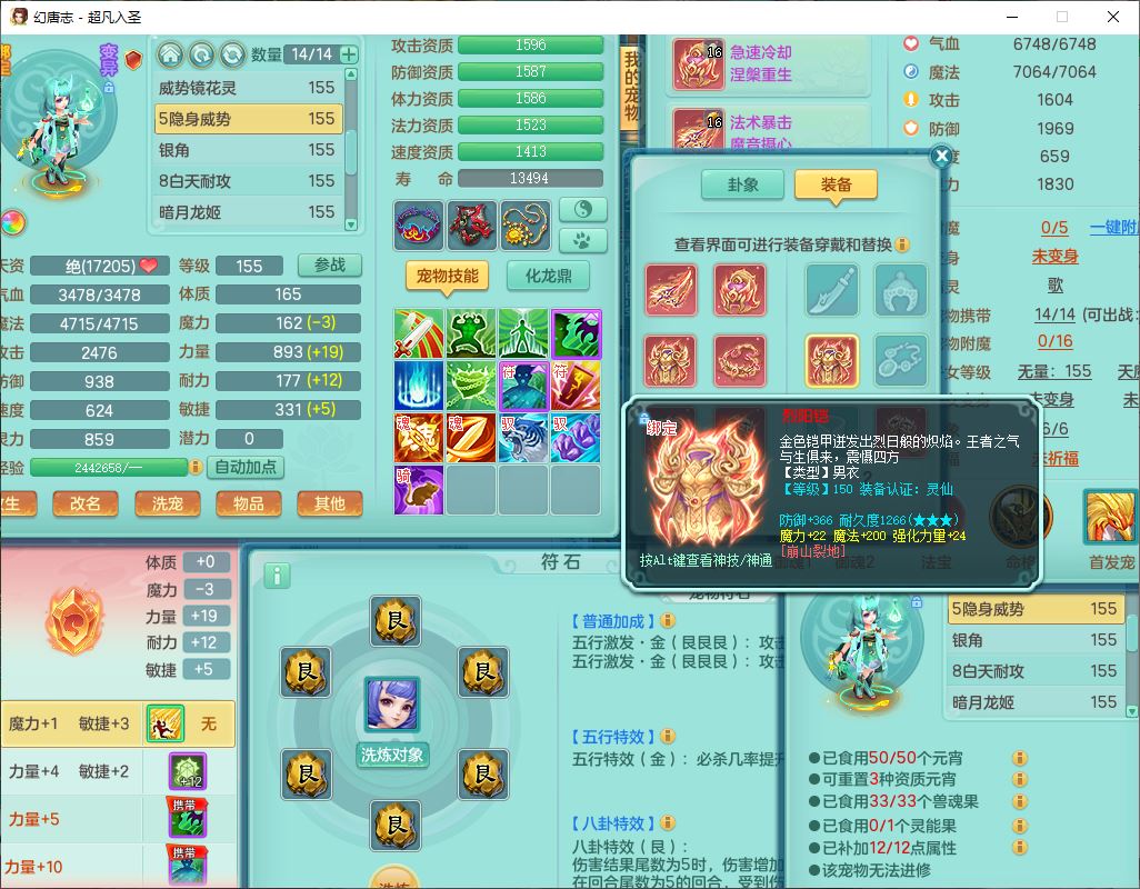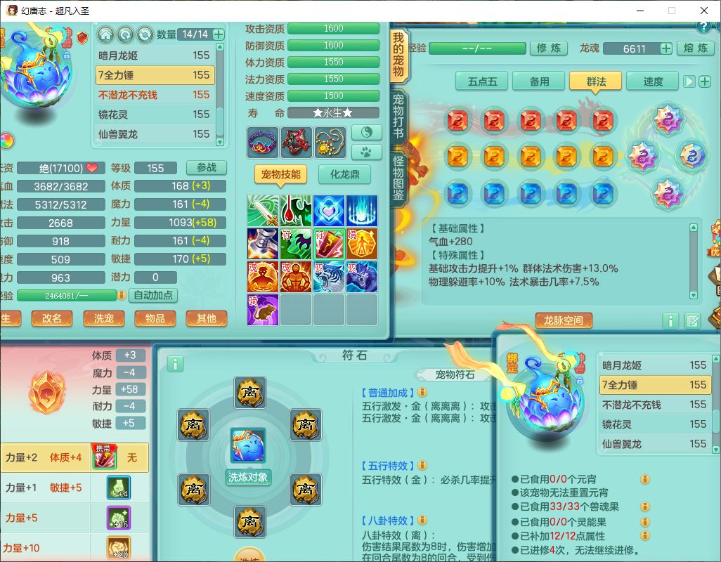 cf10063超凡入圣159男魔王【潜龙号】精灵歌,1龙(换、无内)1内(破境)1望归3镜花1龙姬1特殊兽决(剑胆),13觉醒11六字2五字2四字14只满果子,8红星辰之拥双法缭装备,急速冷却慈航帽子,法爆魔音武器,法缭疾速衣服,法缭鞋子,崩山衣服,鼎5.5+70+280,10个内丹碎片,1双人飞行坐骑,带159成品奶粉女盘丝