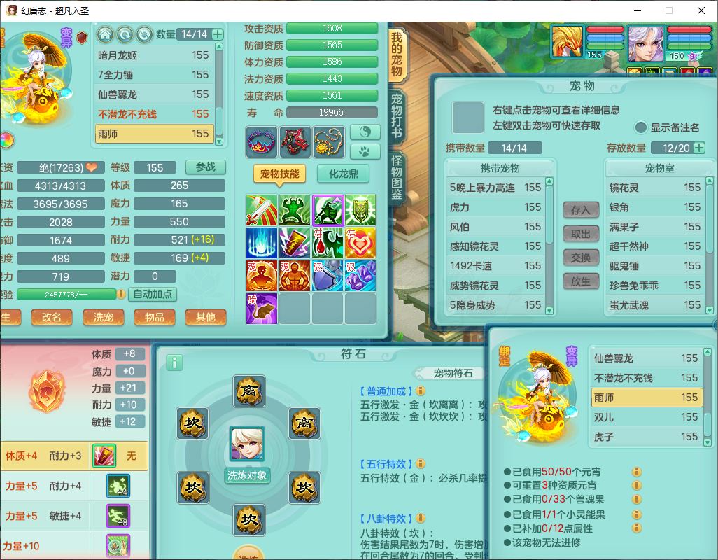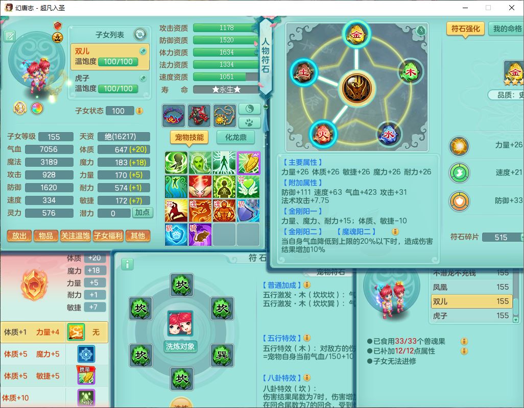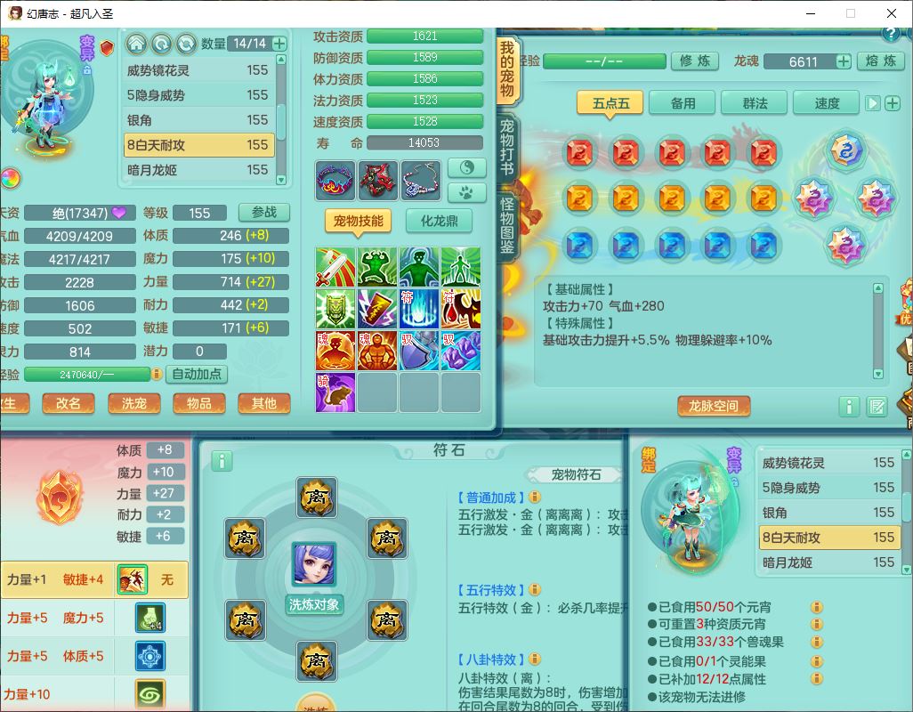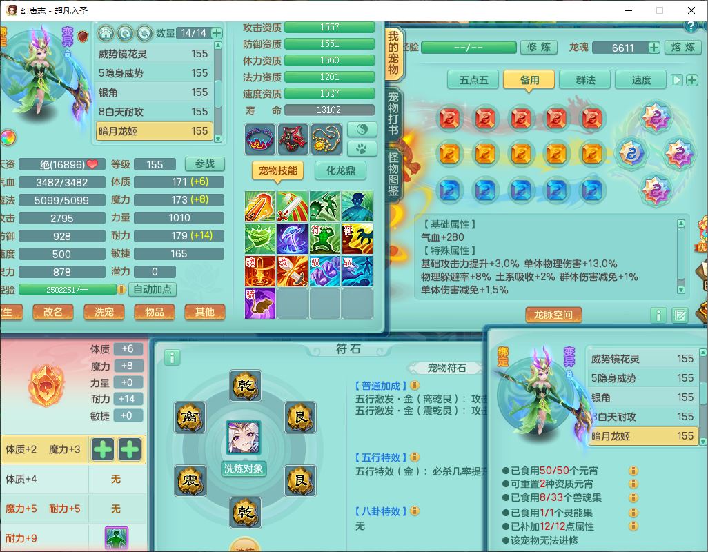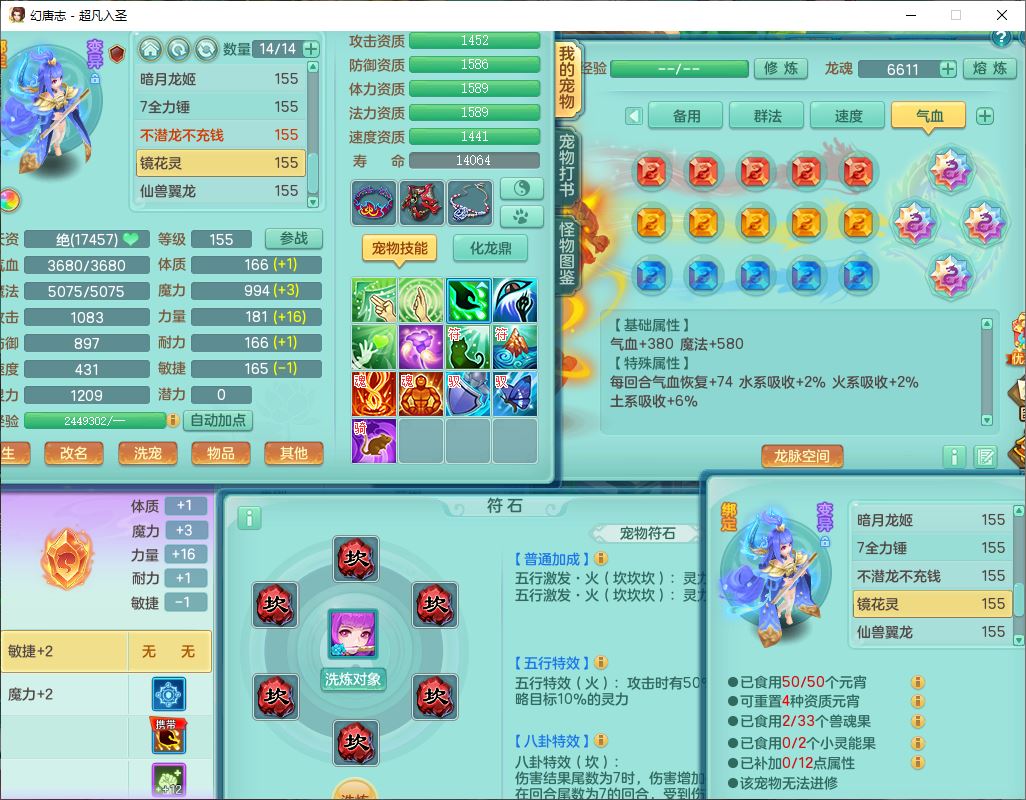 cf10063超凡入圣159男魔王【潜龙号】精灵歌,1龙(换、无内)1内(破境)1望归3镜花1龙姬1特殊兽决(剑胆),13觉醒11六字2五字2四字14只满果子,8红星辰之拥双法缭装备,急速冷却慈航帽子,法爆魔音武器,法缭疾速衣服,法缭鞋子,崩山衣服,鼎5.5+70+280,10个内丹碎片,1双人飞行坐骑,带159成品奶粉女盘丝